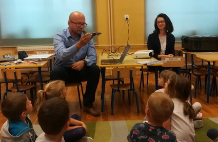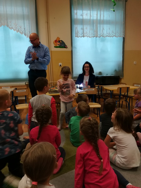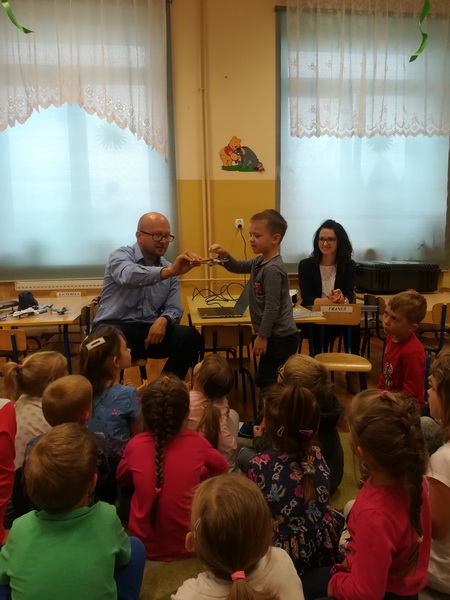 Grupę “Żabki” odwiedzili ostatnio pani Agnieszka i pan Tomasz Duda, który pracuje w firmie Pratt&Whitney, będącej światowej klasy producentem silników lotniczych do śmigłowców oraz samolotów pasażerskich. Pan Tomasz opowiedział dzieciom, na czym polega jego praca, czym na co dzień się zajmuje. Dzieci z ciekawością wysłuchały bajki o chłopcu i silniku, czytanej przez panią Agnieszkę. Miały okazję dowiedzieć się, z jakich elementów składa się samolot, a także pobawić się przyniesionymi przez pana Tomasza modelami. Po zajęciach duża ilość przedszkolaków wyraziła chęć zostania inżynierami.