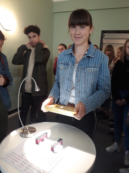 25 września, w roku obchodów setnej rocznicy uchwalenia nazwy “złoty” dla waluty Rzeczypospolitej Polskiej, uczniowie klas ósmych wybrali się z wizytą do Okręgowego Oddziału NBP w Rzeszowie. Dni otwarte Narodowego Banku Polskiego pod hasłem “Wspólnie świętujemy 100 lat złotego!” oferowały zwiedzającym wiele atrakcji, min. wystawy pt. “Dzieje złotego” oraz “Wielcy polscy ekonomiści” i numizmatyczną – “Uczelnie na monetach świata”. Wyjątkowym zainteresowaniem cieszyła się dwunastokilogramowa sztabka złota, której masę każdy z uczestników mógł poczuć osobiście.