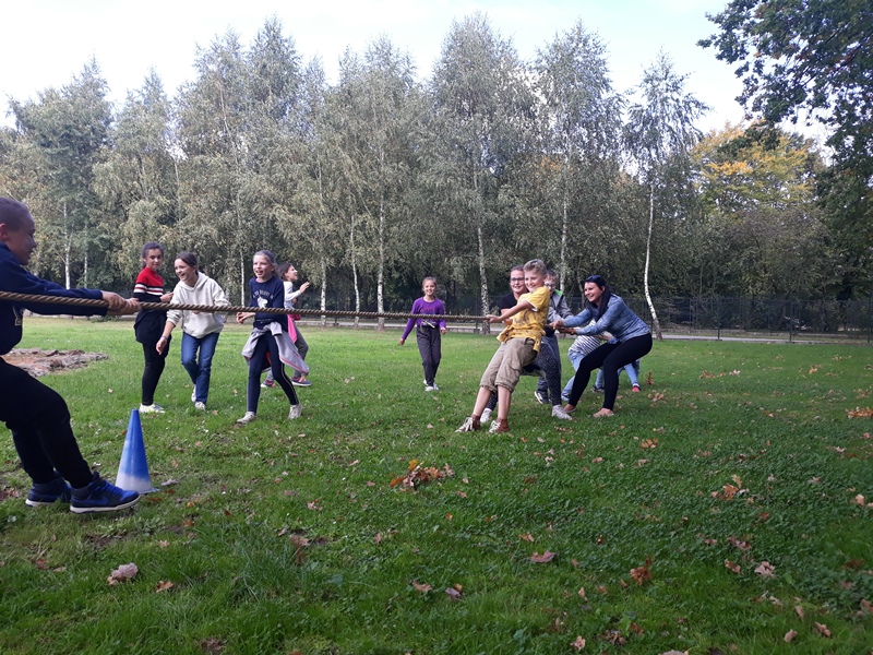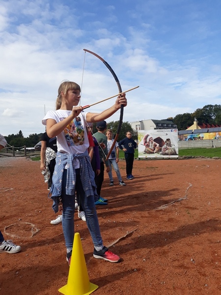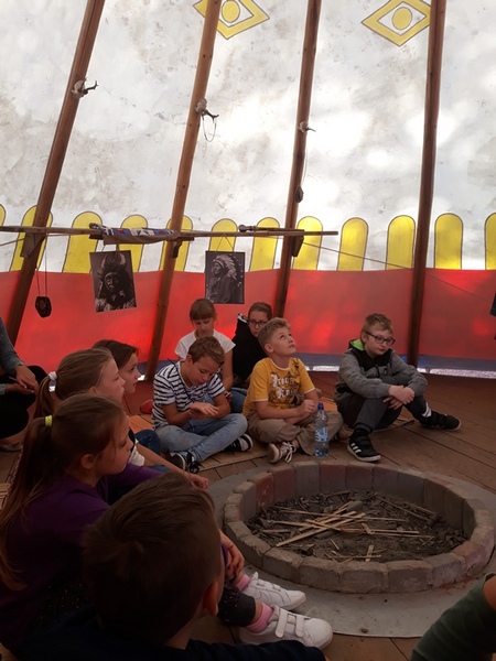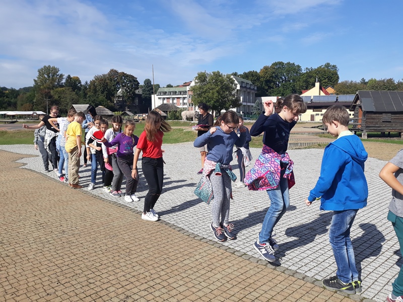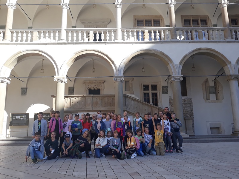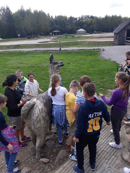 27 września uczniowie klas piątych i szóstych wyruszyli na wycieczkę “dookoła świata”, która rozpoczęła się od zwiedzenia Wzgórza Wawelskiego i Smoczej Jamy. Głównym jednak celem wycieczki była wizyta w Parku Edukacji Globalnej, w którym nasi podróżnicy mieli okazję interaktywnie zwiedzić sześć osad z różnych części świata. Zobaczyli tradycyjną ghańską wioskę, peruwiańską chatę, indiańskie tipi, arktyczne igloo, mongolską jurtę oraz papuaski dom na palach. Dzięki fotografiom i różnego rodzaju eksponatom pochodzącym z odległych zakątków świata, a także możliwości spotkania ludzi, którzy pracowali w tych miejscach, w sposób namacalny doświadczyli tamtejszej kultury i tradycji. Była to znakomita okazja, by poczuć odmienną rzeczywistość, kształtować w sobie postawę empatii. Klasy piąte uczestniczyły w warsztatach “Wśród Indian Ameryki Północnej”, gdzie we wnętrzu tipi odkrywały kulturę Indian, poznały ich dzieje, sztukę, tradycyjne symbole i wybrane rytuały. Oprócz wiedzy, młodzi globtroterzy zdobyli także liczne sprawności. Cztery plemiona ścigały się w różnych konkurencjach, ćwicząc się jednocześnie we współzawodnictwie, przestrzeganiu reguł oraz umiejętności wykorzystywania wiedzy w praktyce. Klasy szóste natomiast miały możliwość zobaczyć, jak wygląda “Dzień z życia w Afryce”. Tam, w ghańskiej wiosce, uczniowie dowiedzieli się, jakie są codzienne obowiązki ich rówieśników, z czego dzieci w Ghanie robią zabawki, skąd się bierze czekolada i jak wyglądają lekcje w szkole pod drzewem. Wspólne zabawy angażowały emocje i sprawiały dużo frajdy, jednocześnie pogłębiając wiedzę uczestników.