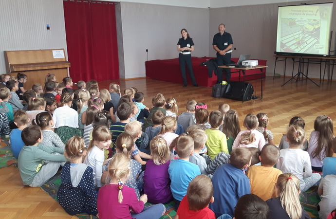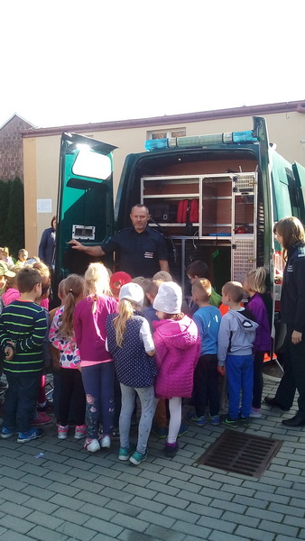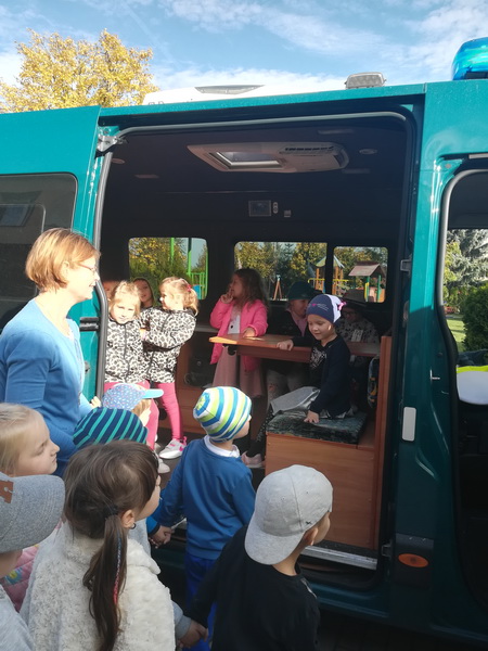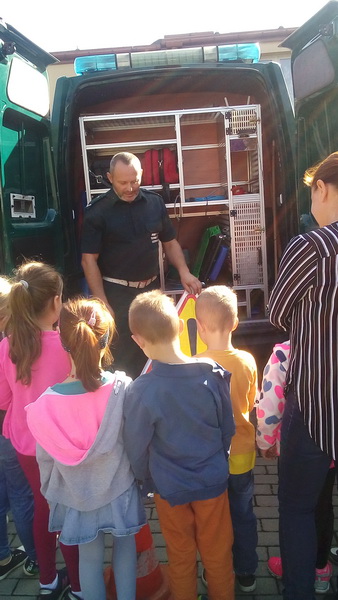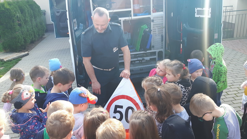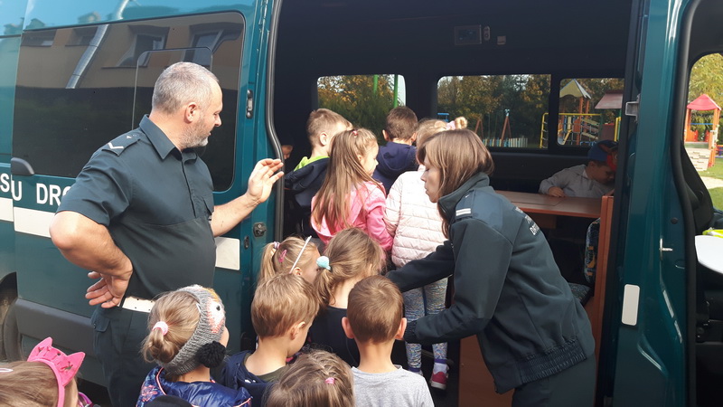 We wtorek 15 października nasze przedszkole odwiedzili inspektorzy z Wojewódzkiego Inspektoratu Transportu Drogowego w Rzeszowie w ramach akcji “Bezpieczna droga do szkoły”. Inspektorzy w przyjaznej formie przedstawili dzieciom zasady prawidłowego poruszania się po drogach, chodnikach i poboczach, jak również zwrócili szczególną uwagę na korzystanie z elementów odblaskowych wyróżniających pieszych po zmroku. Wyjaśnili jak ważne jest korzystanie z fotelików samochodowych i pasów bezpieczeństwa. Kolejnym punktem spotkania było przybliżenie przedszkolakom, czym zajmuje się Inspekcja Transportu Drogowego, jak są umundurowani inspektorzy podczas wykonywania czynności kontrolnych, jakie pojazdy są kontrolowane przez ITD, a także jak można rozpoznać samochody inspekcyjne wśród innych pojazdów uprzywilejowanych. Starsze przedszkolaki miały możliwość oglądnąć samochód ITD i “przetestować” sprzęt w tym także wagę, która wśród dzieciaków wzbudziła największe zainteresowanie. Przedszkolaki, za aktywny udział w zajęciach poprzez zadawanie licznych pytań, zostali obdarowani upominkiem w postaci kolorowanki z maskotką ITD. Bardzo dziękujemy za pouczające spotkanie.
