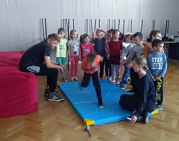 Sześciolatki z naszego przedszkola biorą udział w projekcie badawczym pn. “Zastosowanie autorskiego programu aktywizacji ruchowej dla dzieci w wieku przedszkolnym i jego wpływ na postawę ciała oraz podejmowaną aktywność fizyczną”, który realizowany jest przez Wydział Wychowania Fizycznego oraz Wydział Medyczny Uniwersytetu Rzeszowskiego. 17 października br. przedszkolaki uczestniczyły w teście sprawności fizycznej. Mali sportowcy wykonywali próby testowe: zwinności – bieg “wahadłowy” 2x5m z przenoszeniem klocka; mocy – skok w dal z miejsca; siły – rzut piłką lekarską o wadze 1kg znad głowy. Dzieci bardzo sprawnie wykonywały zadania, bawiąc się przy tym wspaniale.