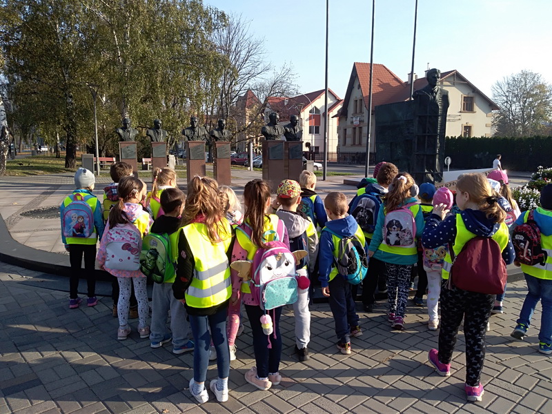 22 października br. przedszkolaki z grup “Tygryski” i “Biedronki” spacerowały szlakiem bohaterów niepodległości ulicami Rzeszowa. Podczas wędrówki dzieci odwiedziły pomniki: Tadeusza Kościuszki, Józefa Piłsudskiego, Leopolda Lisa-Kuli oraz Adama Mickiewicza. Wielkie zainteresowanie wśród najmłodszych wzbudził Dzwon Niepodległości na placu Farnym, ufundowany w 2018 r. przez samorząd Województwa Podkarpackiego oraz pomnik marszałka Józefa Piłsudskiego. Rozmowa i wspólne zdjęcie z dragonem milicji rzeszowskiej Jerzego Ignacego Lubomirskiego, spotkanym w okolicy ratusza, były miłym akcentem tej wycieczki. Ten spacer to ważna lekcja historii dla naszych przedszkolaków, a jednocześnie świadectwo przyłączenia się do akcji MEN: “Szkoła Pamięta”. Podsumowaniem tej wycieczki były piękne prace narysowane przez dzieci po powrocie do przedszkola.