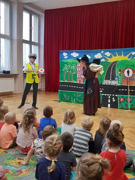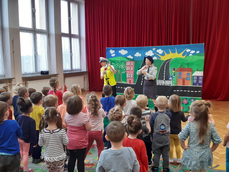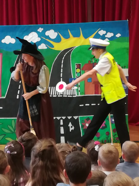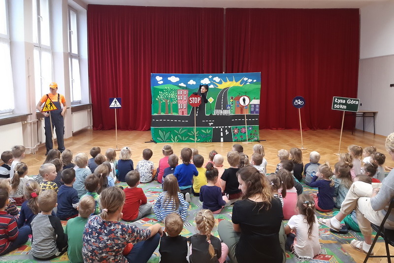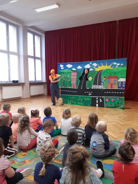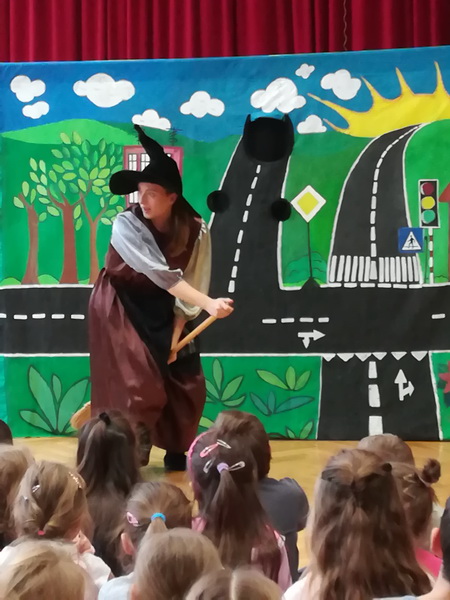 Nowy rok szkolny to nowy cykl spotkań z teatrzykiem “Zielony Melonik”. Tym razem obejrzeliśmy spektakl pt.”Bezpieczna droga”. Z myślą o zagrożeniach, jakie niesie ze sobą ruchliwa ulica, przedszkolaki 5 listopada, wspólnie z “zaczarowaną jezdnią”, panem Kazikiem, policjantem i roztargnioną czarownicą, przypomniały sobie zasady bezpiecznego zachowania na drodze. Pomogły również czarownicy w nauce znaków, dzięki czemu otrzymała ona prawo jazdy i obiecała, że będzie przestrzegała zasad ruchu drogowego. Dzieci bawiły się przy tym znakomicie i bardzo polubiły wszystkich bohaterów spektaklu. Mogły też sprawdzić swoją wiedzę dotyczącą znaków drogowych – trzeba przyznać, że poszło nam całkiem nieźle. Z uśmiechem na twarzach pożegnaliśmy aktorów i czekamy na kolejne odwiedziny.