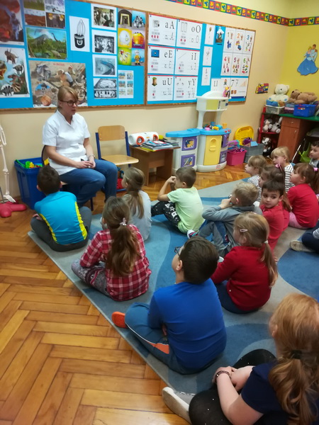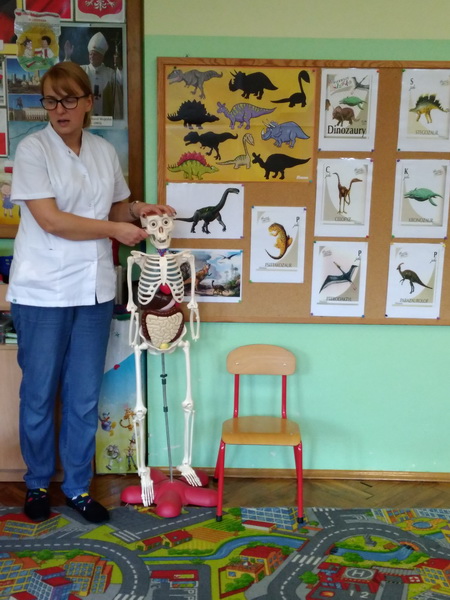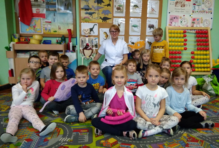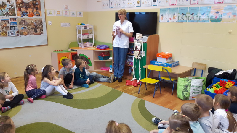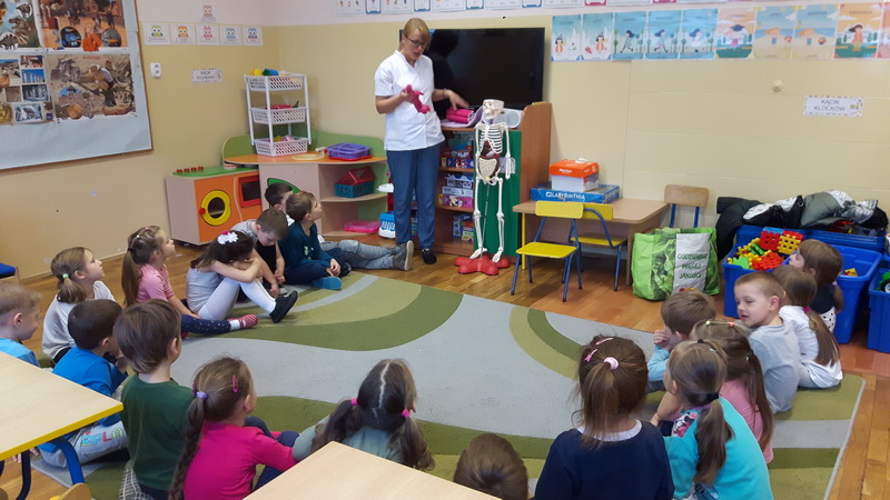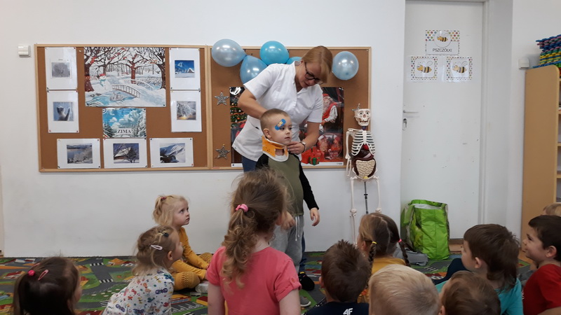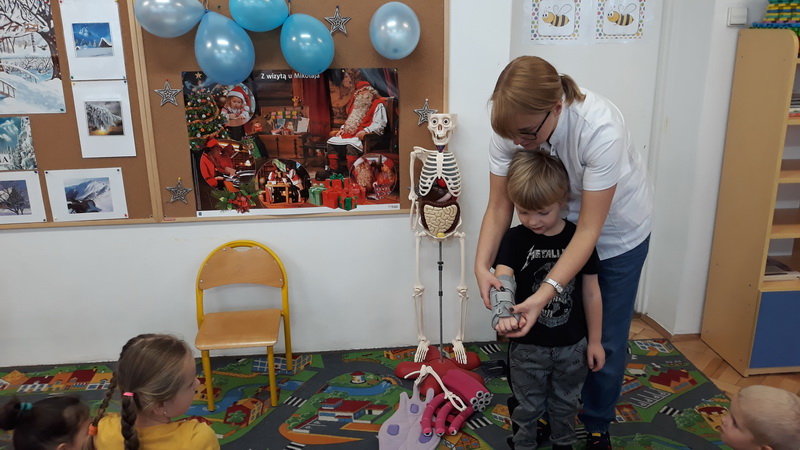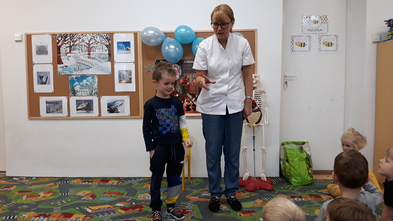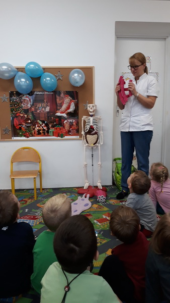3 grudnia dzieci z naszego przedszkola wzięły udział w zajęciach z panią Martą – edukatorką medyczną. Tematem zajęć był ruch. Przedszkolaki dowiedziały się, co to znaczy dbałość o aktywność fizyczną i dlaczego ruch jest ważny dla naszego organizmu. Z pomocą Kostka – pomocnika pani Marty poznały w bardzo przystępny sposób budowę szkieletu, a także dowiedziały się, czym są kości i mięśnie. Na koniec zajęć pani edukator opowiedziała, co to jest złamanie kości i co należy robić, gdy przydarzy nam się kontuzja. To było bardzo pouczające i interesujące spotkanie.