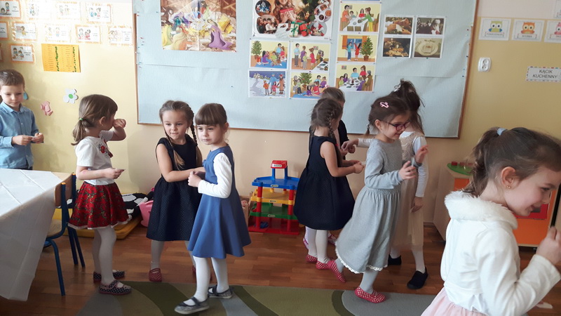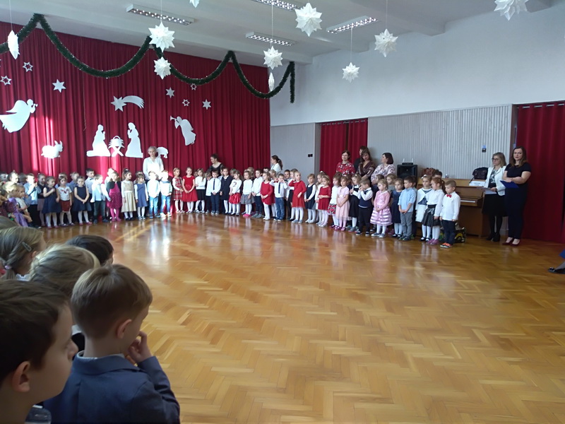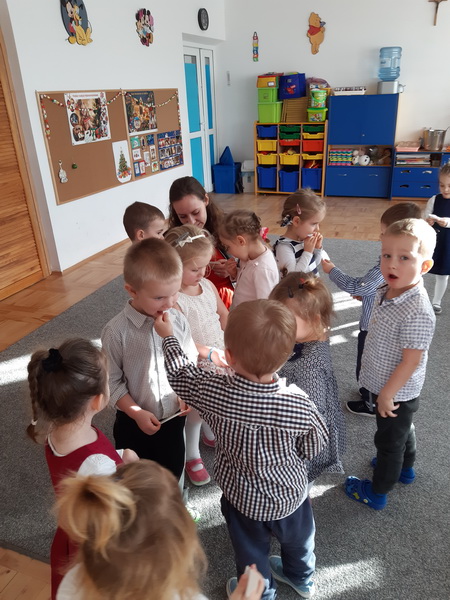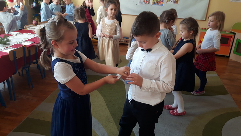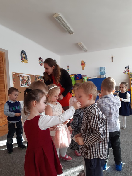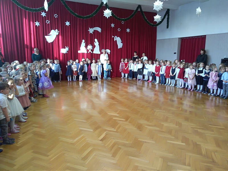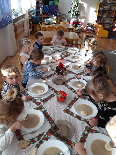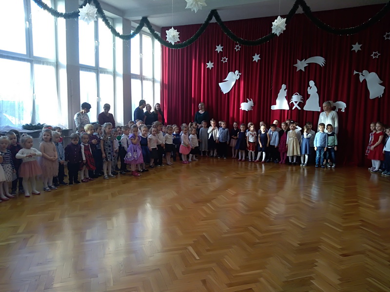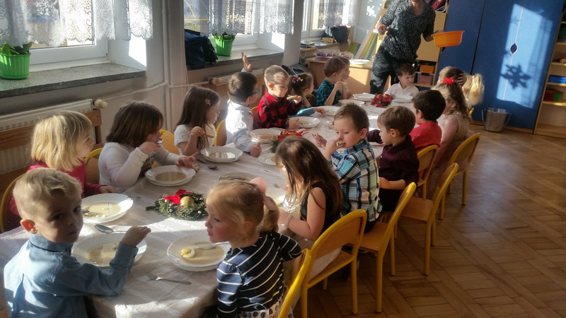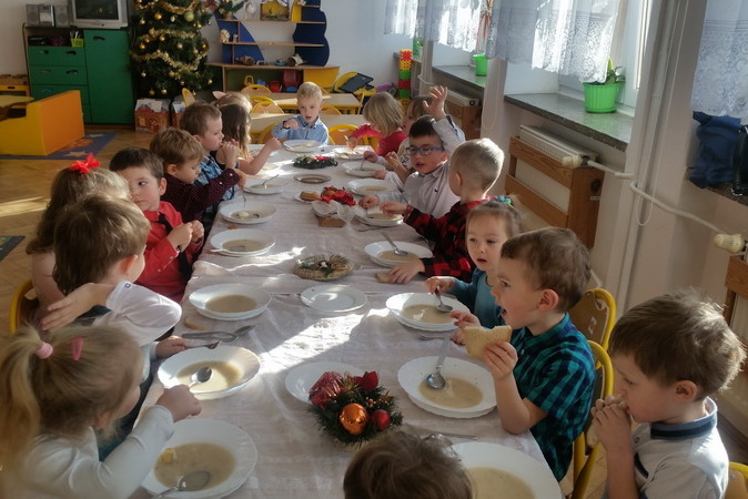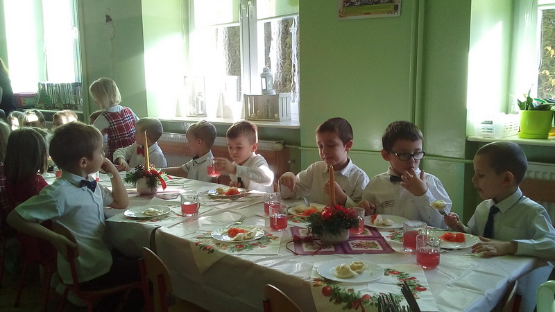 Zgodnie z tradycją, 18 grudnia w przedszkolu odbyło się wigilijne spotkanie. Od samego rana panowała ożywiona atmosfera. Podczas wspólnego nakrywania stołów dzieci dzieliły się swoją wiedzą dotyczącą tradycji wigilijnych. Gdy stoły w salach były juz przygotowane, przedszkolaki z wszystkich grup zebrały się w sali ruchu, aby wspólnie śpiewać kolędy i pastorałki. Uroczystość rozpoczęła pani dyrektor Beata Motyl. Następnie zostały wręczone nagrody i wyróżnienia uczestnikom II Świetlicowego Konkursu Kolęd i Pastorałek “Hej kolęda, kolęda”, zorganizowanego przez świetlicę ZSP nr 11, którzy zaśpiewali przygotowane utwory. W dalszej części grupy przedszkolne zaprezentowały pastorałki, pięknie zapowiedziane przez p. Ewę. Na zakończenie części artystycznej wszyscy uczestnicy zaśpiewali kolędę “Przybieżeli do Betlejem”, a pani dyrektor złożyła świąteczne życzenia. Następnie głos zabrał ksiądz Tomasz Świętoń, który poprowadził wspólną modlitwę i poświęcił dzieci oraz opłatki. Później wszystkie grupy wróciły do swoich sal, by złożyć sobie życzenia, usiąść do odświętnie nakrytego stołu i wspólnie zjeść świąteczny obiad. Tego dnia dzieci zapomniały o kłótniach, sporach i zmartwieniach, bo święta są przecież czasem radości i wybaczania.
