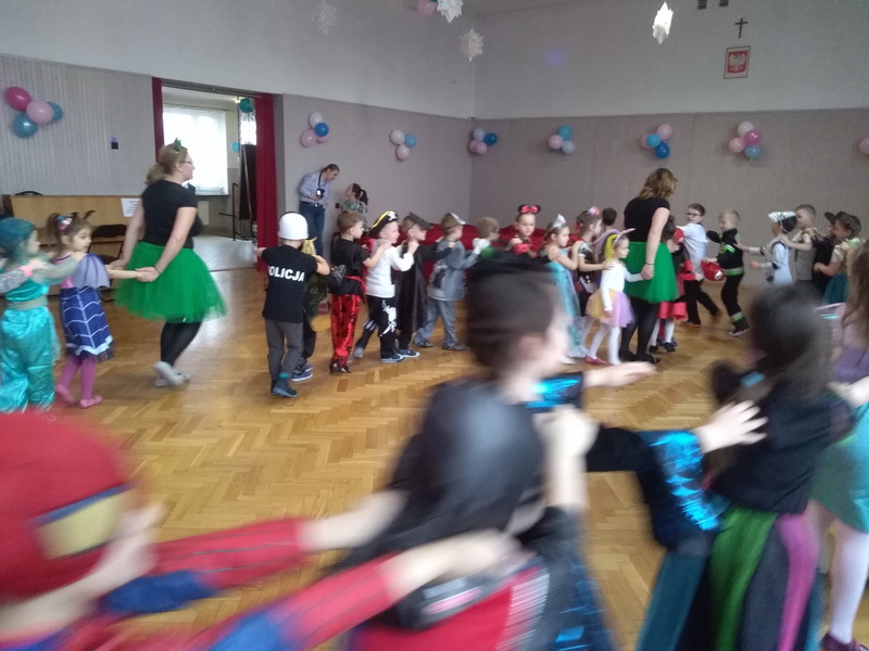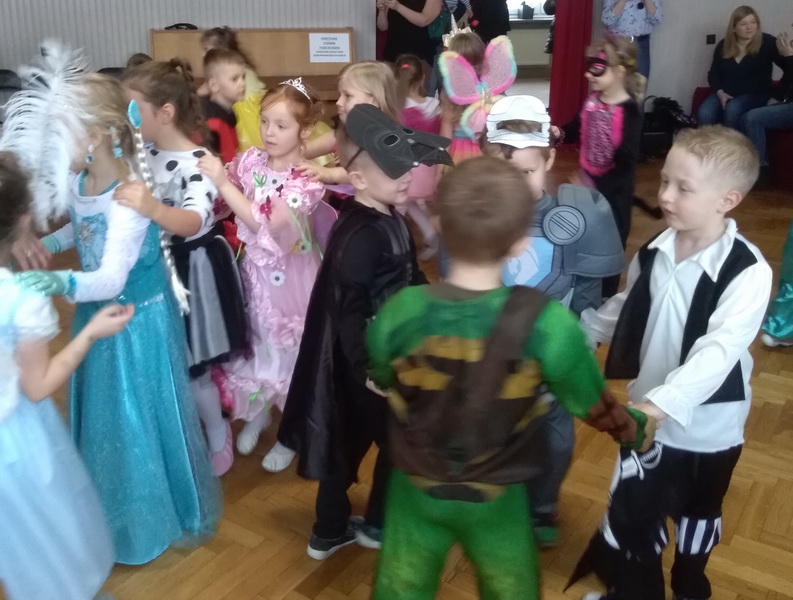 Bal karnawałowy to dla przedszkolaków niezwykłe wydarzenie, często wyczekiwane przez wiele tygodni. Taki bal jest atrakcją bardzo lubianą przez dzieci, dostarczającą im wielu przeżyć i radości. W naszym przedszkolu odbył się 4 lutego. Tego dnia już od rana było bardzo wesoło i kolorowo. Dzieci przebrane były za bohaterów znanych bajek, w salach przedszkolnych można było spotkać wróżki, księżniczki, rycerzy, strażaków, policjantów, Spider-Manów… Nie sposób zliczyć i wymienić tych wszystkich postaci. Rozpoznać, kto kryje się pod strojem, było bardzo trudno. W pierwszej kolejności dzieci miały możliwość pozowania do zdjęcia grupowego oraz zdjęć indywidualnych. Następnie uczestniczyły wspólnie ze swoimi paniami w tańcach i zabawach muzycznych. Bal umożliwił dzieciom spędzenie czasu w miłej i bajkowej atmosferze. Wspólna zabawa przyniosła wiele radości naszym przedszkolakom, a to było głównym celem tego wydarzenia. Dziękujemy rodzicom za zorganizowanie balu i zaangażowanie w przygotowanie pięknych strojów. Kolejna zabawa karnawałowa już za rok.