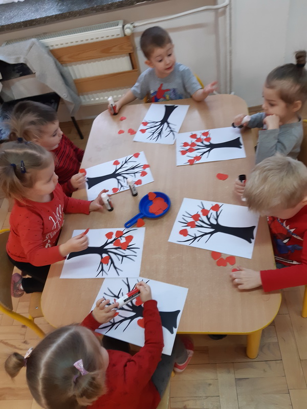 Czerwone stroje przedszkolaków oraz wychowawców z naszego przedszkola, przybrane w piątek, 14 lutego, nie były przypadkowe. Tego dnia obchodzono Dzień Przyjaźni, który był okazją do wspólnej zabawy. W ten szczególny czas wszystkie przedszkolaki starały się być dla siebie wyjątkowo miłe i życzliwe. Były konkursy, zagadki, pląsy i śpiewy oraz rozmowy o tym, jaki powinien być prawdziwy przyjaciel. Na koniec wszystkie dzieci wykonały piękne prace plastyczne. Mamy nadzieję, że przyjaźnie zawarte w przedszkolu będą trwały latami…