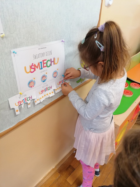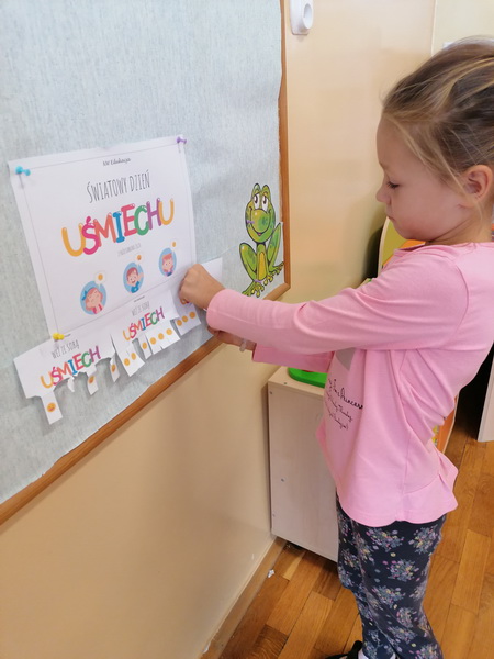 Początkiem października obchodzony jest Światowy Dzień Uśmiechu. Bez względu na to, czy uśmiechamy się często, czy sporadycznie, uśmiech towarzyszy nam każdego dnia. Śmiech rozluźnia i odstresowuje, ponadto stymuluje wydzielanie endorfin, czyli hormonów szczęścia. W przedszkolu codziennie jest moc zabawnych sytuacji i uśmiechów. By uczcić ten wyjątkowy dzień, przedszkolaki z grupy “Żabki” postanowiły podzielić się swoimi uśmiechniętymi minkami i pozytywną energią ze wszystkimi przedszkolakami, pracownikami przedszkola oraz rodzicami. Przesyłamy szczyptę magii, która wywoła uśmiech na twarzach podczas codziennych czynności. ŚMIEJMY SIĘ – ŚMIECH TO ZDROWIE!