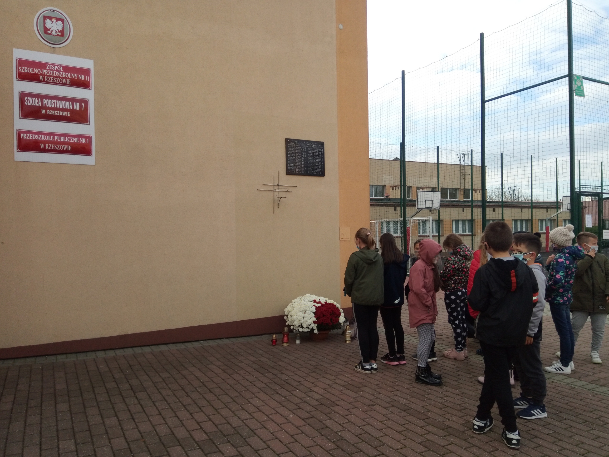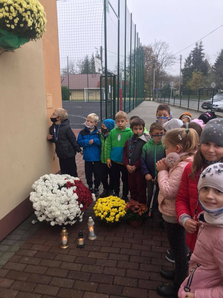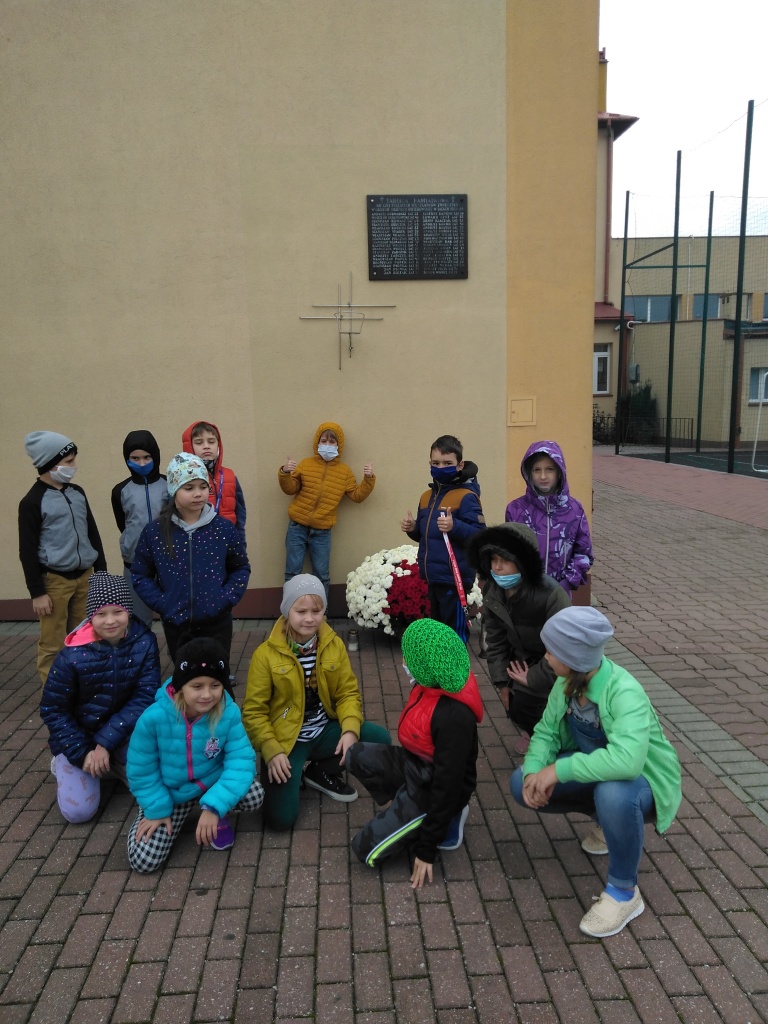 Uczniowie klas I–III naszej szkoły włączyli się w akcję zorganizowaną przez Ministerstwo Edukacji Narodowej “Szkoła Pamięta”. Celem akcji było zorganizowanie działań upamiętniających ważne postaci oraz wydarzenia, uwrażliwienie młodych ludzi na potrzebę pielęgnowania pamięci o bohaterach naszej wolności, szczególnie tych, którzy są związani z historią danego miejsca, regionu, społeczności. Uczniowie wraz z nauczycielami zapalili znicze pod tablicą pamiątkową, znajdującą się przed szkołą i w chwili modlitwy uczcili pamięć tych, którzy zginęli w obronie Ojczyzny.