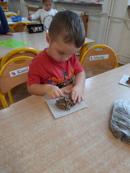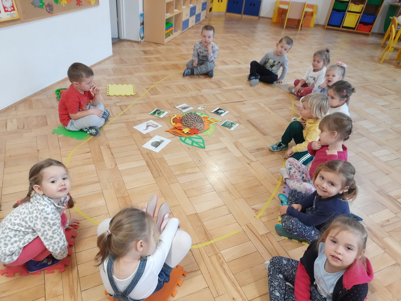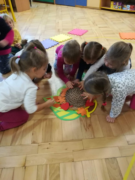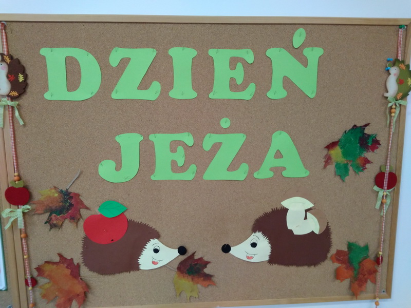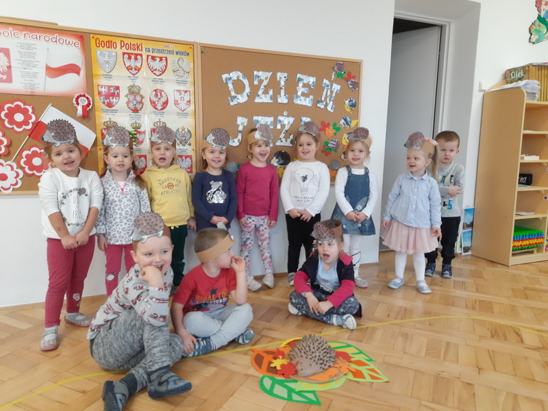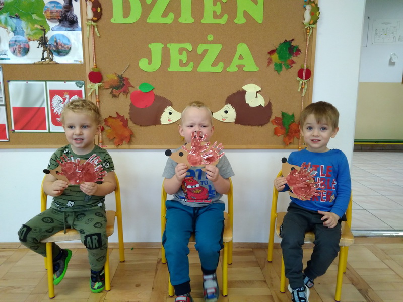 10 listopada najmłodsze grupy z naszego przedszkola obchodziły „Dzień Jeża”. Przedszkolaki miały okazję poszerzyć wiadomości dotyczące środowiska naturalnego jeży, ich wyglądu, sposobu poruszania się, odżywiania oraz tego, w jaki sposób przygotowują się do zimy. Podczas zajęć plastycznych dzieci wykonały jeża z masy solnej oraz jeżyka z odbitych w farbie rączek. Na zakończenie wspaniałego dnia dzieci uczestniczyły we wspólnej zabawie „Na dywanie siedzi jeż”.