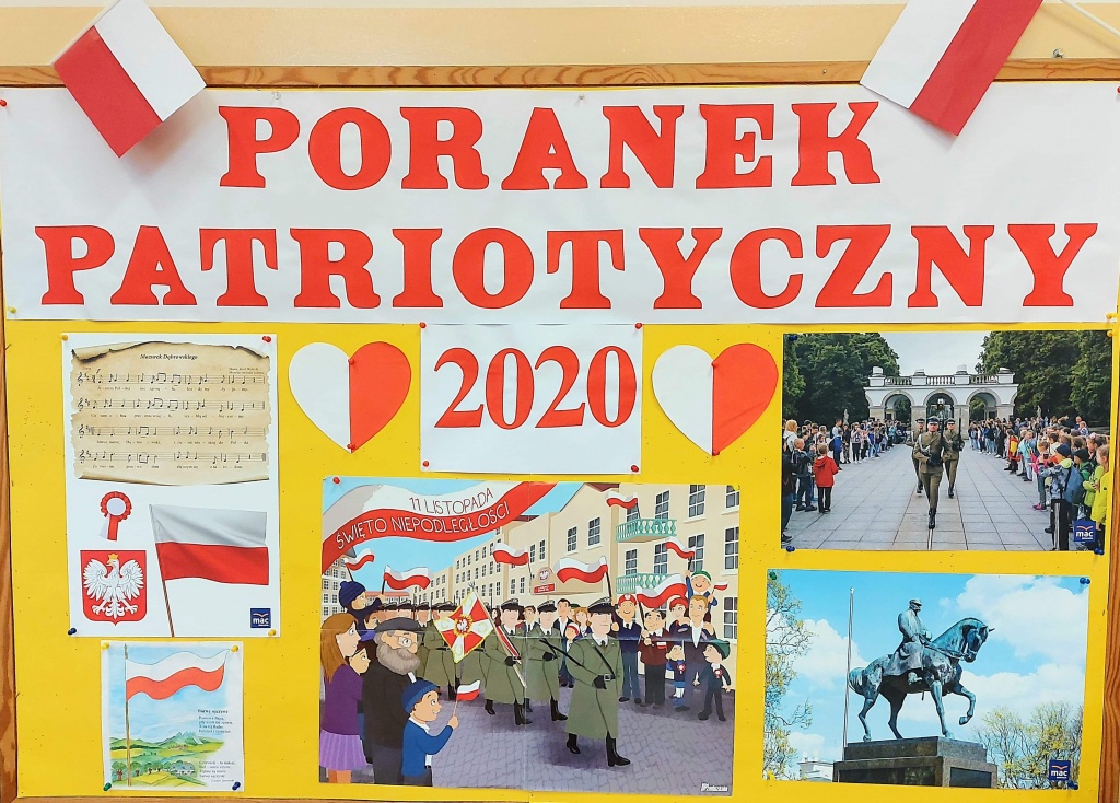 W ramach zajęć przedszkolaki stworzyły ciekawe prace plastyczne, inspirowane symbolami narodowymi, kąciki patriotyczne, kodeks oraz biblioteczkę małego patrioty. Podsumowaniem tygodnia był uroczysty Poranek Patriotyczny. W tym dniu we wszystkich grupach dominowały barwy biało-czerwone oraz rozbrzmiewał ,,Mazurek Dąbrowskiego”. Dzieci sześcioletnie, chcąc uczcić ten podniosły dzień, przygotowały instrumentację utworu ,,Hej strzelcy wraz’’ oraz wykonały ,,Piosenkę małego patrioty”.