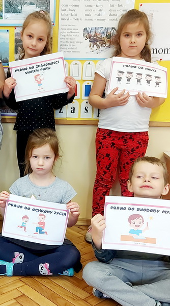 20 listopada najstarsze grupy – “Żabki” oraz “Słoneczka” obchodziły Międzynarodowy Dzień Praw Dziecka. Była to okazja do rozmowy na ważny temat. Przedszkolaki podzieliły się swoimi spostrzeżeniami dotyczącymi praw dziecka oraz rozpoznawały sytuacje, kiedy dochodzi do ich łamania. Dzieci wiedzą już, że mają prawo do uśmiechu, zabawy, spokojnej nauki i ciekawego poznawania otaczającego nas świata. Taki dzień jest także okazją do tego, abyśmy my, dorośli nigdy o tym nie zapominali, bo przecież, jak mówi wiersz: „Niech się wreszcie każdy dowie i rozpowie w świecie całym, że dziecko to także człowiek, tyle że jest mały”.