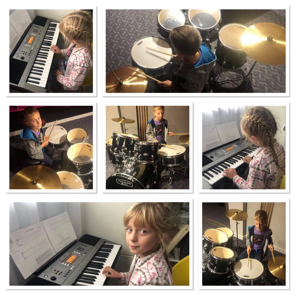 Niezwykła była dziś edukacja muzyczna w klasie Ib, w ramach której utrwalaliśmy wiadomości o instrumentach perkusyjnych i klawiszowych. Nasi klasowi koledzy: Hania i Janek zabrali nas na lekcję do swojego domu. Pokazali, że zajęcia w formie online też mogą być fascynujące. Bliźniacy zaprezentowali swoje instrumenty muzyczne i opowiedzieli o nich kilka zdań. Janek uczy się grać na perkusji, a jego siostra, Hania – na keybordzie. Na koniec zagrali dla nas krótki koncert. Bardzo dziękujemy mamie Janka i Hani za pomoc w organizacji tych zajęć.