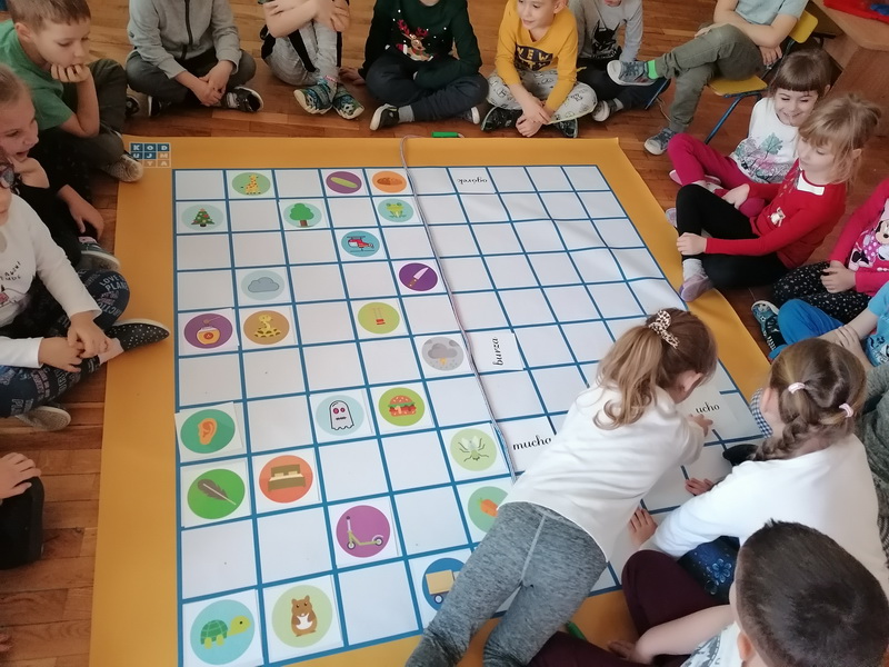 – nauka kodowania oraz dekodowania poprzez zabawę z wykorzystaniem maty edukacyjnej, robota DOC;