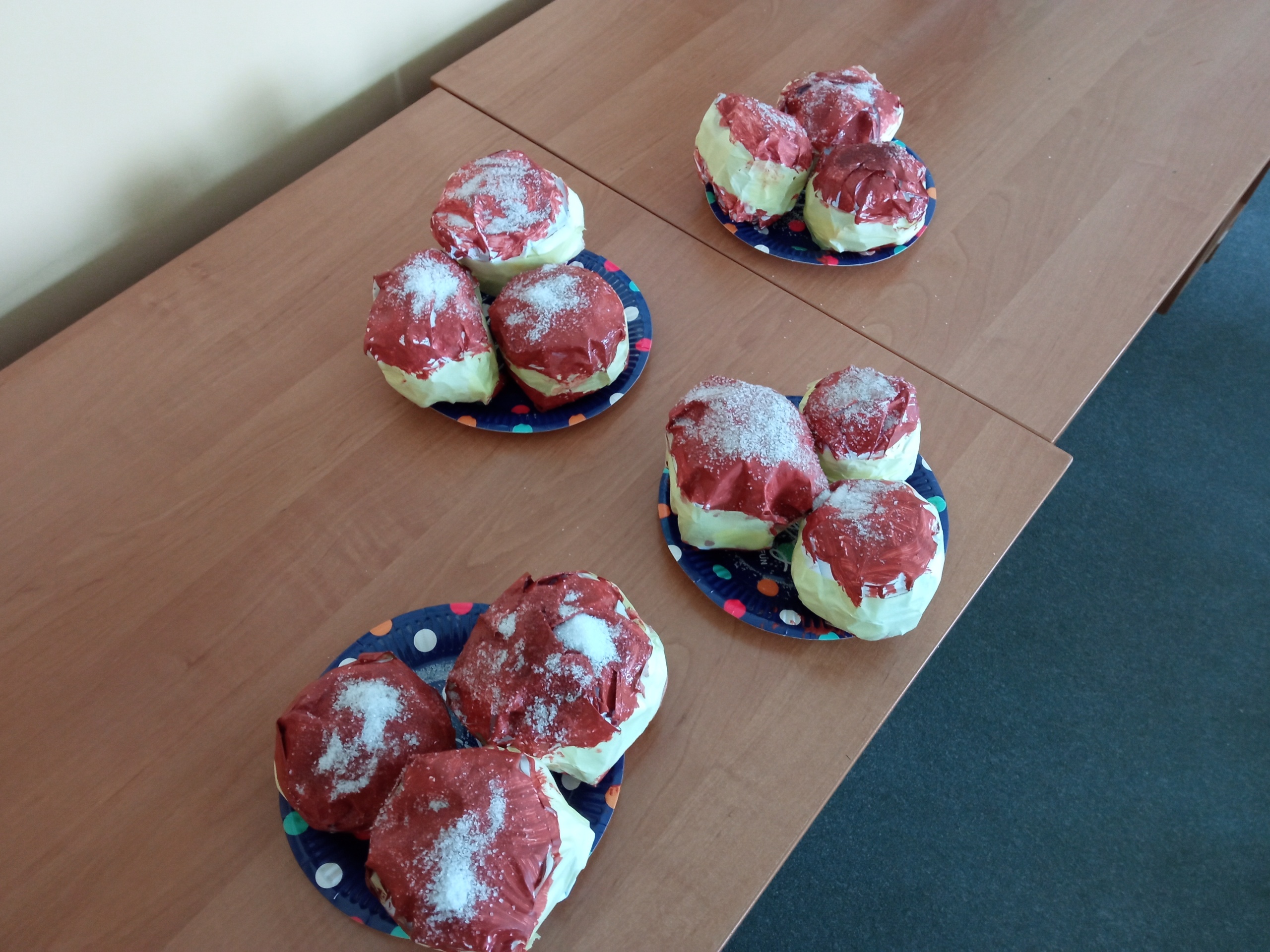 W ramach zajęć na świetlicy szkolnej uczniowie klasy 3a stanęli na wysokości zadania i wykonali przepiękne pączki. A oto jak pracowali. Zobaczcie sami. Mmm, aż chce się zjeść!
