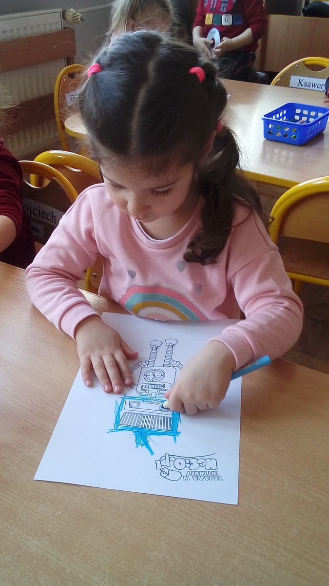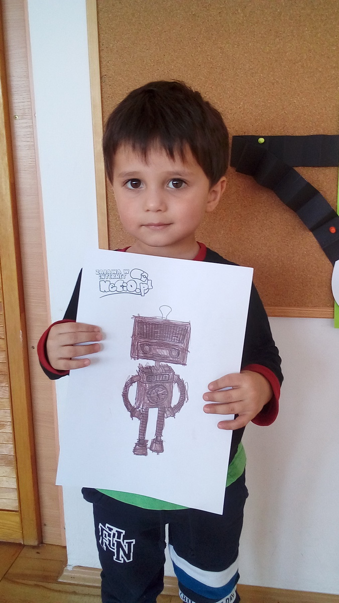 Mali internauci wysłuchali bajki pt. „Mój przyjaciel Necio”, następnie wspólnie zastanawiali się, czym jest Internet, na co uważać podczas korzystania z sieci i jakie niepokojące zachowania od razu zgłaszać rodzicom. Zajęcia były także okazją do spróbowania swoich sił w grach edukacyjnych online, dzięki którym dzieci mogły poćwiczyć umiejętność posługiwania się myszką i klawiaturą. Na koniec zajęć przedszkolaki stworzyły własne wersje robocika Necio.