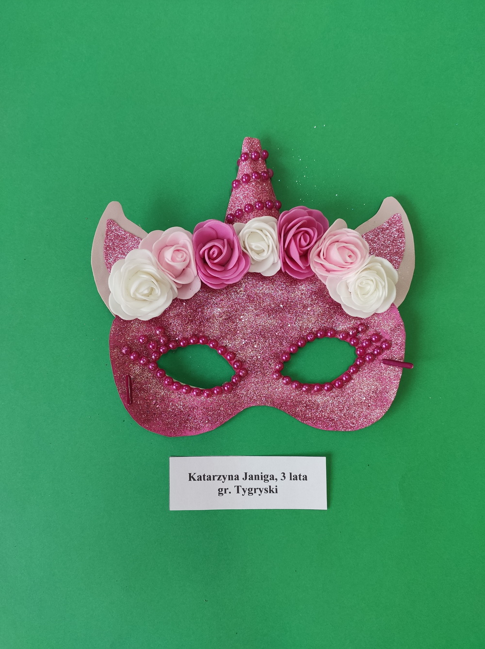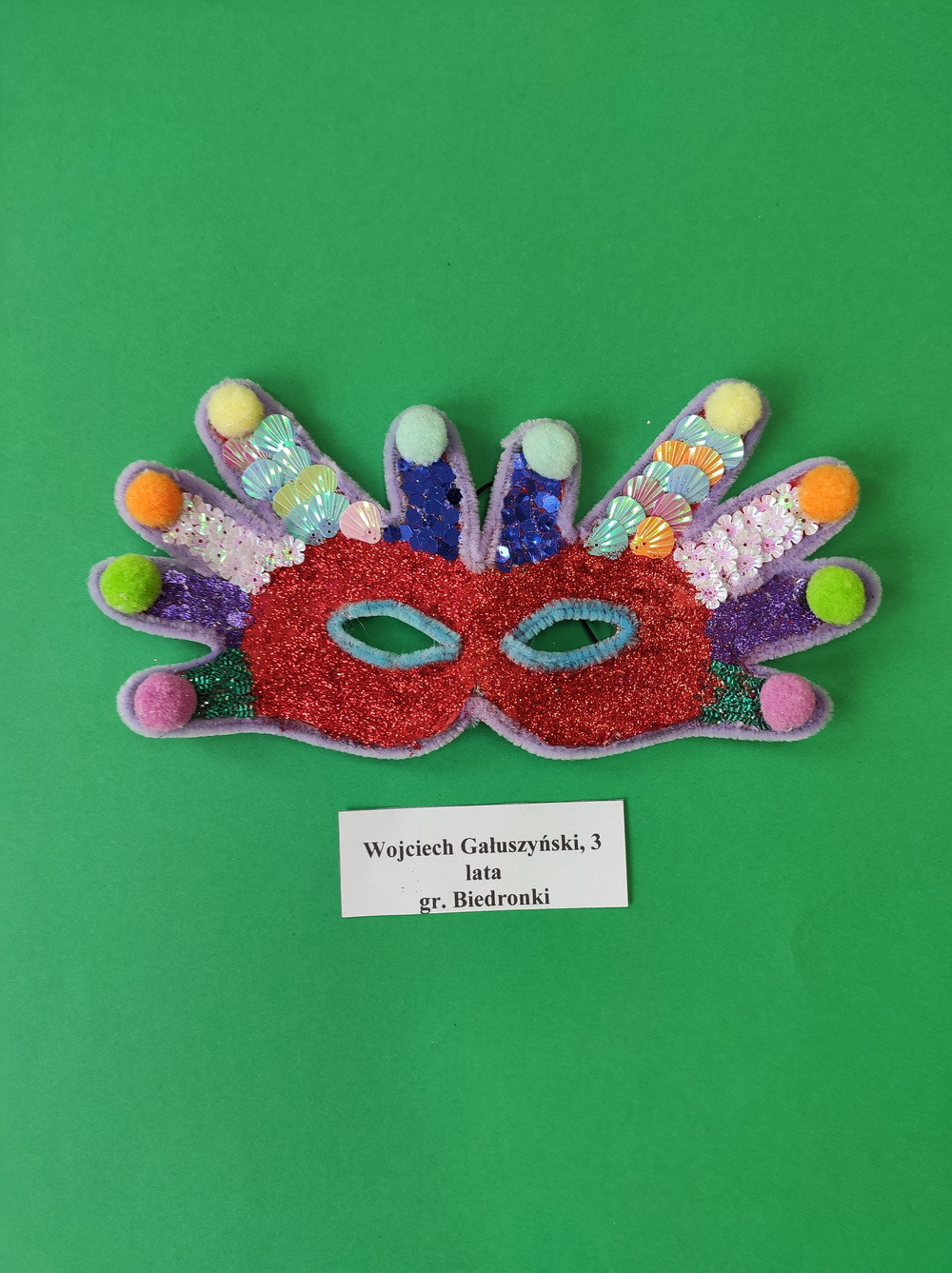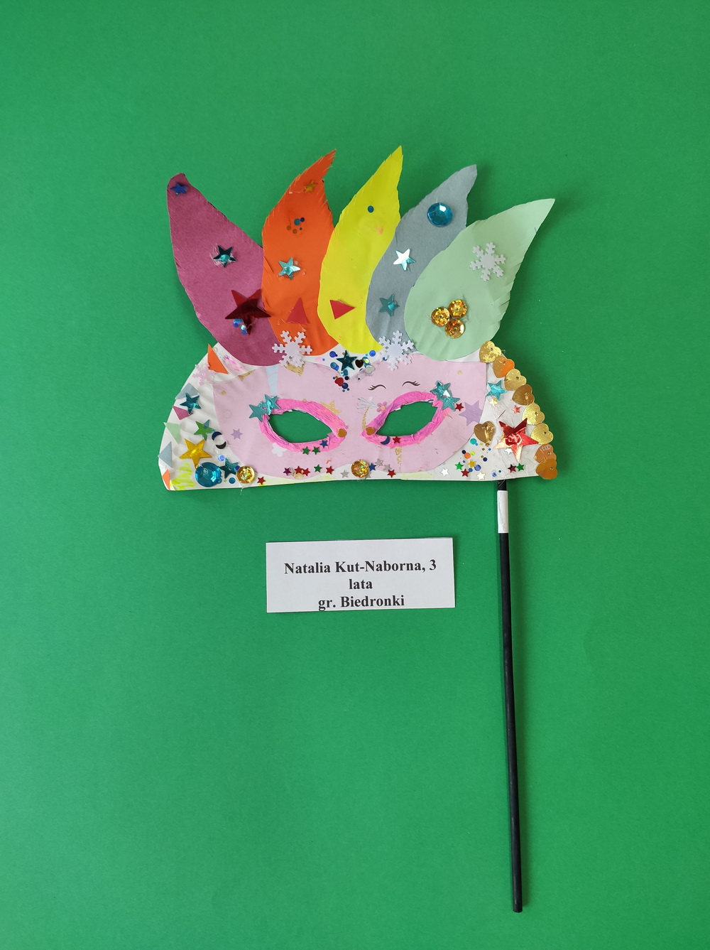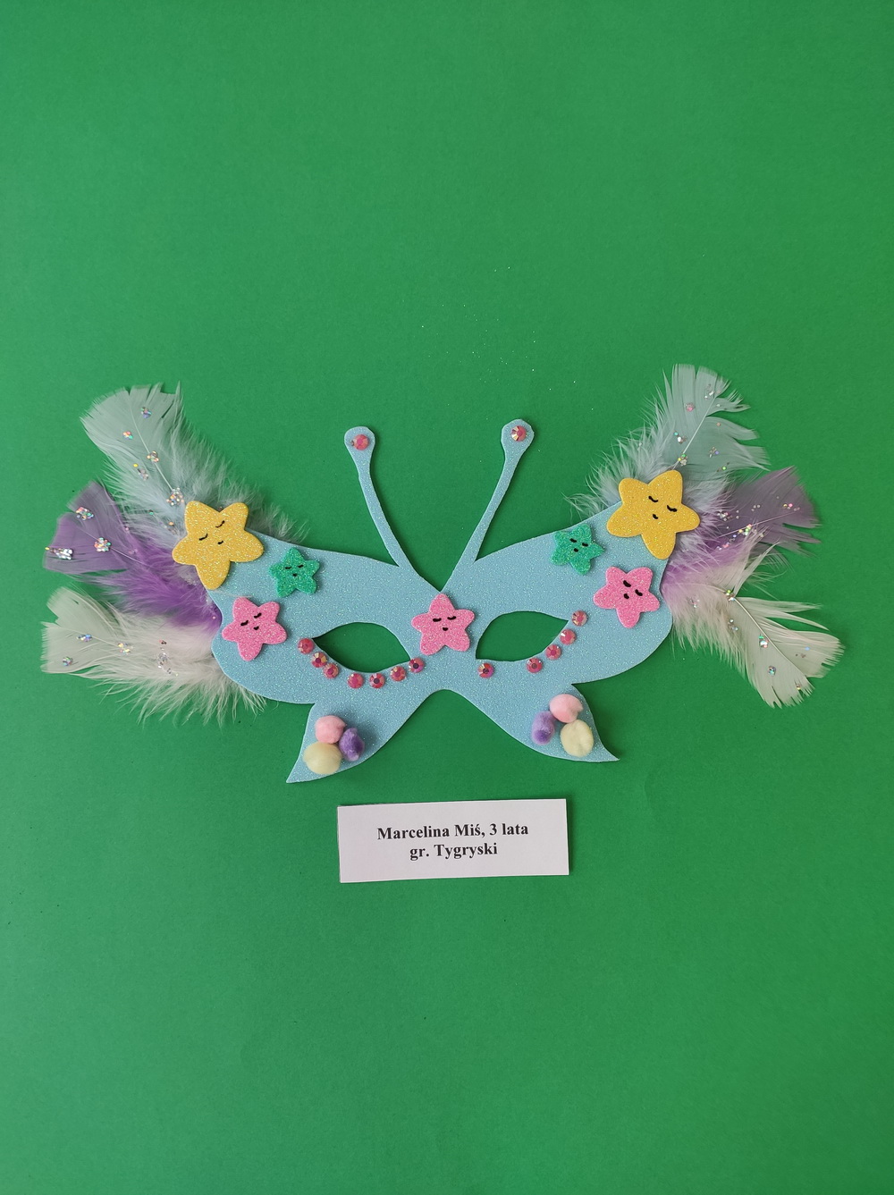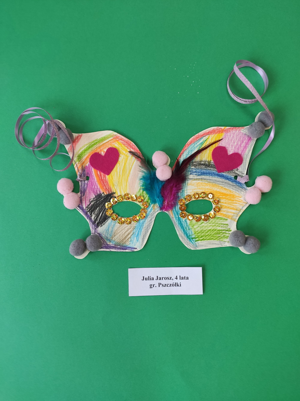 Na przełomie stycznia i lutego w naszym przedszkolu zorganizowano konkurs plastyczny pn. “Magiczna maska karnawałowa”. Był on skierowany do dzieci 3- i 4- letnich wraz z rodzicami. Zadaniem uczestników było wykonanie maski karnawałowej przy użyciu dowolnych materiałów, wybraną techniką. Komisja konkursowa miała trudne zadanie, ponieważ wszystkie dostarczone efekty prac, a było ich 26, były wyjątkowe.