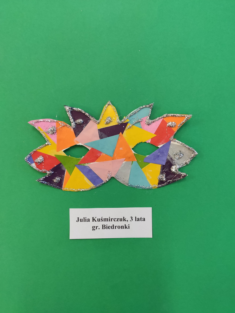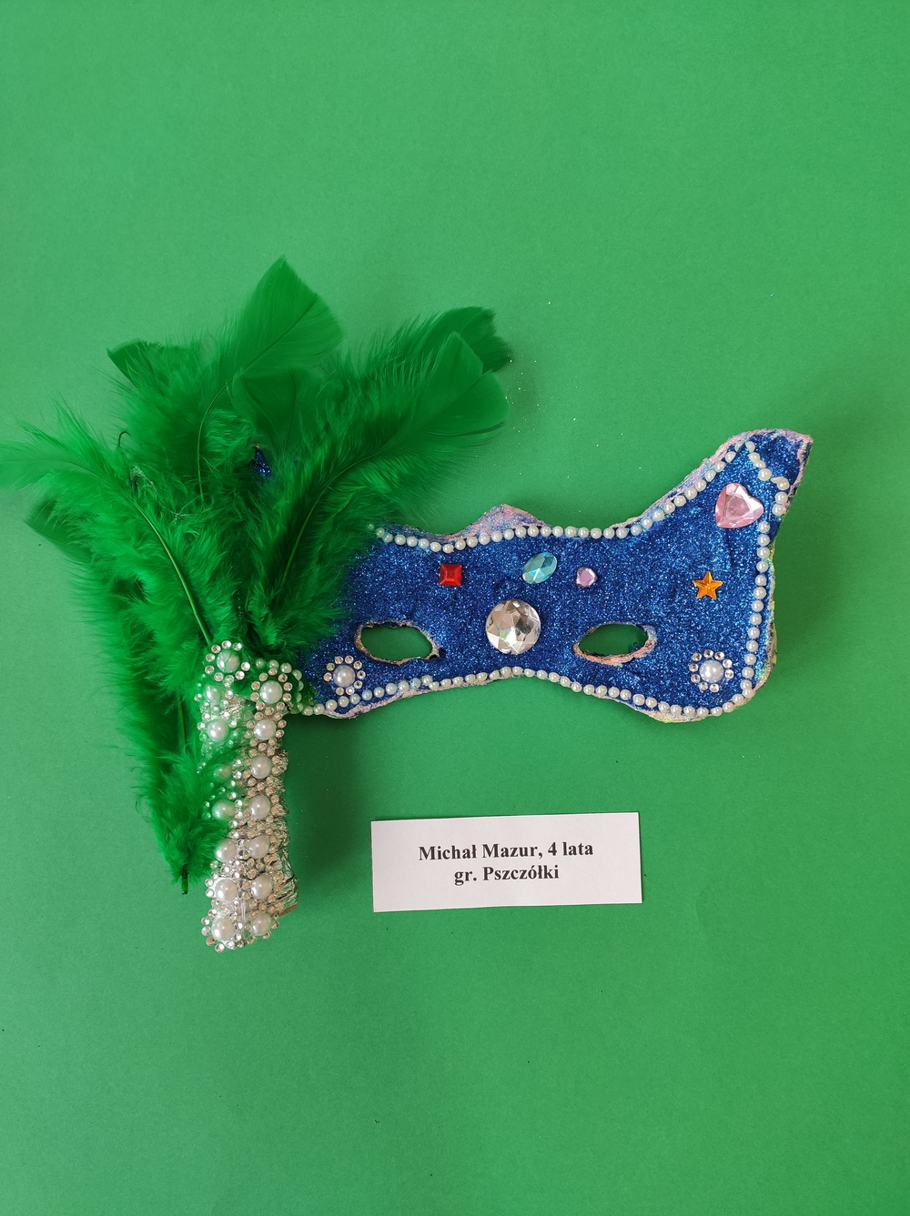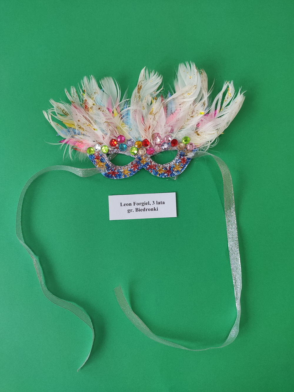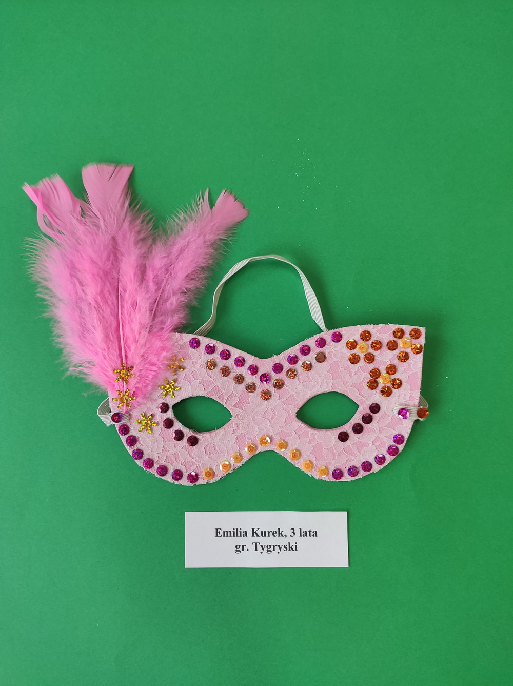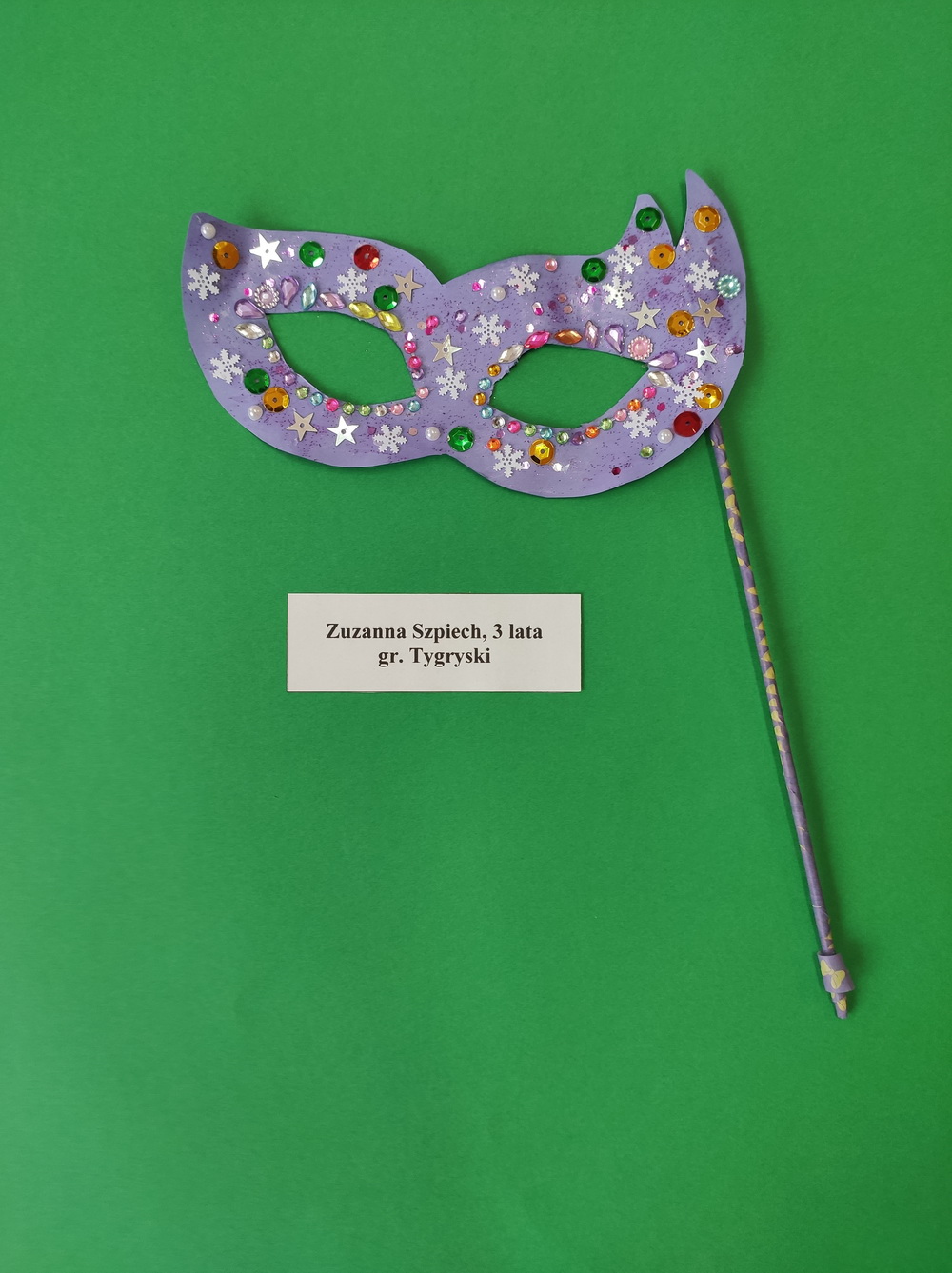 Na przełomie stycznia i lutego w naszym przedszkolu zorganizowano konkurs plastyczny pn. “Magiczna maska karnawałowa”. Był on skierowany do dzieci 3- i 4- letnich wraz z rodzicami. Zadaniem uczestników było wykonanie maski karnawałowej przy użyciu dowolnych materiałów, wybraną techniką. Komisja konkursowa miała trudne zadanie, ponieważ wszystkie dostarczone efekty prac, a było ich 26, były wyjątkowe.
