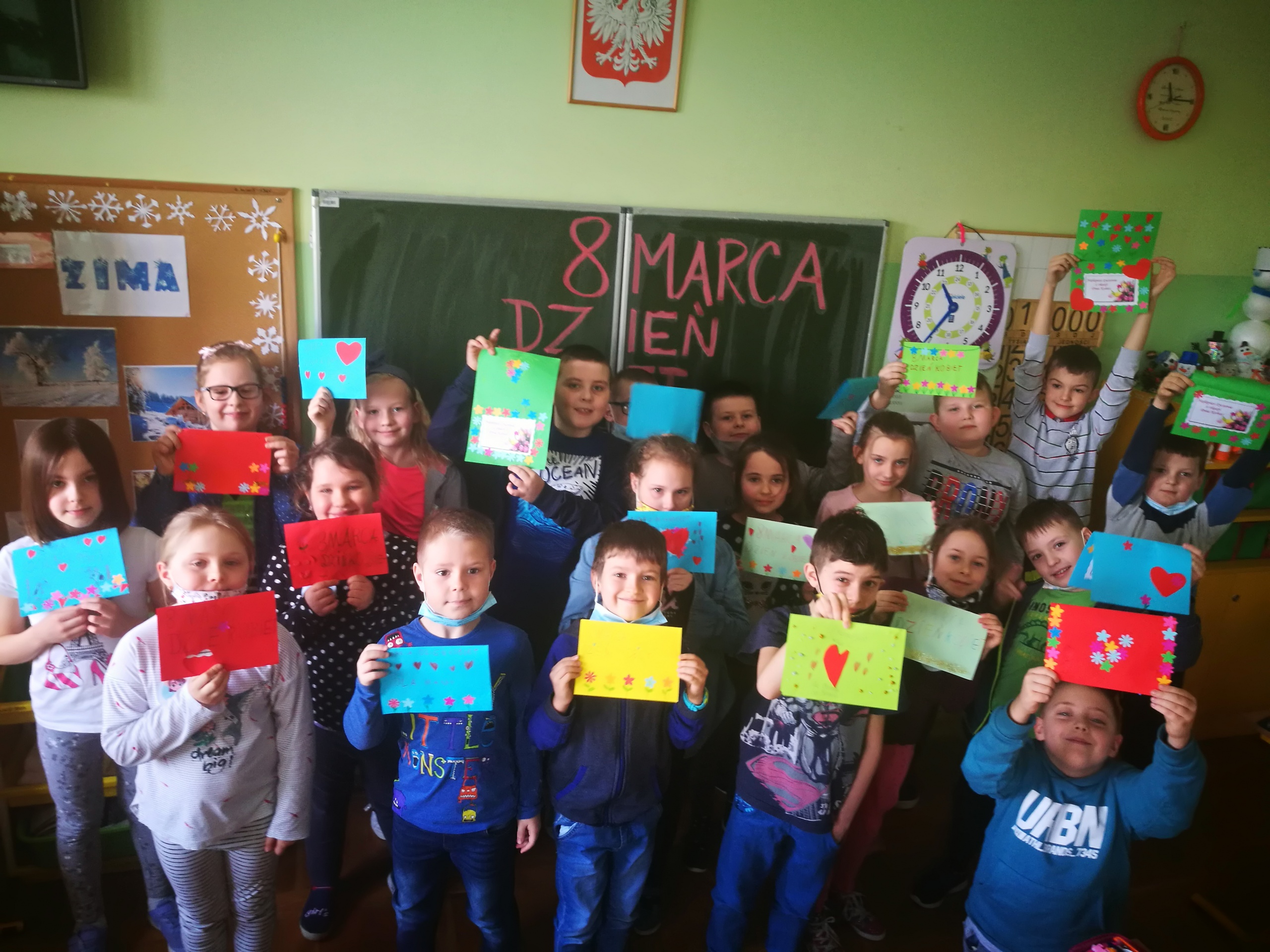 8 marca uczniowie klasy 2b świętowali Dzień Kobiet. Dziewczynki z okazji święta otrzymały dyplomy oraz medale, a chłopcy mieli okazję złożyć im piękne życzenia. Dzieci samodzielnie wykonały laurki dla swoich mam, aby móc wspólnie celebrować ten wspaniały dzień, który obchodzony jest na całym świecie od 1910 roku. Obecnie stanowi on oficjalne święto w Albanii, Algierii, Armenii, Azerbejdżanie, Białorusi, Bośni i Hercegowinie, Brazylii, Bułgarii, Burkina Faso, Kamerunie, Chinach, Kubie, Laosie, Kazachstanie, Kirgistanie, Macedonii, Mołdawii, Mongolii, Czarnogórze, Polsce, Rumunii, Rosji, Serbii, Tadżykistanie, Ukrainie, Uzbekistanie, Wietnamie, Włoszech i Zambii.