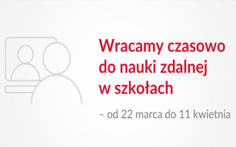 Zgodnie z Rozporządzeniem Ministra Edukacji i Nauki z dnia 18 marca 2021 r. zmieniającym rozporządzenie w sprawie czasowego ograniczenia funkcjonowania jednostek systemu oświaty w związku z zapobieganiem, przeciwdziałaniem i zwalczaniem COVID-19, od dnia 22 marca 2021 r. do dnia 11 kwietnia 2021 r. na obszarze kraju ogranicza się funkcjonowanie publicznych i niepublicznych szkół podstawowych.
