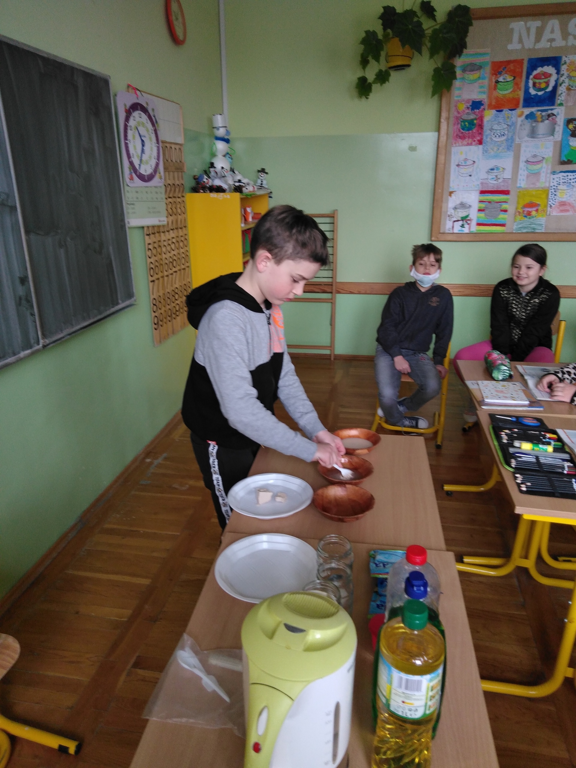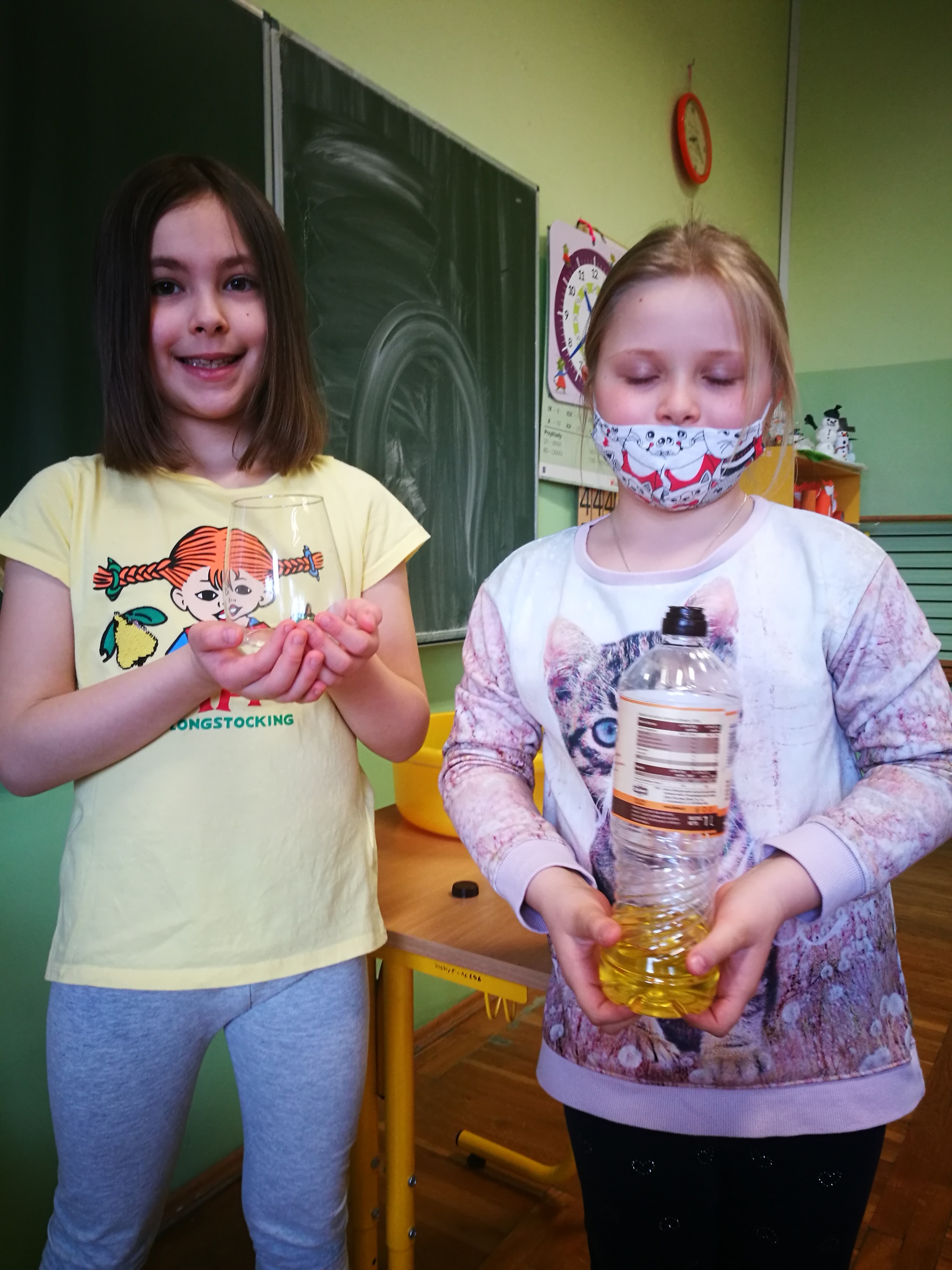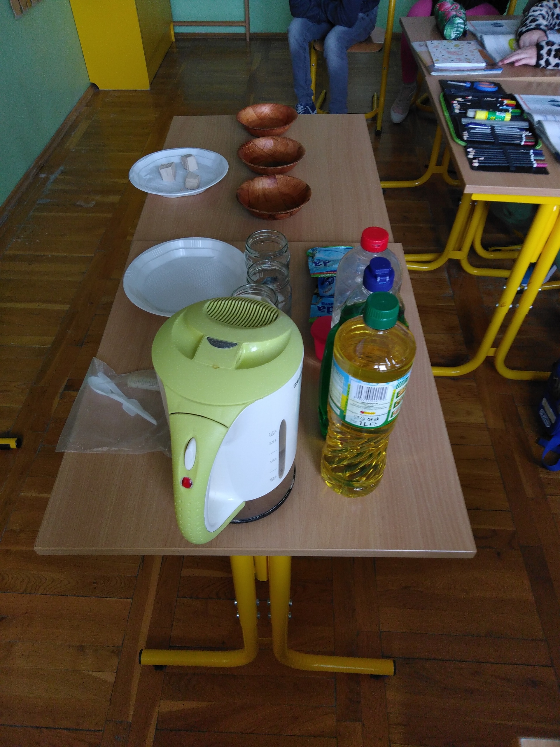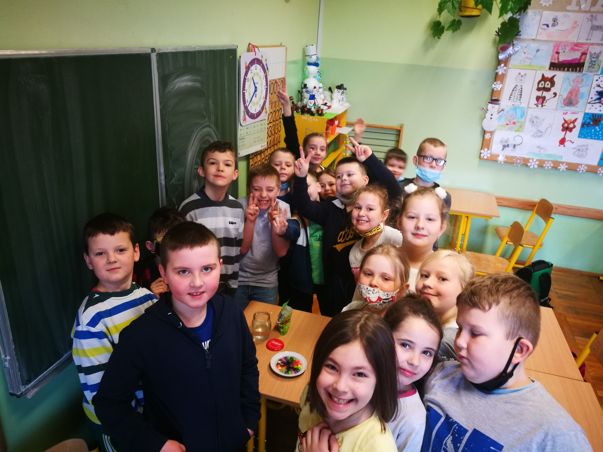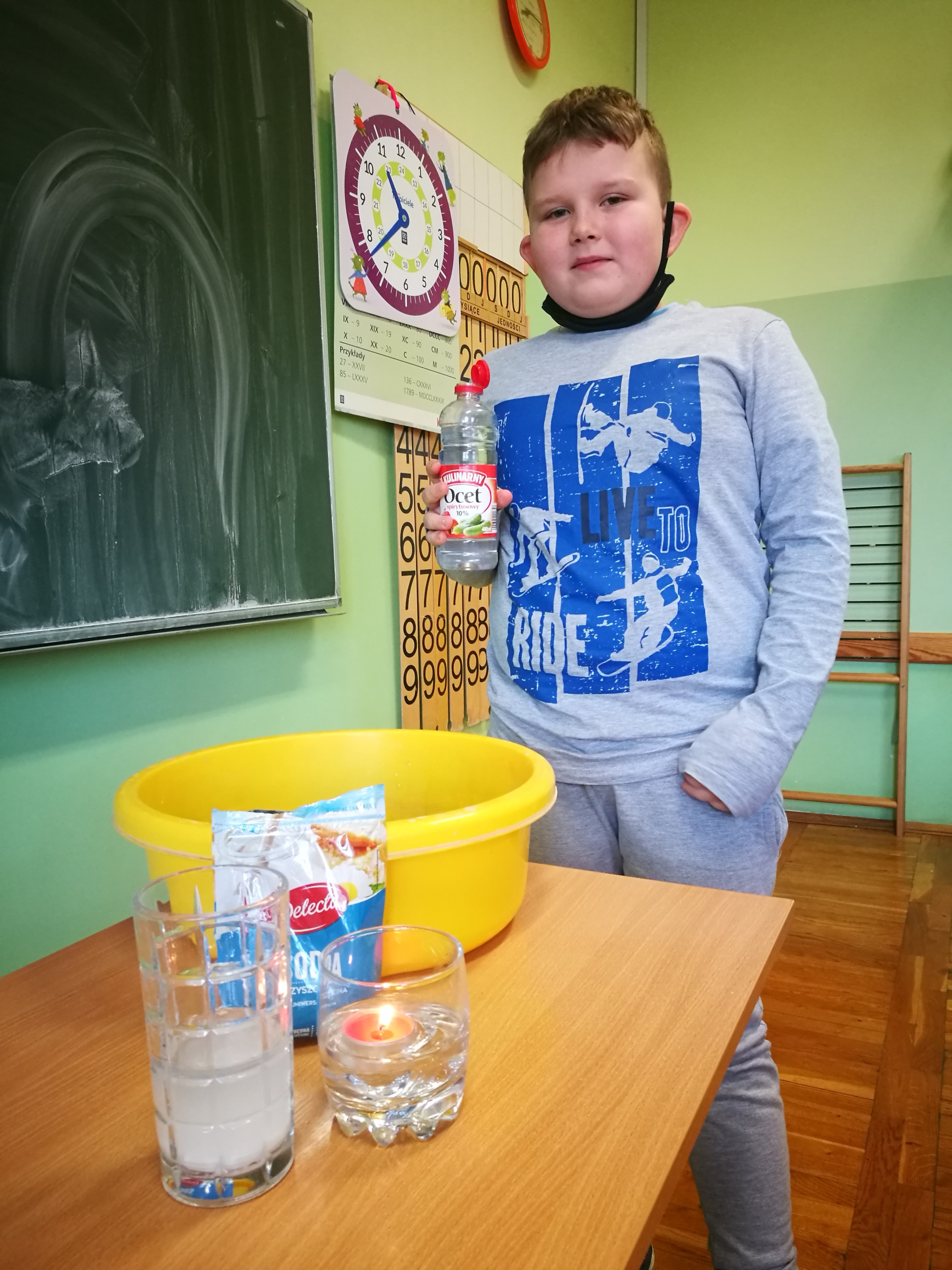 Uczniowie z klas 2a i 2b podczas zajęć poznawali tajniki chemii. Celem pokazu było rozbudzenie u dzieci ciekawości otaczającym światem przyrody, nauczenie ich prowadzenia obserwacji i wyciągania trafnych wniosków z przeprowadzonych doświadczeń oraz zachęcanie do eksperymentowania z rodzicami. O tym, że wiedza chemiczna może przydać się w codziennym życiu, a także dostarczyć ciekawej rozrywki, przekonali się uczniowie na zajęciach. Dzieci z zainteresowaniem obejrzały i pomagały przeprowadzić następujące eksperymenty: „Dlaczego ciasto rośnie?”, „Wulkan”, „Jak zrobić kolorowe warstwy w szklance?”, „Dlaczego świeczka gaśnie przykryta szklanką?”. Wszyscy stwierdzili, że doświadczenia są ciekawe i na pewno będą eksperymentować pod opieką rodziców.
