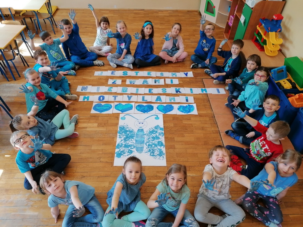 23 kwietnia wszystkie grupy przedszkolne wzięły udział w akcji „Jesteśmy z Wami Niebieskimi Motylami”. Nasza placówka została nominowana przez Przedszkole Publiczne w Boguchwale, a pomysłodawcą akcji jest Ośrodek Szkolno-Wychowawczy im. Jana Pawła II w Jarosławiu. Jej celem jest poszerzanie świadomości na temat autyzmu i przekazanie iskierki przyjaźni osobom z autyzmem i ich rodzinom. Nasza społeczność przedszkolna z wielkim entuzjazmem i zapałem odpowiedziała na to wyzwanie, a dzieci wykazały się dużą kreatywnością i pomysłowością. W tym dniu dominował w przedszkolu oczywiście kolor niebieski.
