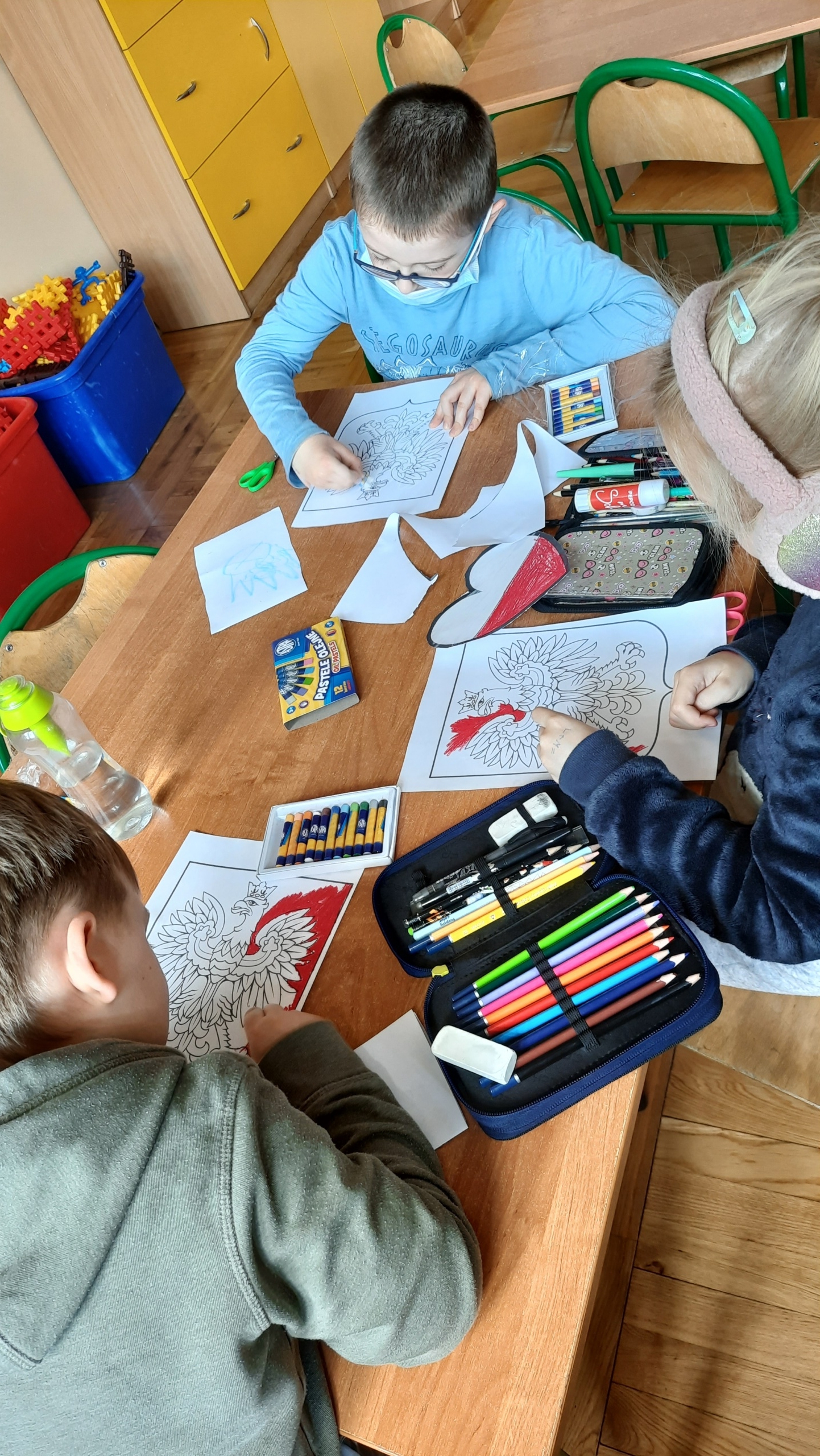 To właśnie z tymi ważnymi datami w historii Polski zapoznaliśmy wychowanków naszej świetlicy. Uczniowie poznali barwy narodowe oraz ich symbolikę. Wykonali przepiękne prace plastyczne w postaci flag oraz godła Polski. Nie zabrakło również pieśni patriotycznych oraz utrwalenia słów hymnu ,,Mazurka Dąbrowskiego”.