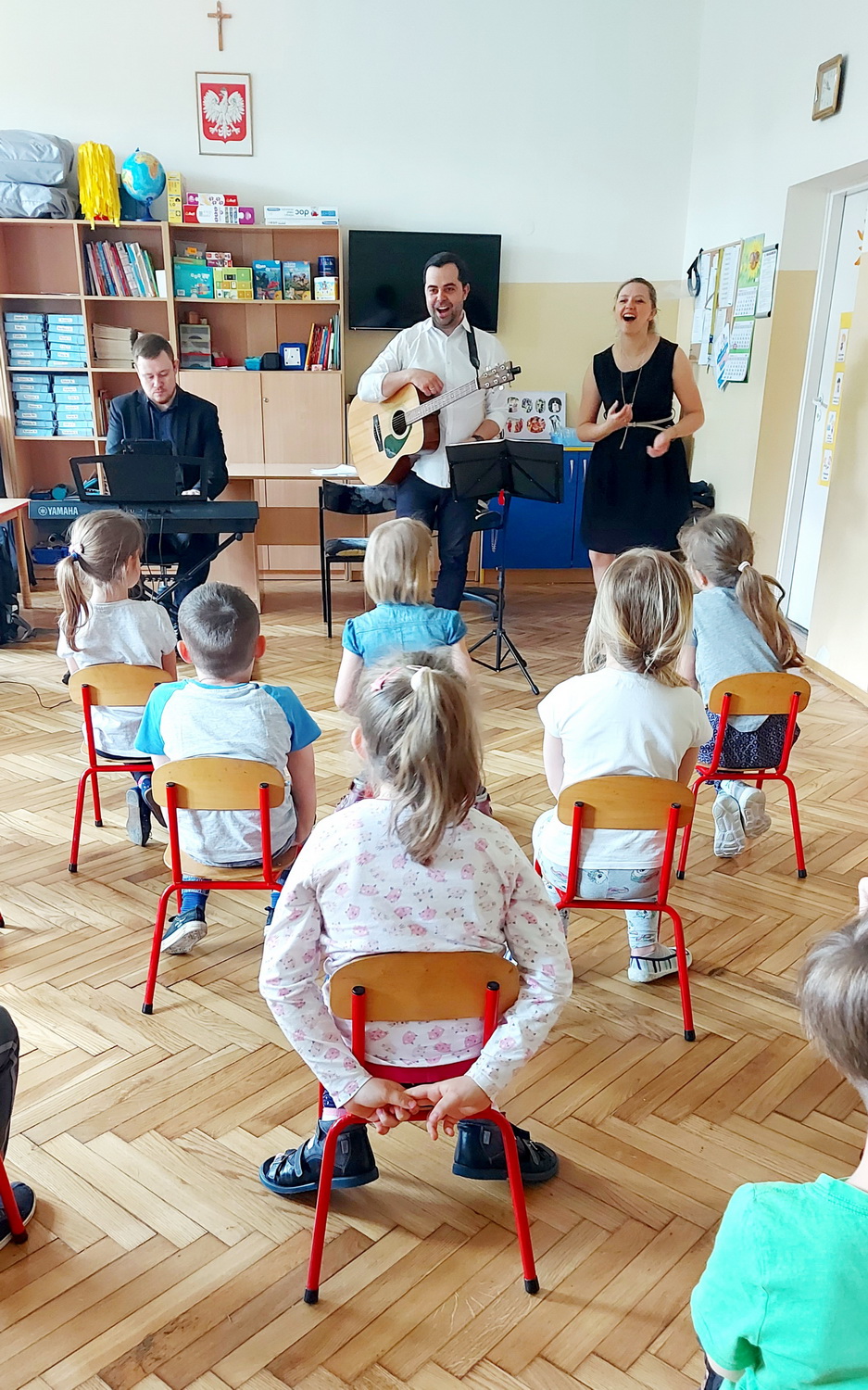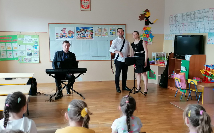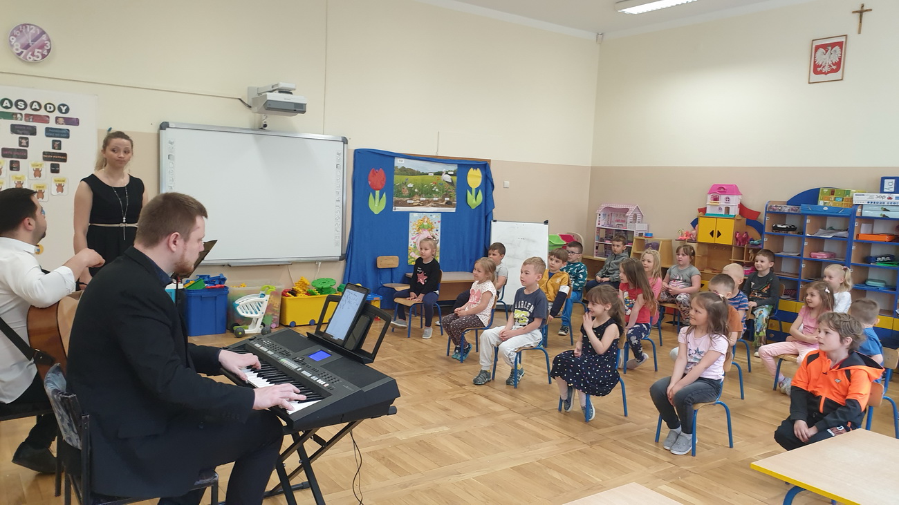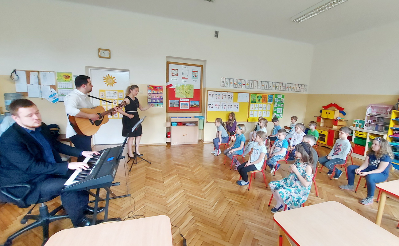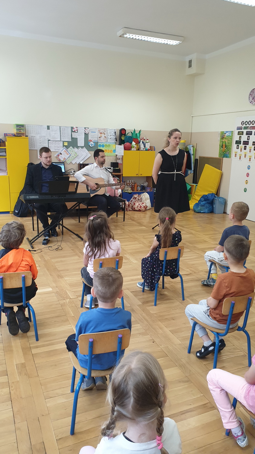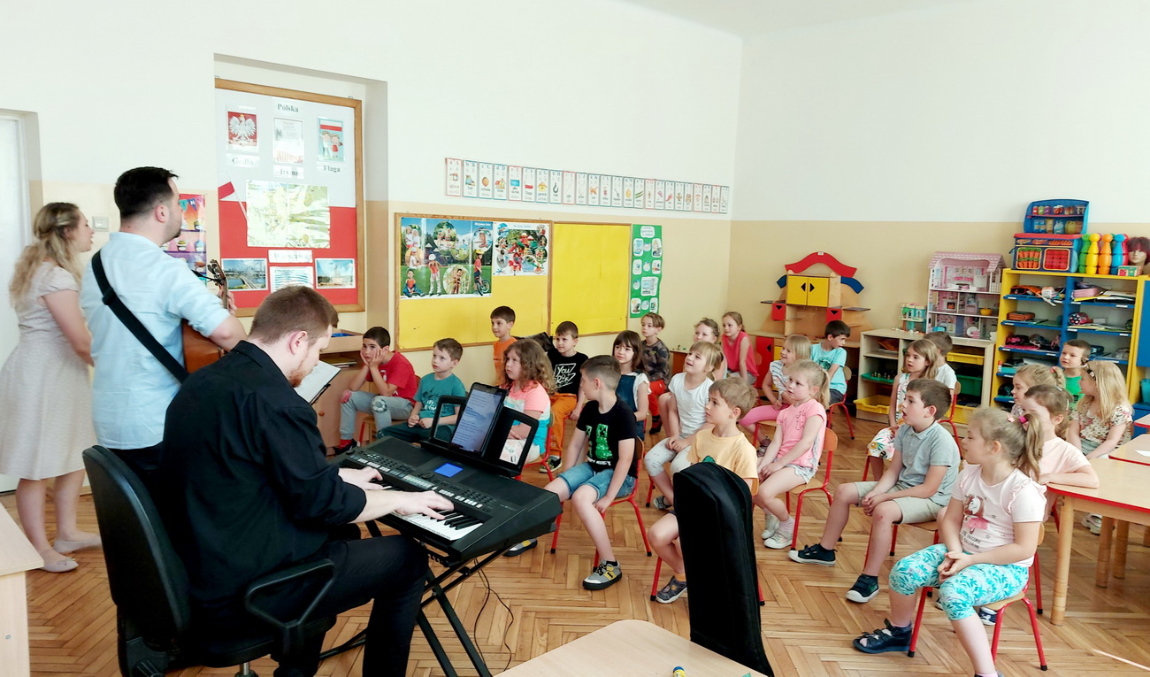 Na przełomie maja i czerwca, po bardzo długiej przerwie, mieliśmy zaszczyt gościć w przedszkolu muzyków z Filharmonii Podkarpackiej. Każda grupa uczestniczyła w dwóch audycjach muzycznych, zatytułowanych: “Muzyka i emocje w filmie” oraz “Musicalowo-bajkowo”, które przeniosły małych słuchaczy w niezwykły świat bajek – tych współczesnych i nieco starszych.