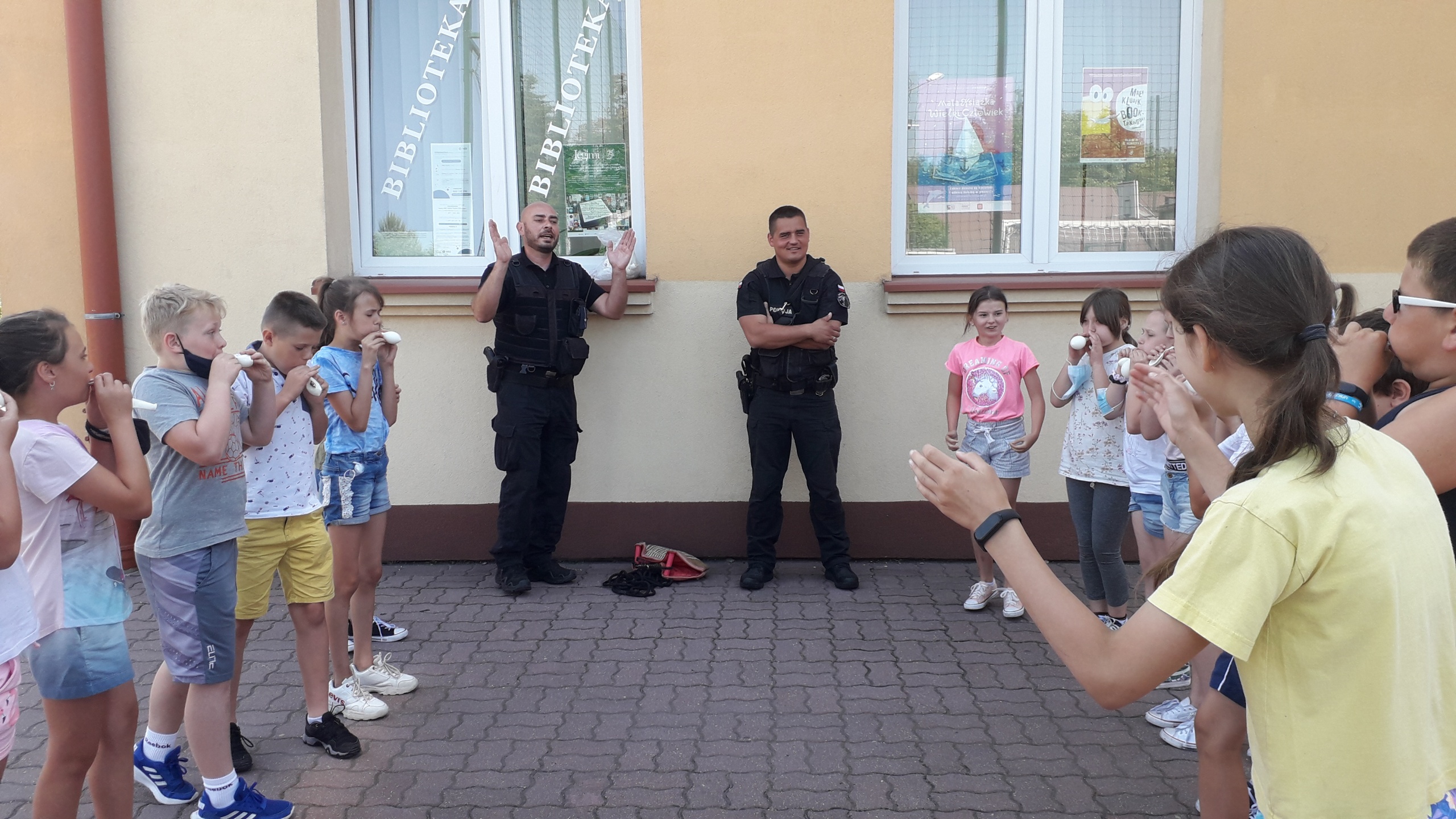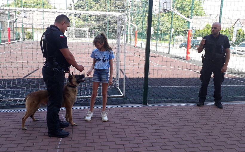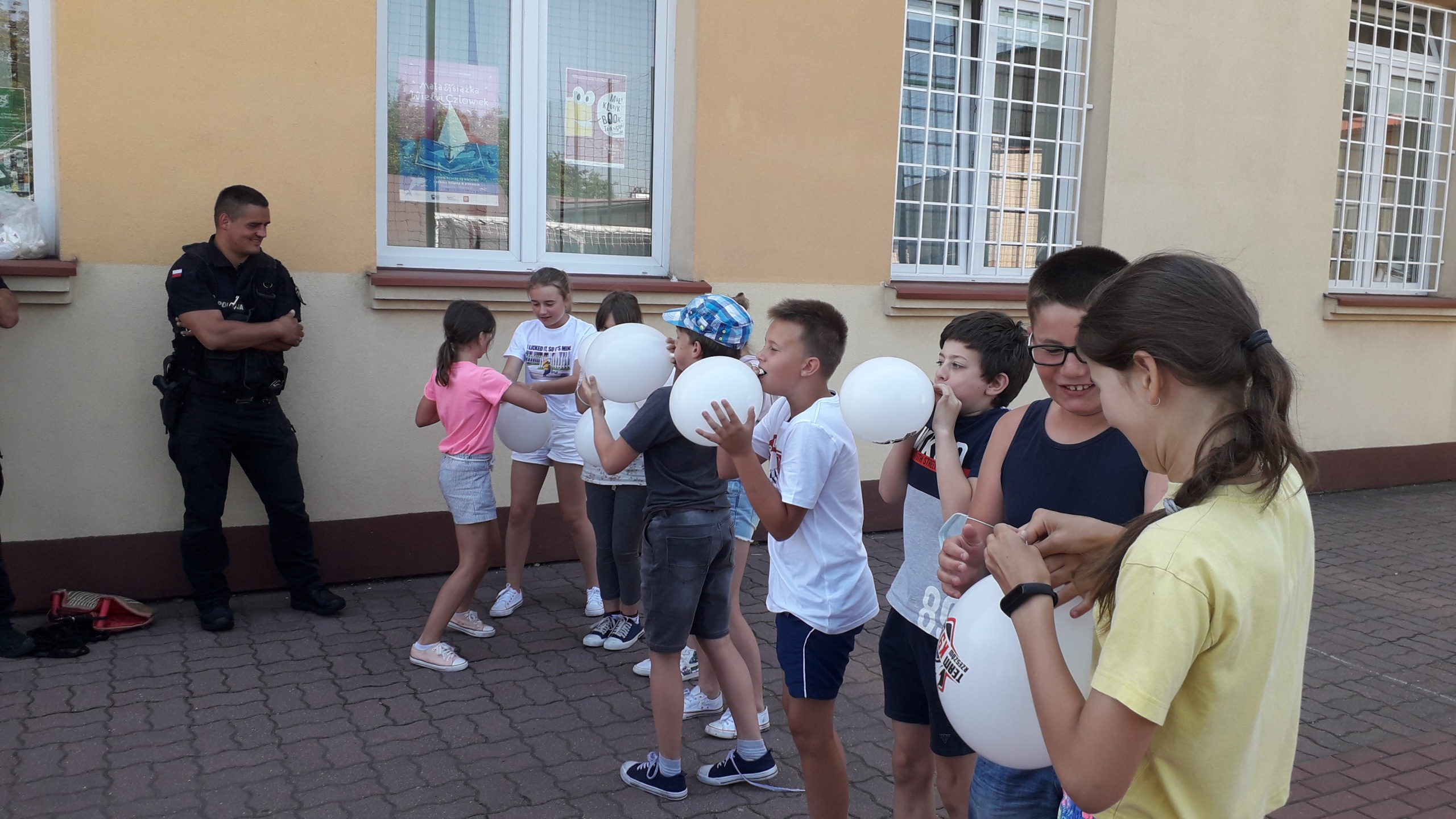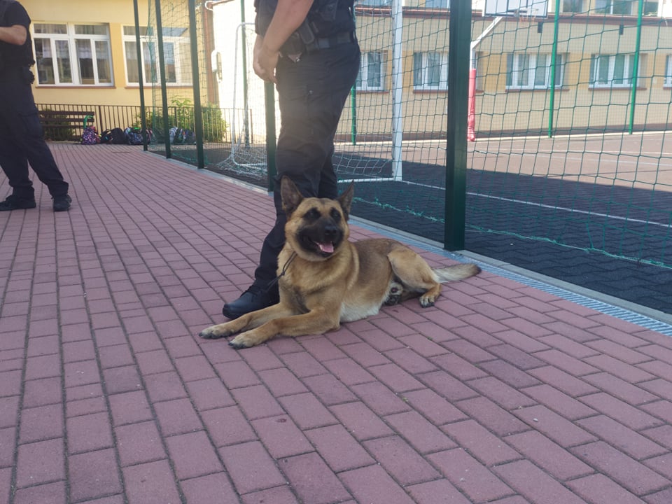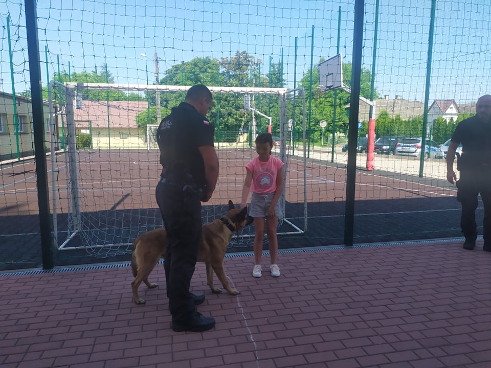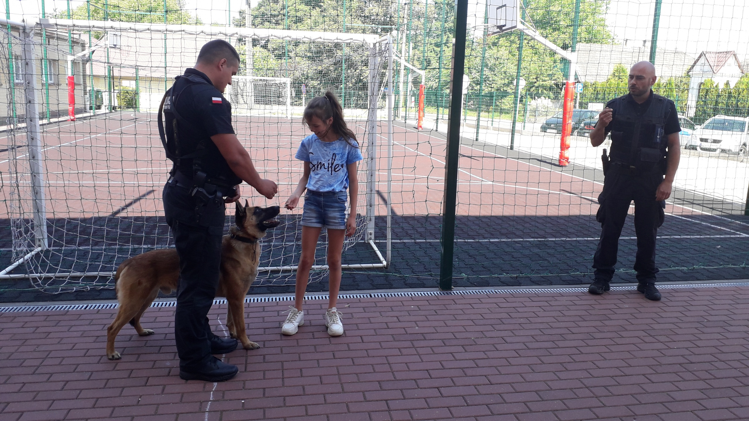 21 czerwca, tuż przed zakończeniem roku szkolnego, klasy 4a i 4b uczestniczyły w spotkaniu z policjantami przewodnikami psów. Panowie przypomnieli dzieciom zasady, do których należy się stosować podczas letniego wypoczynku, a także wskazali, jak należy zachowywać się w sytuacjach zagrożenia. Najmilszą częścią odwiedzin była prezentacja dwóch psów – Alfa i Lobo, które pokazały robiące wielkie wrażenie umiejętności, jeden z nich brał udział w przeciąganiu liny, a nawet “latał”.