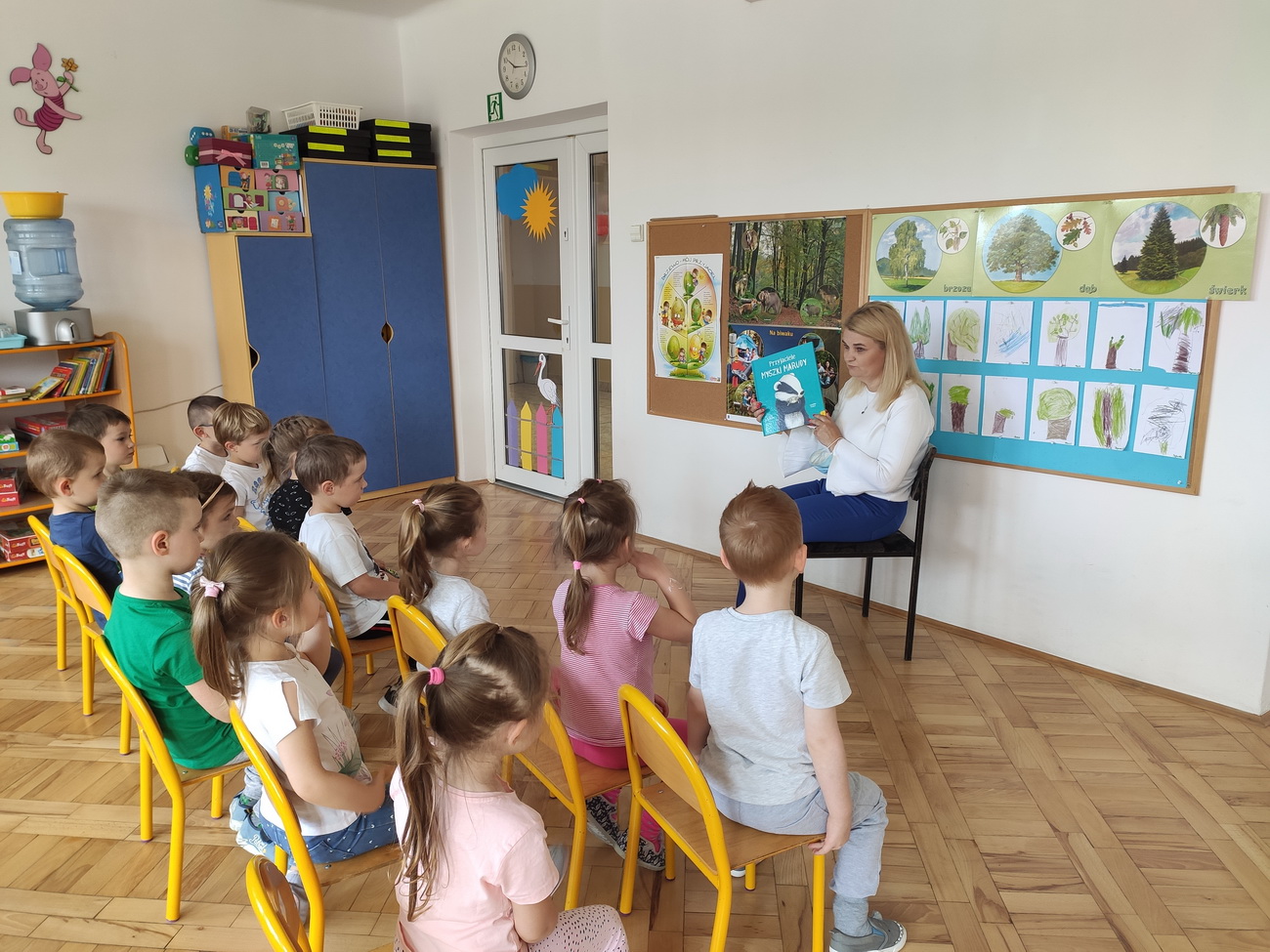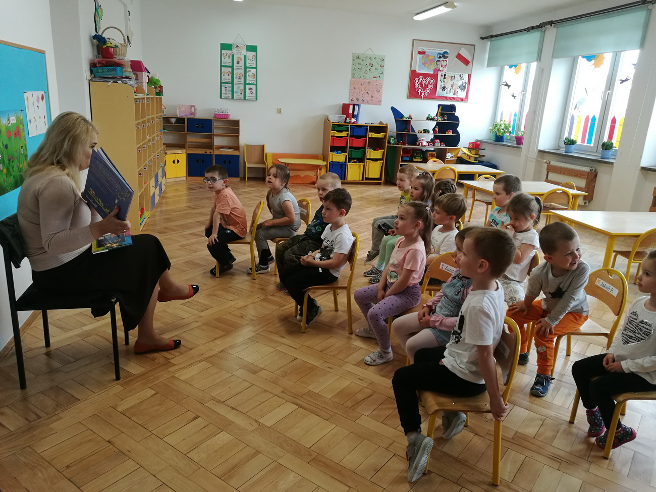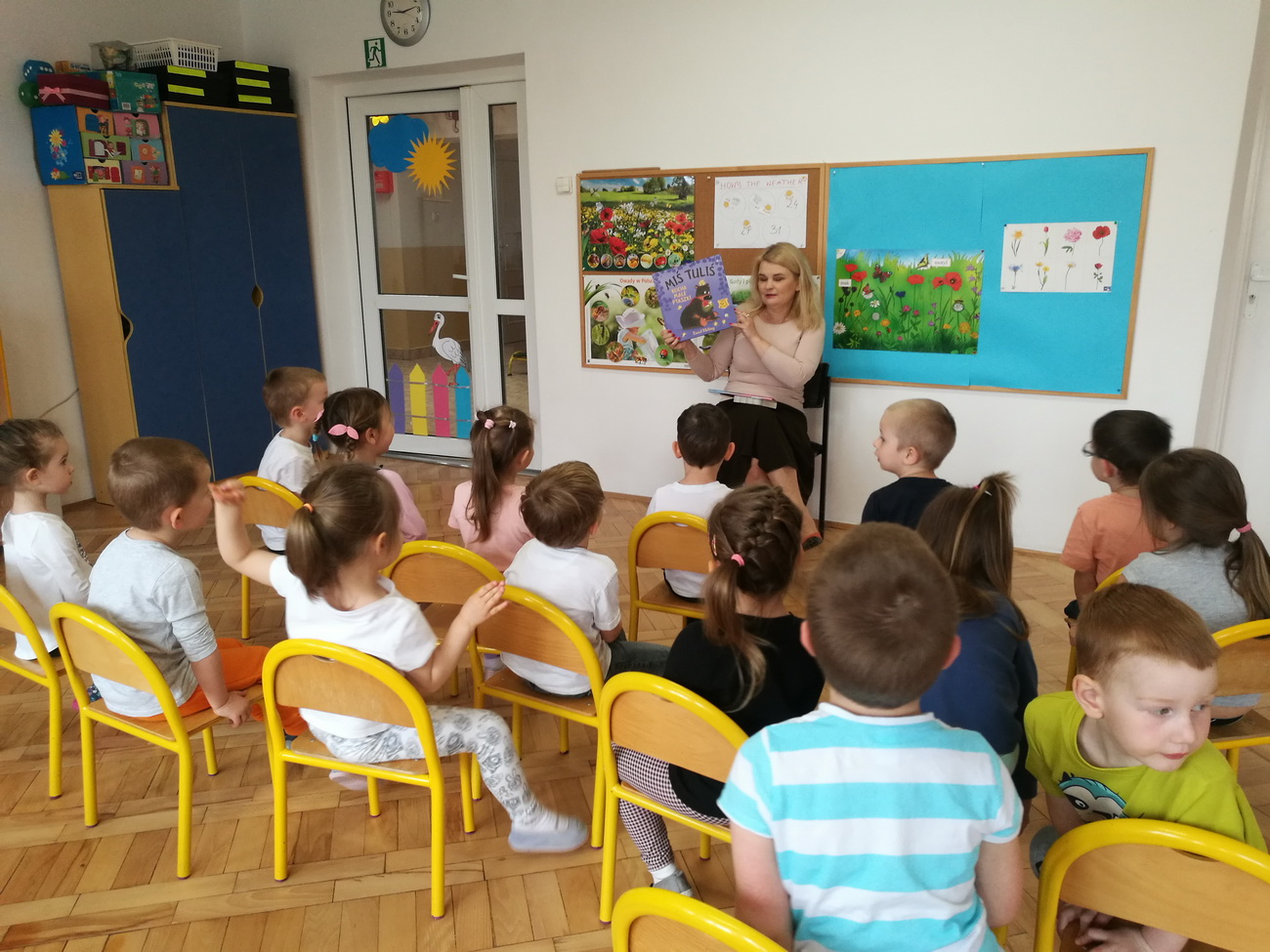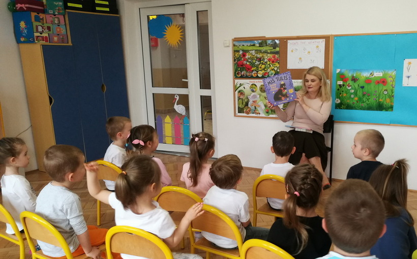 W maju i czerwcu nasze przedszkole kilkukrotnie odwiedziła pani Katarzyna Baran z Miejskiej Biblioteki Publicznej w Rzeszowie. Celem spotkań było rozbudzenie zainteresowań czytelniczych, wzbogacanie słownictwa i pobudzanie wyobraźni przedszkolaków. Dzieci w ciszy i skupieniu słuchały bajek czytanych przez panią bibliotekarkę i chętnie odpowiadały na zadawane im pytania. Pani Katarzyna zwracała uwagę na poznawcze walory książek, sytuacje humorystyczne i kolorowe ilustracje.