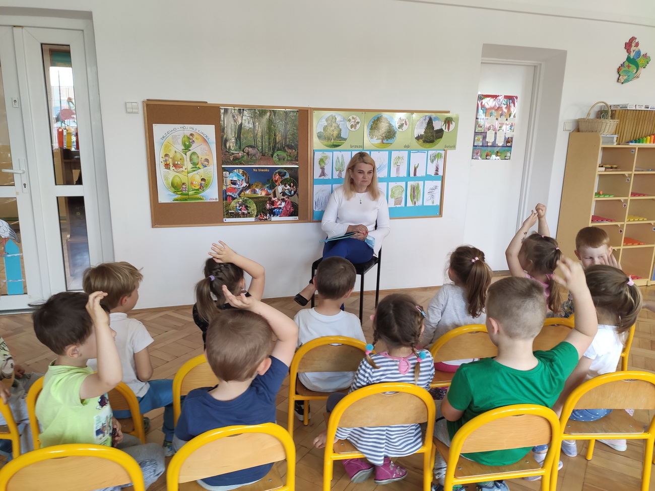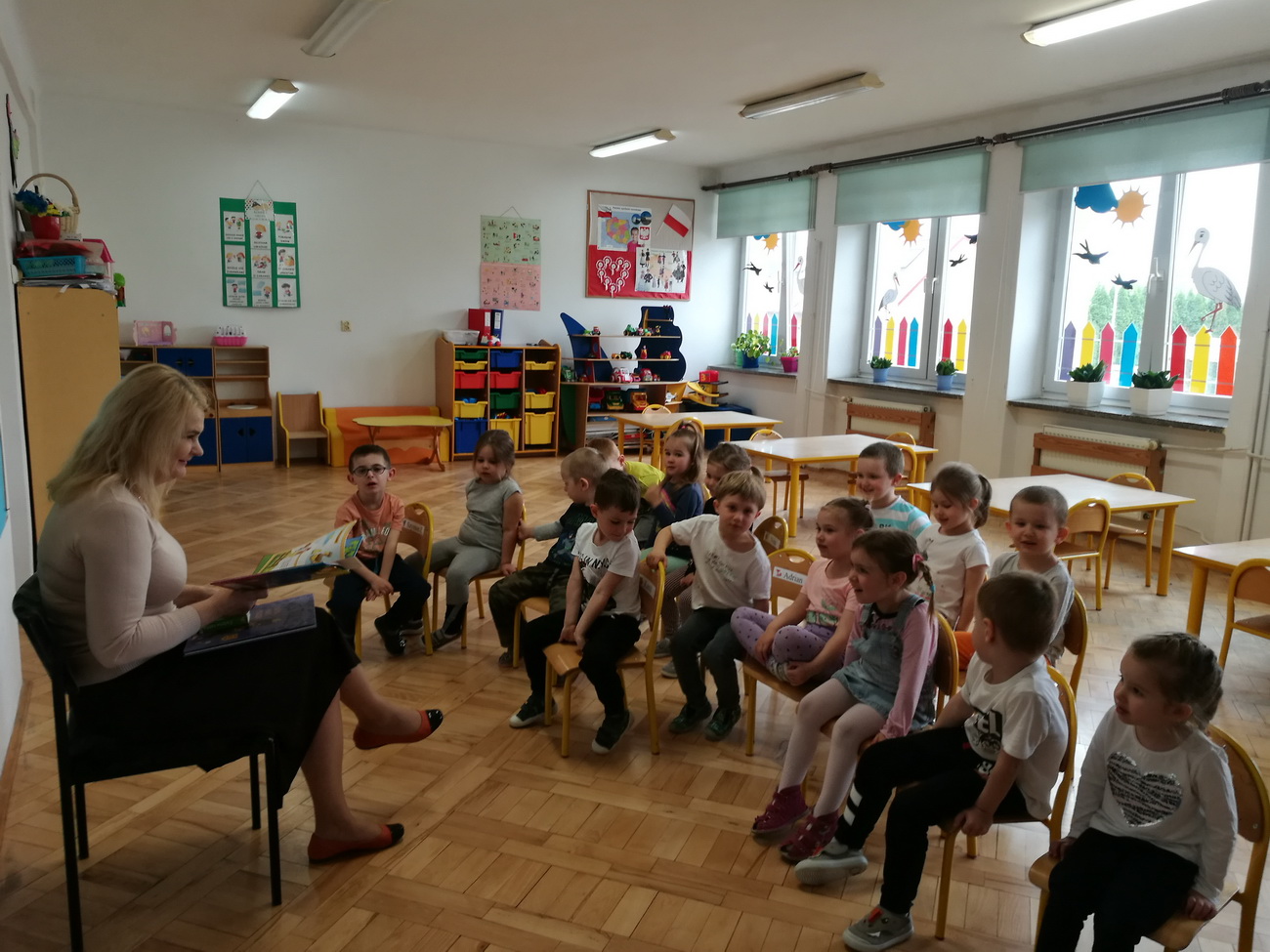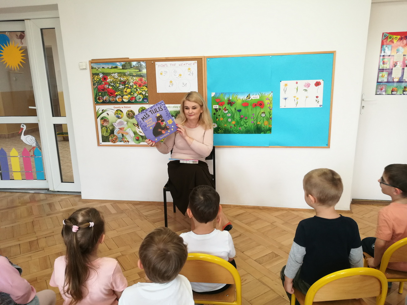 W maju i czerwcu nasze przedszkole kilkukrotnie odwiedziła pani Katarzyna Baran z Miejskiej Biblioteki Publicznej w Rzeszowie. Celem spotkań było rozbudzenie zainteresowań czytelniczych, wzbogacanie słownictwa i pobudzanie wyobraźni przedszkolaków. Dzieci w ciszy i skupieniu słuchały bajek czytanych przez panią bibliotekarkę i chętnie odpowiadały na zadawane im pytania. Pani Katarzyna zwracała uwagę na poznawcze walory książek, sytuacje humorystyczne i kolorowe ilustracje.