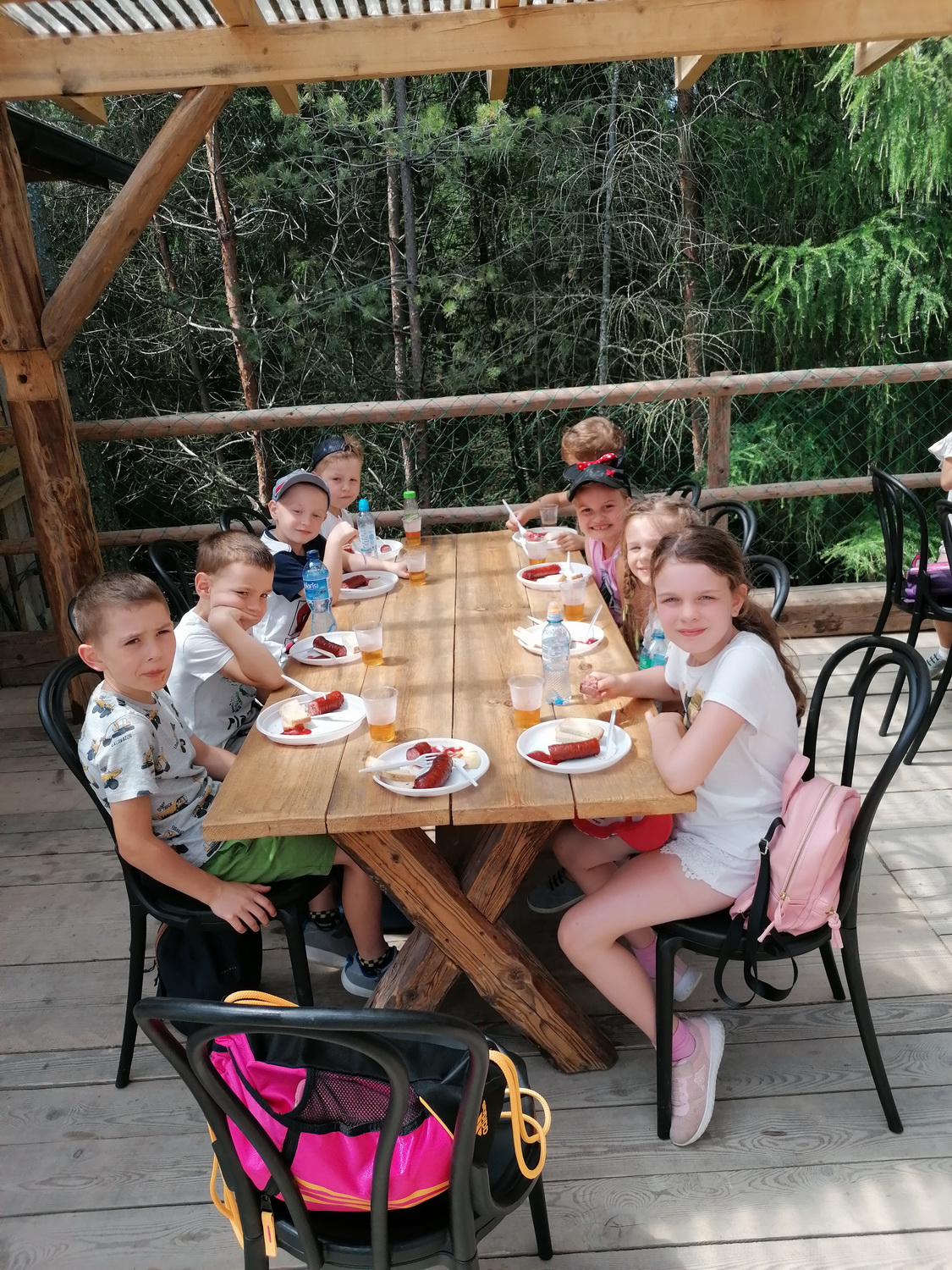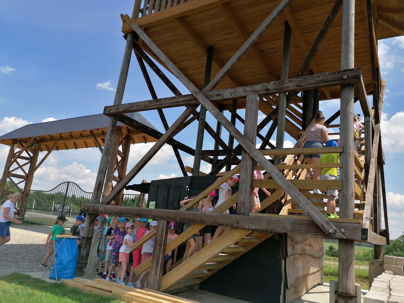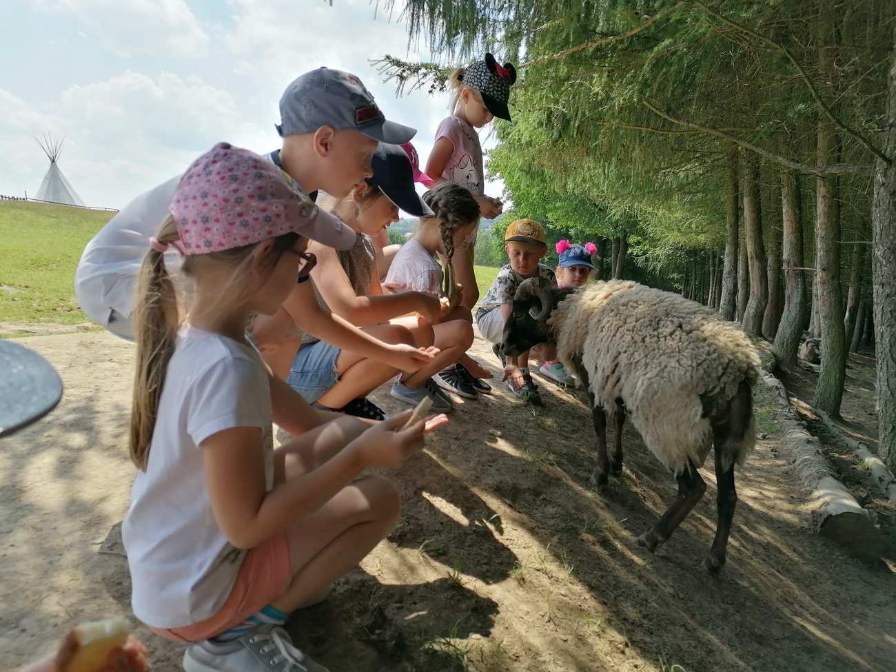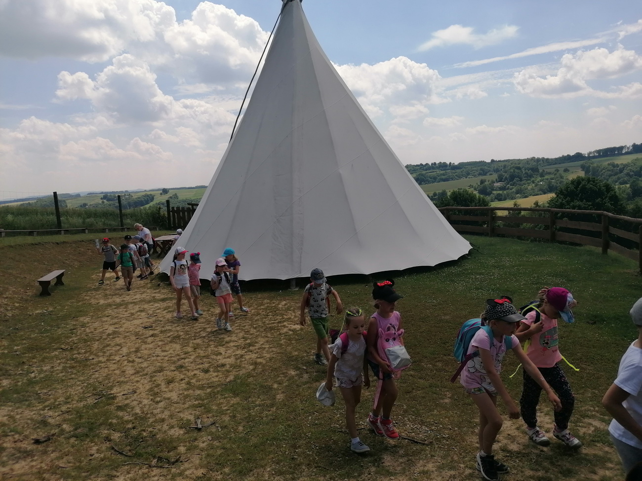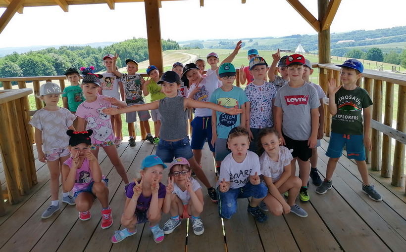 Nie mogło zabraknąć też zabawy na świeżym powietrzu . Dzieci mogły spróbować swoich sił przechodząc trasę parku linowego, który miał różne poziomy trudności. Przedszkolaki podziwiały widoki wchodząc na wieżę widokową. By mieć siłę na pozostałe atrakcje zjadły kiełbaskę z grilla i odpoczywały w altanie. Na zakończenie wycieczki dzieci mogły wejść do indiańskiego namiotu tipi i poczuć się przez chwilę jak Indianie.