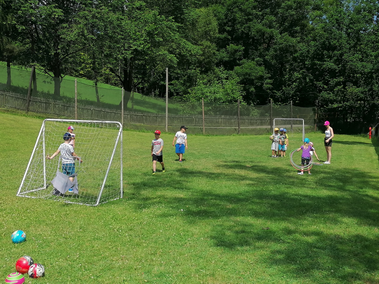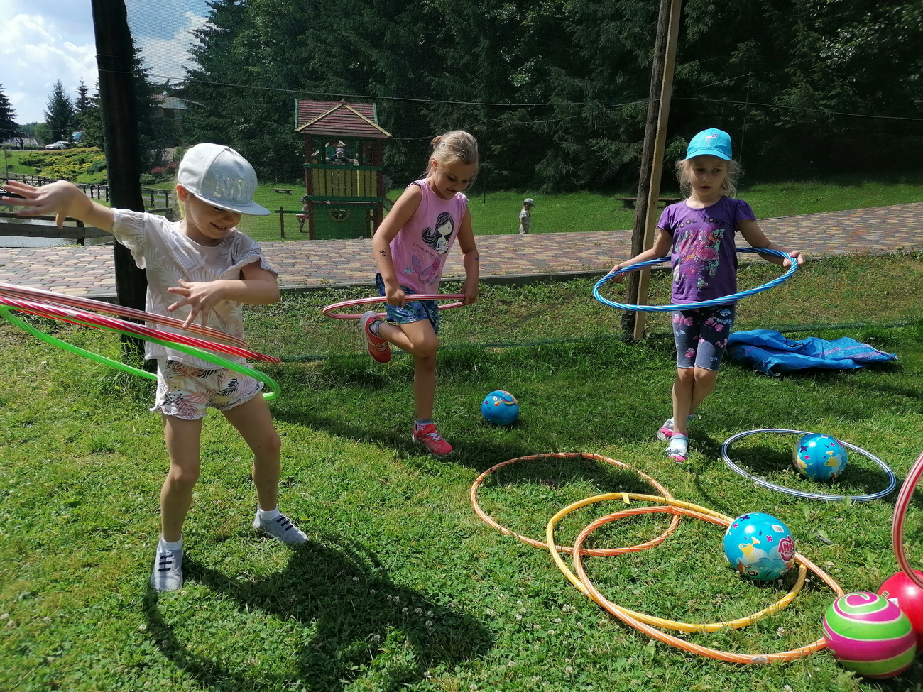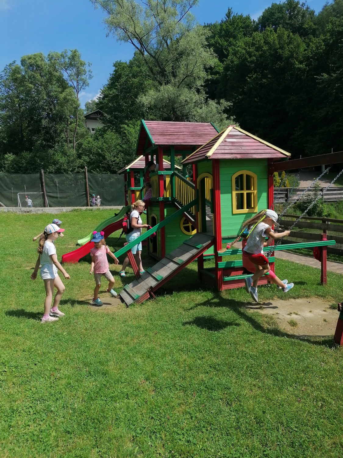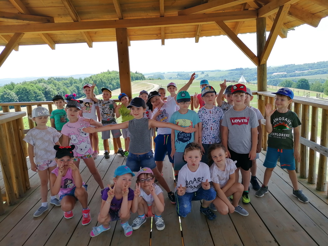 Nie mogło zabraknąć też zabawy na świeżym powietrzu . Dzieci mogły spróbować swoich sił przechodząc trasę parku linowego, który miał różne poziomy trudności. Przedszkolaki podziwiały widoki wchodząc na wieżę widokową. By mieć siłę na pozostałe atrakcje zjadły kiełbaskę z grilla i odpoczywały w altanie. Na zakończenie wycieczki dzieci mogły wejść do indiańskiego namiotu tipi i poczuć się przez chwilę jak Indianie.