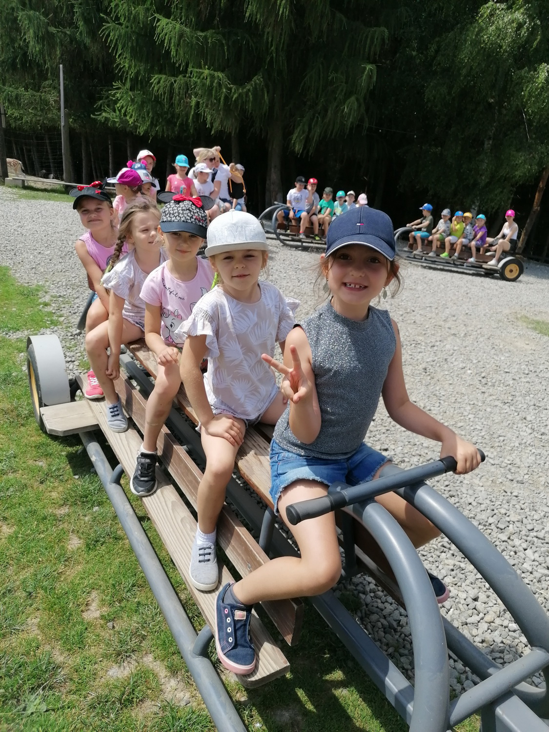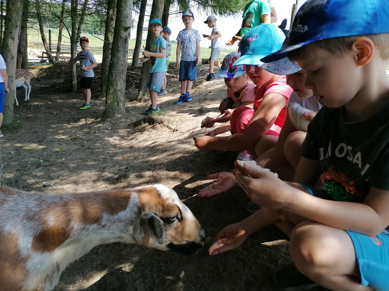 28 czerwca na zakończenie roku szkolnego grupa VI (Żabki) pojechała na wycieczkę do Pstrągowej Ranczo. Pogoda była piękna. Przedszkolakom przez cały pobyt towarzyszył dobry humor i uśmiech na twarzy. Na miejscu czekało na nich wiele atrakcji: plac zabaw z huśtawkami, zjeżdżalnie, boisko sportowe i dużo miejsca do biegania. Dzieci poznały zwierzęta zamieszkujące ranczo (lamy, kozy, daniele, kucyki oraz rybki). Opiekunowie zwierząt rozdawali smakołyki, które dzieci mogły dać zwierzątkom. Najbardziej towarzyskie okazały się lamy i kozy, podchodziły do dzieci i jadły z otwartej dłoni.