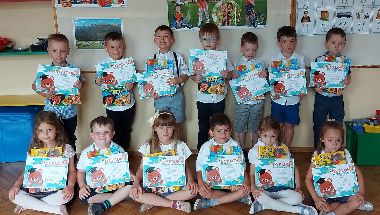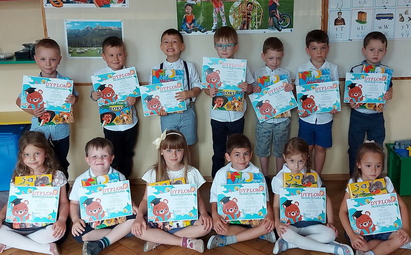 25 czerwca odbyło się zakończenie roku przedszkolnego. Tego dnia dzieci przyszły do przedszkola ładnie ubrane i choć nie mogliśmy zaprosić rodziców (nie było też występów), wychowawcy postarali się aby ten dzień był wyjątkowy. Każdy przedszkolak otrzymał pamiątkowy dyplom ukończenia grupy przedszkolnej i upominek w postaci książki.