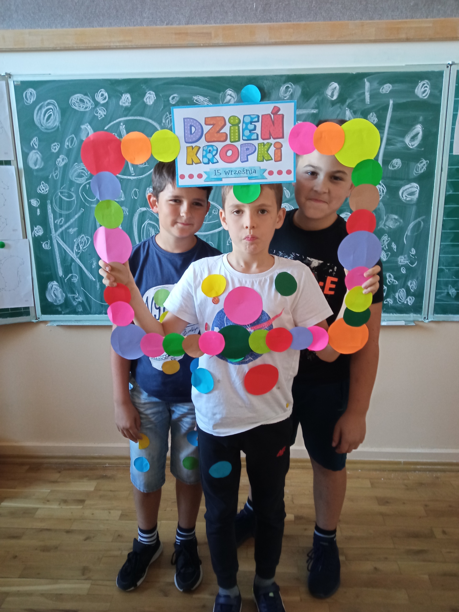 15 września uczniowie najmłodszych klas włączyli się w obchody Międzynarodowego Dnia Kropki. Zakorzenił się on w naszej historii już na dobre, gdyż pod tak banalnie brzmiącą nazwą kryje się piękny przekaz. To wspaniałe święto celebrujące kreatywność i rozwijanie ukrytego potencjału, budowanie wiary we własne możliwości, które to ma zwłaszcza nam – nauczycielom, przypominać, że warto doceniać, a nie oceniać. To właśnie poczucie własnej wartości jest fundamentem, na którym młody człowiek buduje swoją przyszłość.