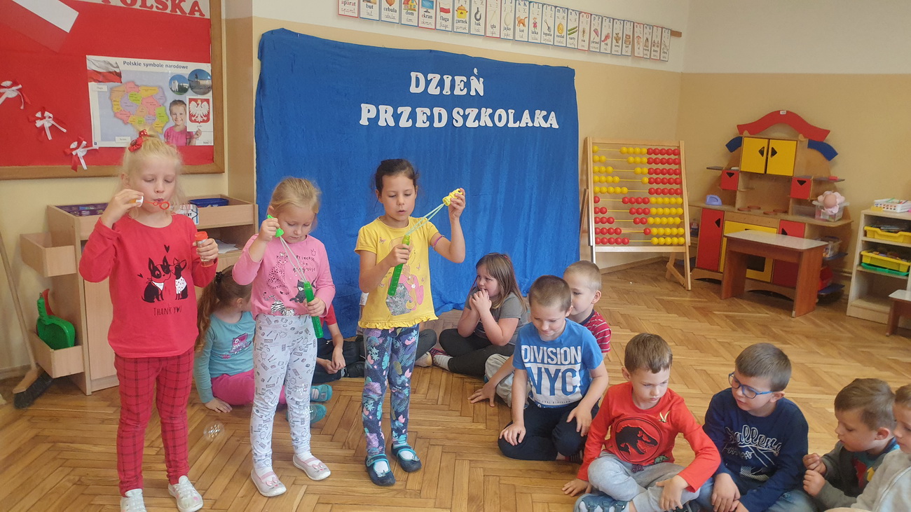 Każdego roku w przedszkolnym kalendarzu wrzesień jest szczególnym miesiącem, bowiem 20. obchodzimy najważniejsze ze wszystkich przedszkolnych świąt: Ogólnopolski Dzień Przedszkolaka. W tym roku wszystkie grupy przedszkolne włączyły się w akcję pod patronatem „Bliżej Przedszkola” – „Dzień przedszkolaka to ważne święto, uczcijmy je razem tańcem i piosenką”. O godzinie 10.00 nasi wychowankowie, w łączności z przedszkolakami z innych przedszkoli w Polsce, odśpiewali piosenkę pt. “Życie przedszkolaka”. Tego dnia atmosfera w naszej placówce była wyjątkowa. Wszyscy poczuliśmy ogromną radość z bycia razem, było kolorowo i bajecznie.