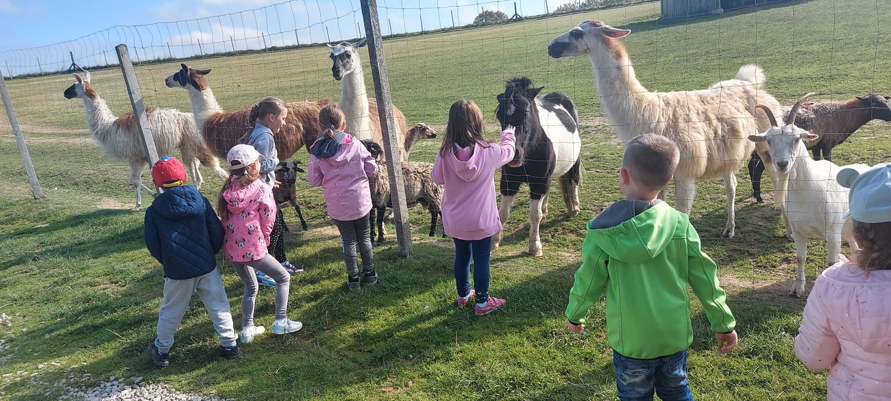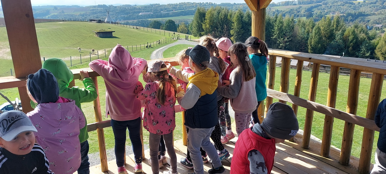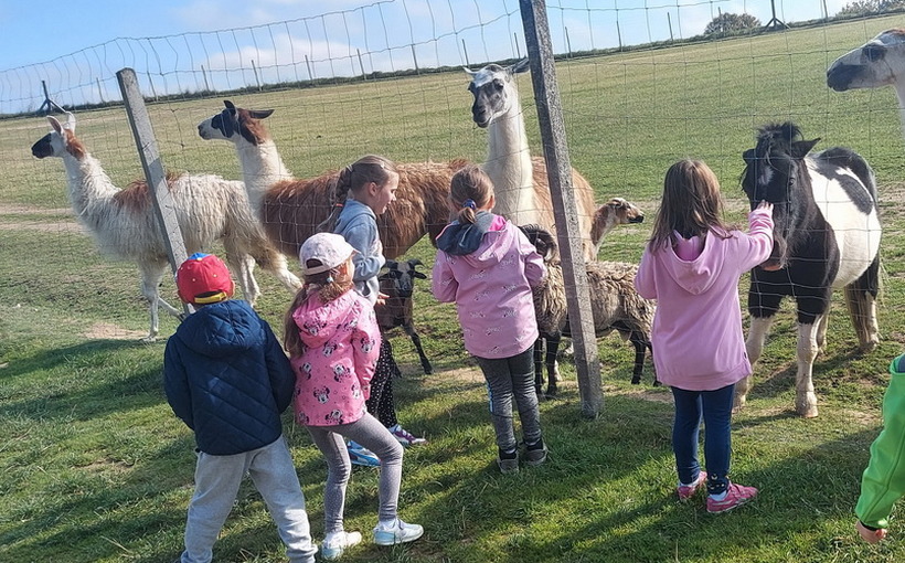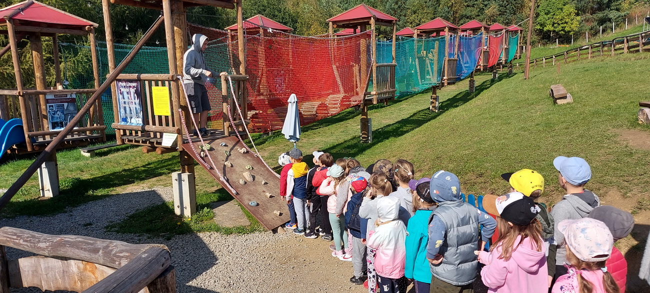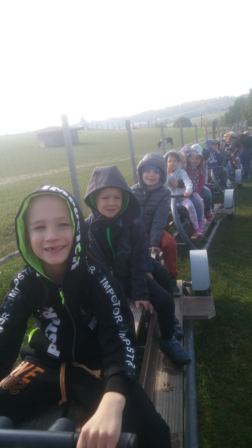 28 września 2021 r. grupy VI i VII wybrały się autokarem do zagrody ekologicznej Ranczo w Pstrągowej. Sama jazda autokarem była dla dzieci nie lada gratką, a to był dopiero początek, ponieważ tam czekała masa atrakcji. Przedszkolaki zwiedzały teren zagrody, podziwiając piękne widoki. Na leśnej polanie, gdzie znajdowało się mini ZOO w stylu safari, miały niepowtarzalną okazję niemalże dotknąć zwierząt. Oswojone lamy, daniele, sarny, kucyki dosłownie jadły dzieciom z ręki. Wielką niespodzianką była także przejażdżka wozem przez wieś Pstrągowa.