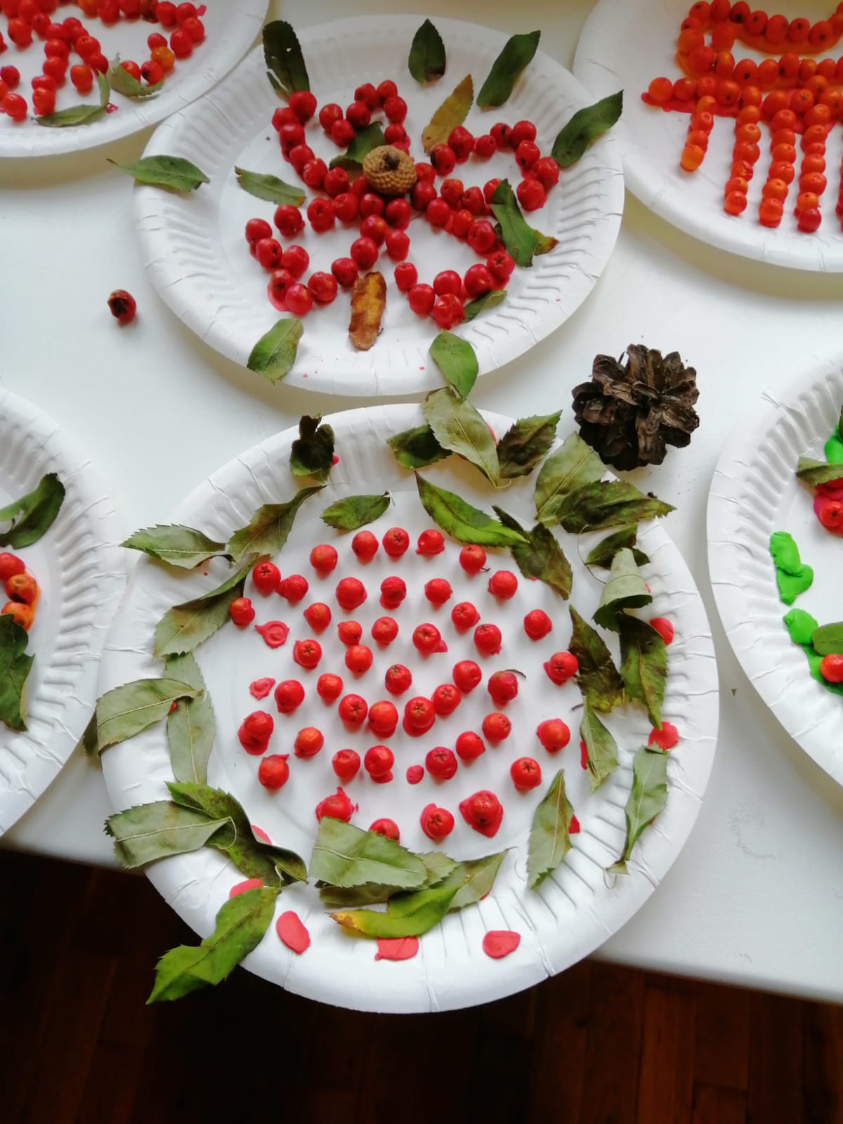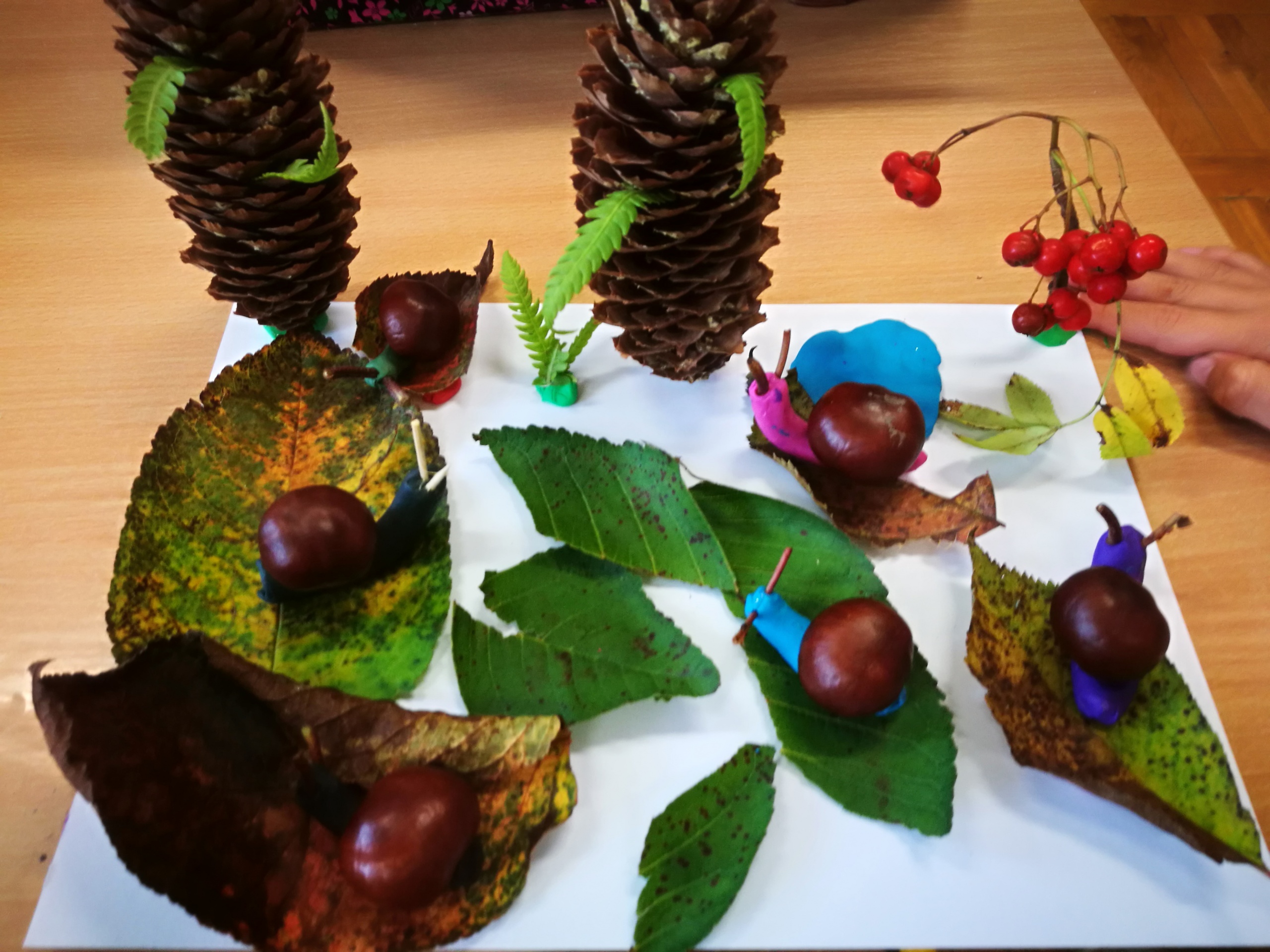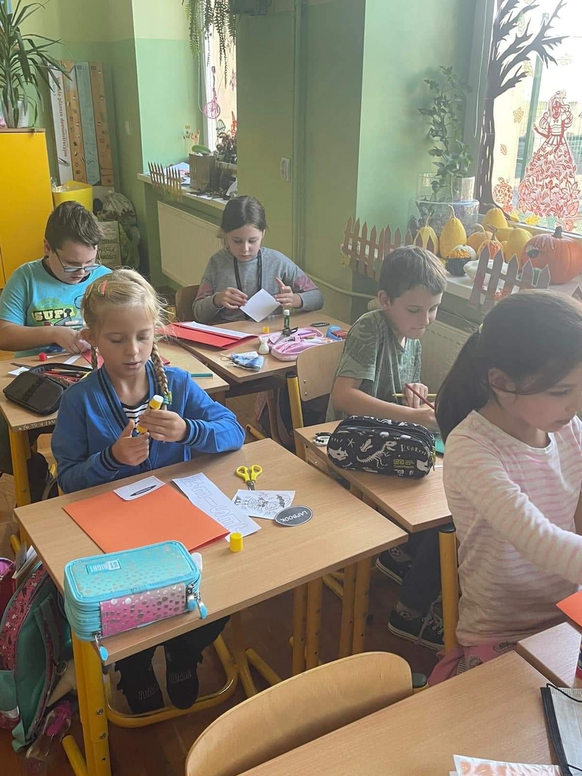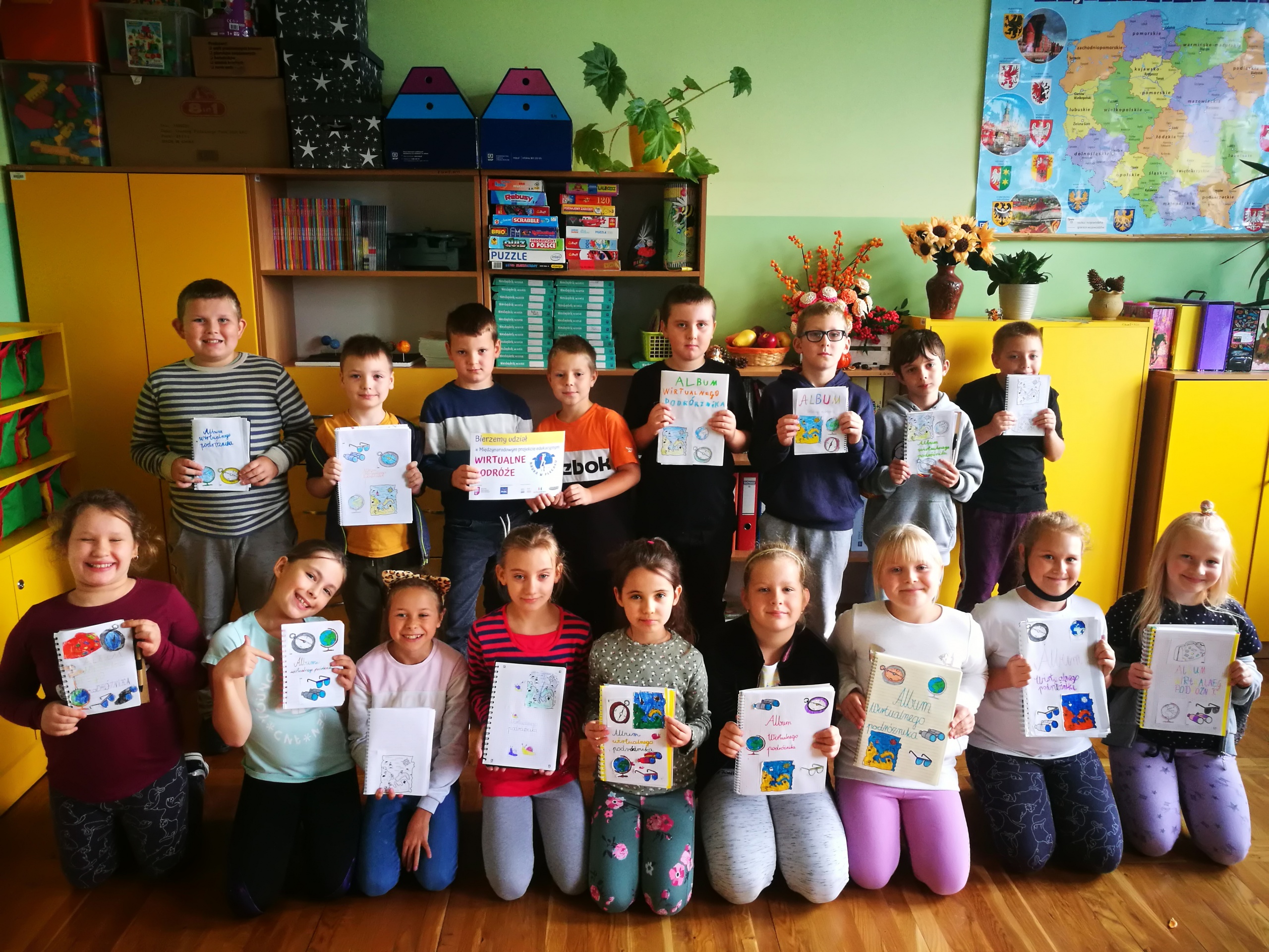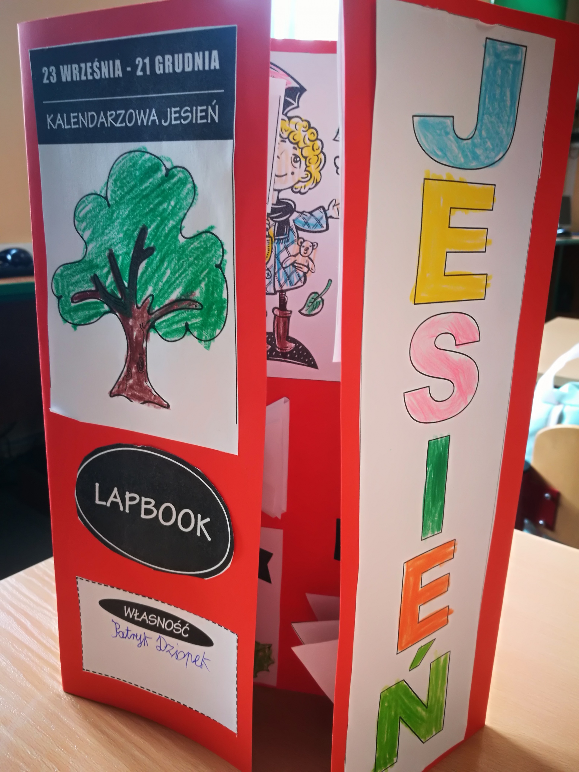 Uczniowie wykonali wspaniałe prace plastyczne, które stały się ozdobą naszych klas. Na podstawie poznanych wiadomości dzieci z klasy drugiej i trzeciej wykonały również jesienne lapbooki, w których omówiły budowę liści, ich klasyfikację; zaprezentowały ptaki, które odlatują z Polski, przylatują bądź zostają, wyjaśniły, dlaczego grzyby pojawiają się jesienią w lesie oraz omówiły ich podział na trujące i jadalne. Dzięki lapbookom dowiedzieliśmy się, czym jest hibernacja/sen zimowy, które zwierzęta trzeba dokarmiać zimą i dlaczego; dlaczego liście zmieniają kolor i spadają? Jesienny dzień zakończył się wykonaniem wystawki z przyniesionych darów jesieni.