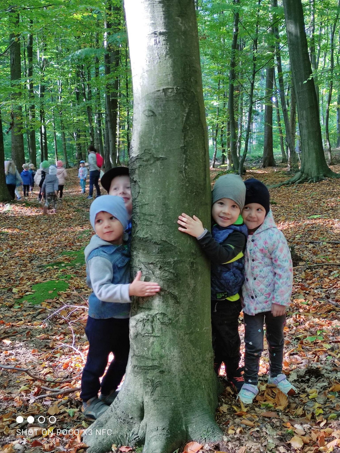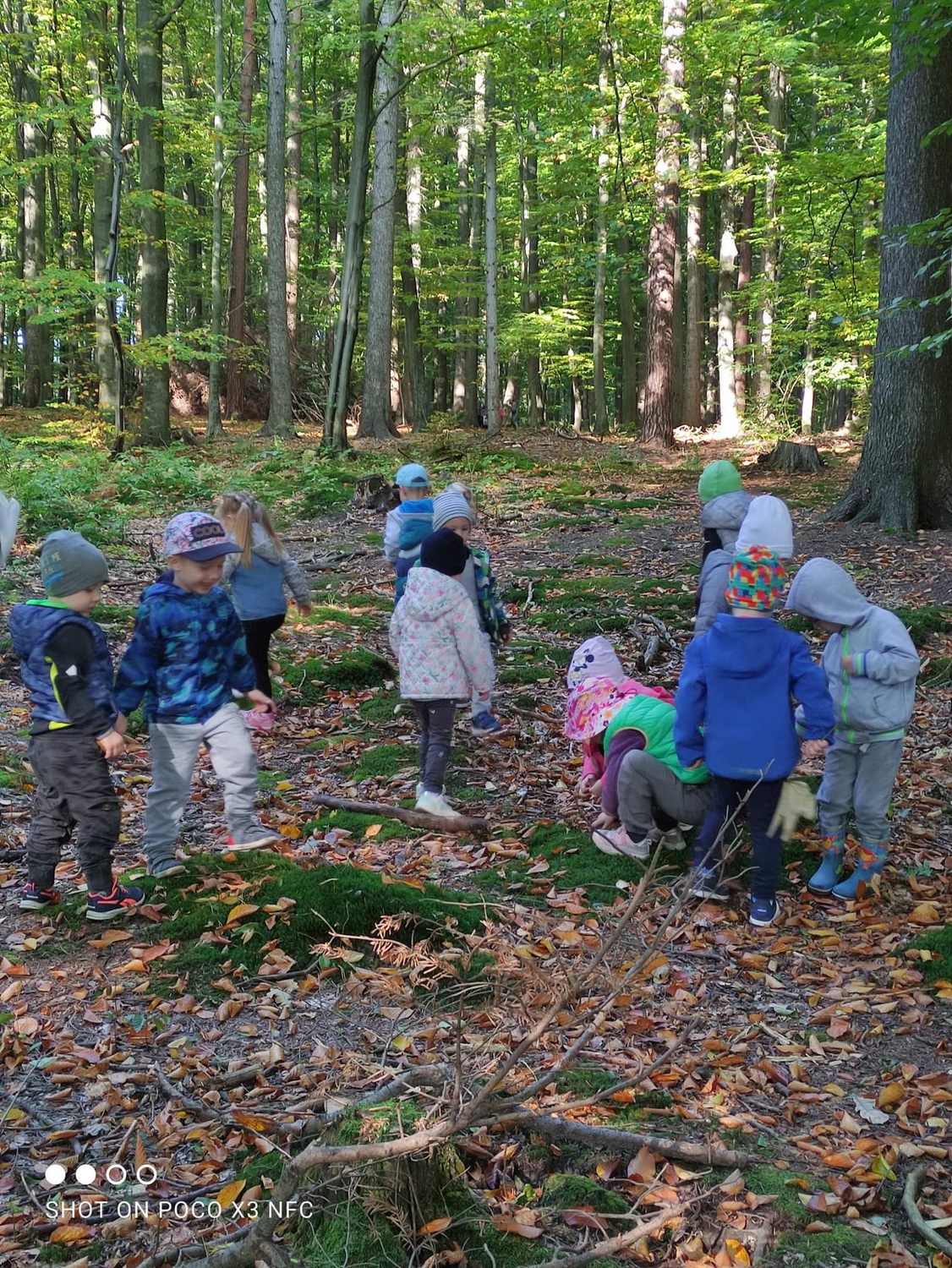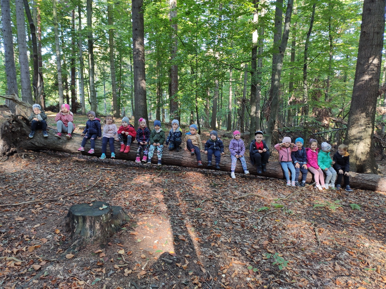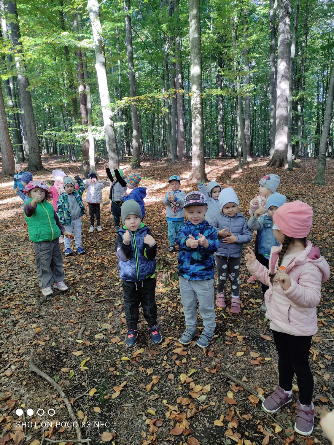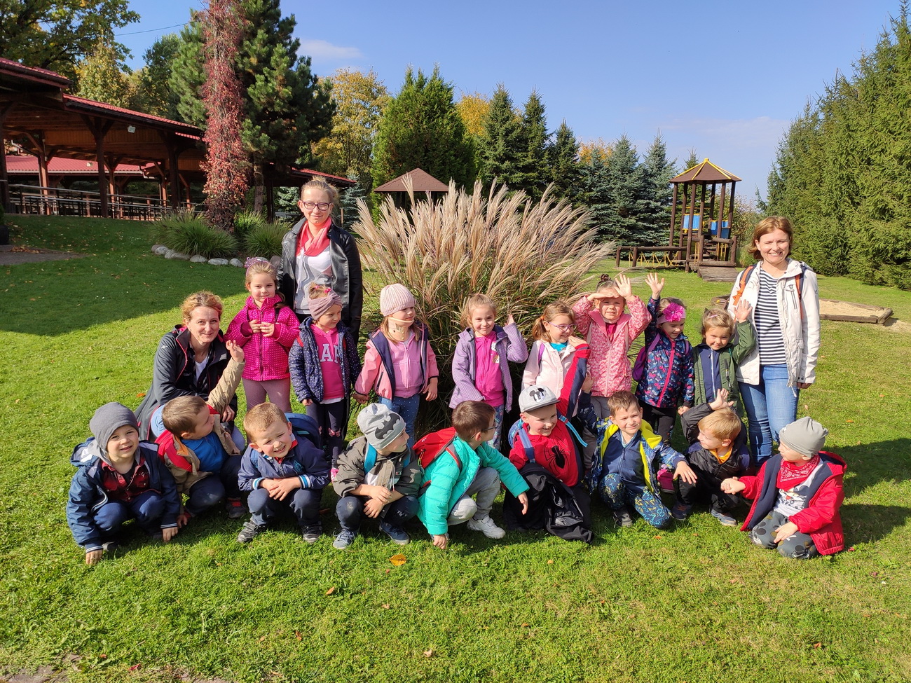 Wykorzystując piękną pogodę 5 października dzieci z grupy Biedronki i Tygryski wybrały się na wycieczkę do lasu w Mogielnicy i Domu Wypoczynkowego “Kobakówka”. Głównym celem wizyty w lesie było przybliżenie przedszkolakom środowiska przyrodniczego, jakim jest las oraz zapoznanie dzieci z roślinnością i zwierzyną tam występującą. Dzieci poznawały przyrodę patrząc, słuchając i dotykając. Obserwowały las, który kryje w sobie wiele ciekawych tajemnic. Poznały różnorodność szaty roślinnej lasu: drzewa iglaste, liściaste, krzewy, mchy i runo leśne. Dzieci nauczyły się prawidłowego zachowania w lesie, by nie ucierpiała leśna przyroda. Po spacerze leśnymi dróżkami przyszedł czas na wspólne zabawy w Ośrodku “Kobakówka” i posiłek.