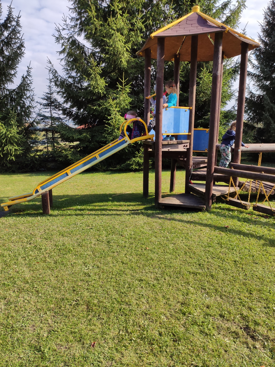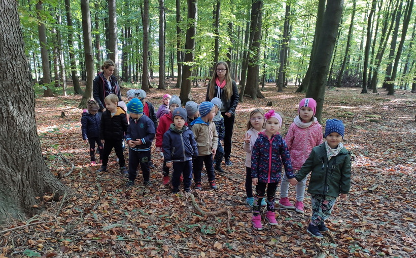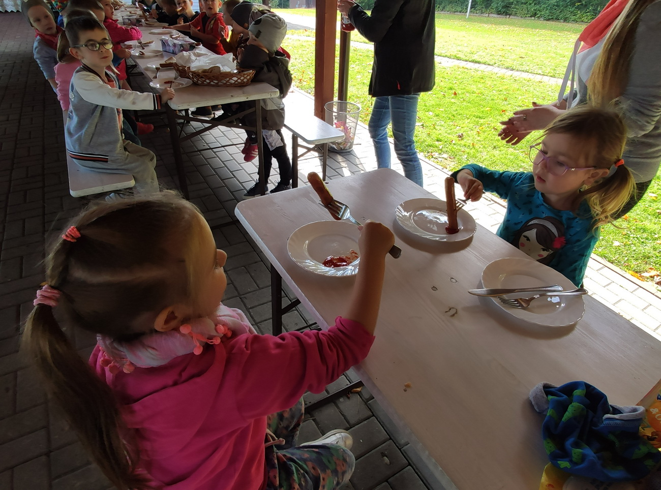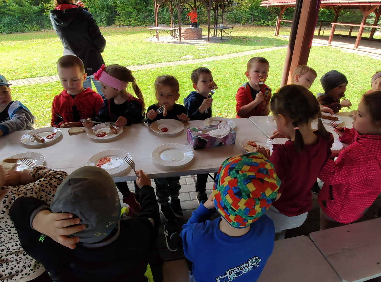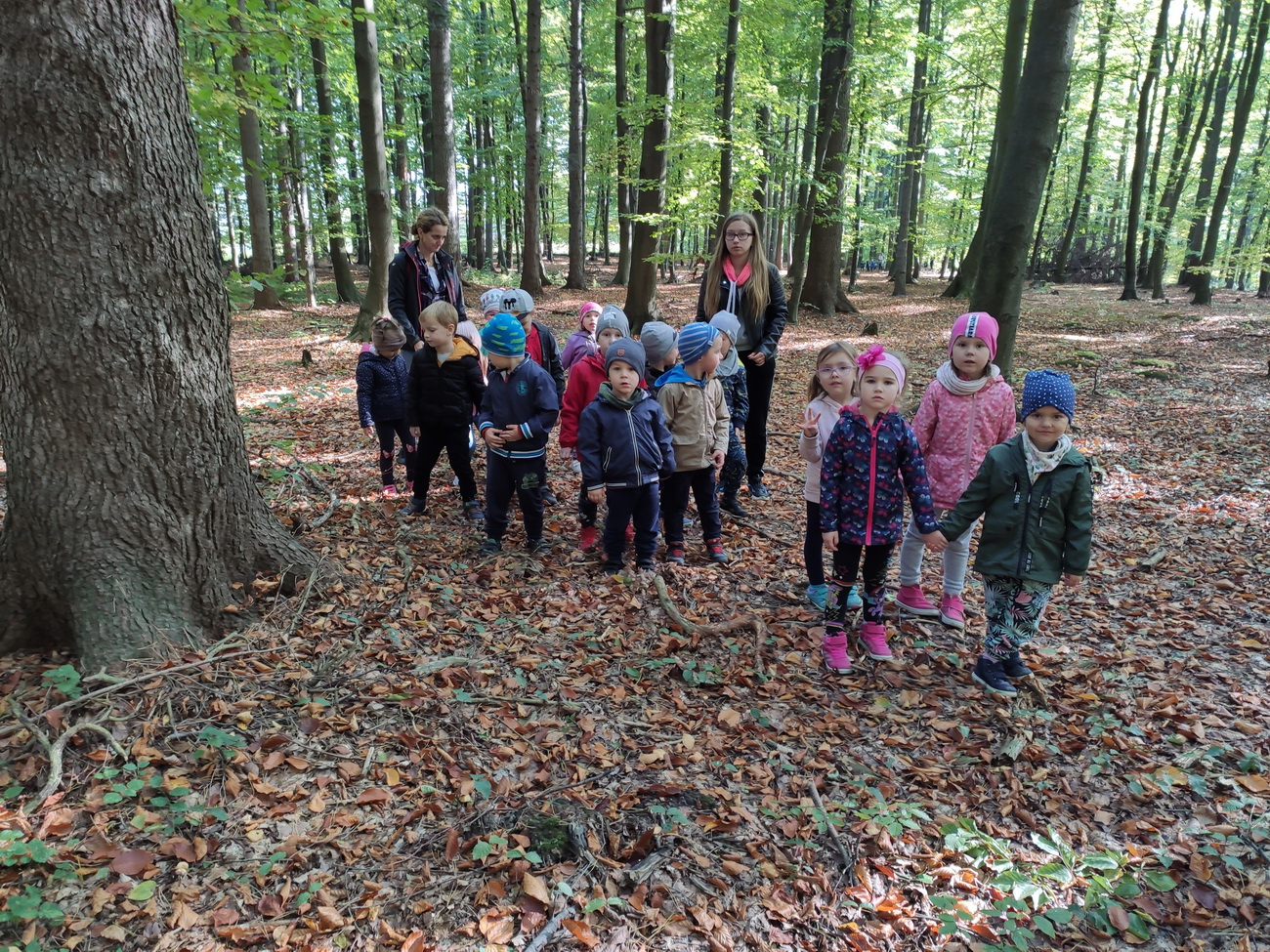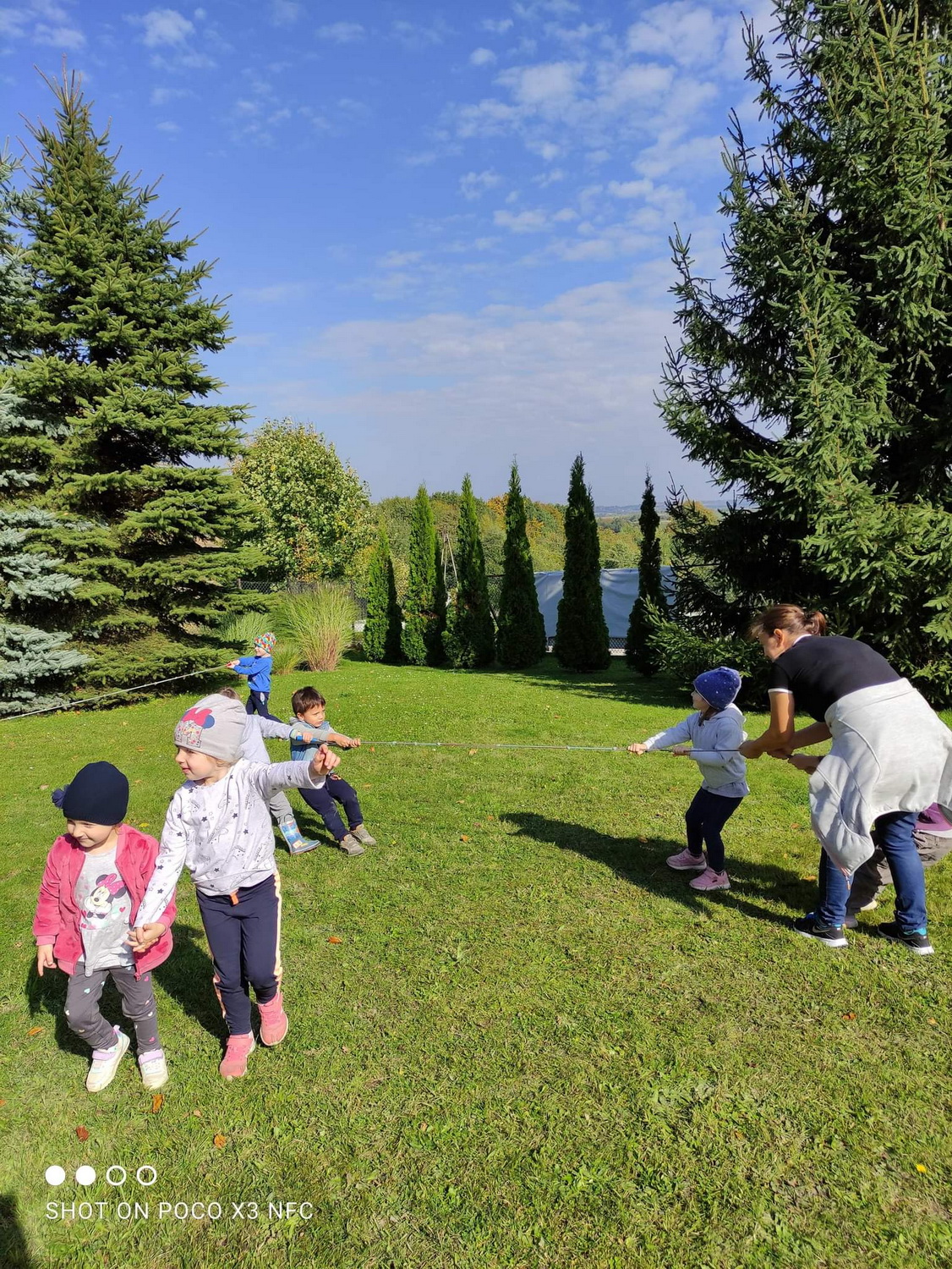 Wykorzystując piękną pogodę 5 października dzieci z grupy Biedronki i Tygryski wybrały się na wycieczkę do lasu w Mogielnicy i Domu Wypoczynkowego “Kobakówka”. Głównym celem wizyty w lesie było przybliżenie przedszkolakom środowiska przyrodniczego, jakim jest las oraz zapoznanie dzieci z roślinnością i zwierzyną tam występującą. Dzieci poznawały przyrodę patrząc, słuchając i dotykając. Obserwowały las, który kryje w sobie wiele ciekawych tajemnic. Poznały różnorodność szaty roślinnej lasu: drzewa iglaste, liściaste, krzewy, mchy i runo leśne. Dzieci nauczyły się prawidłowego zachowania w lesie, by nie ucierpiała leśna przyroda. Po spacerze leśnymi dróżkami przyszedł czas na wspólne zabawy w Ośrodku “Kobakówka” i posiłek.