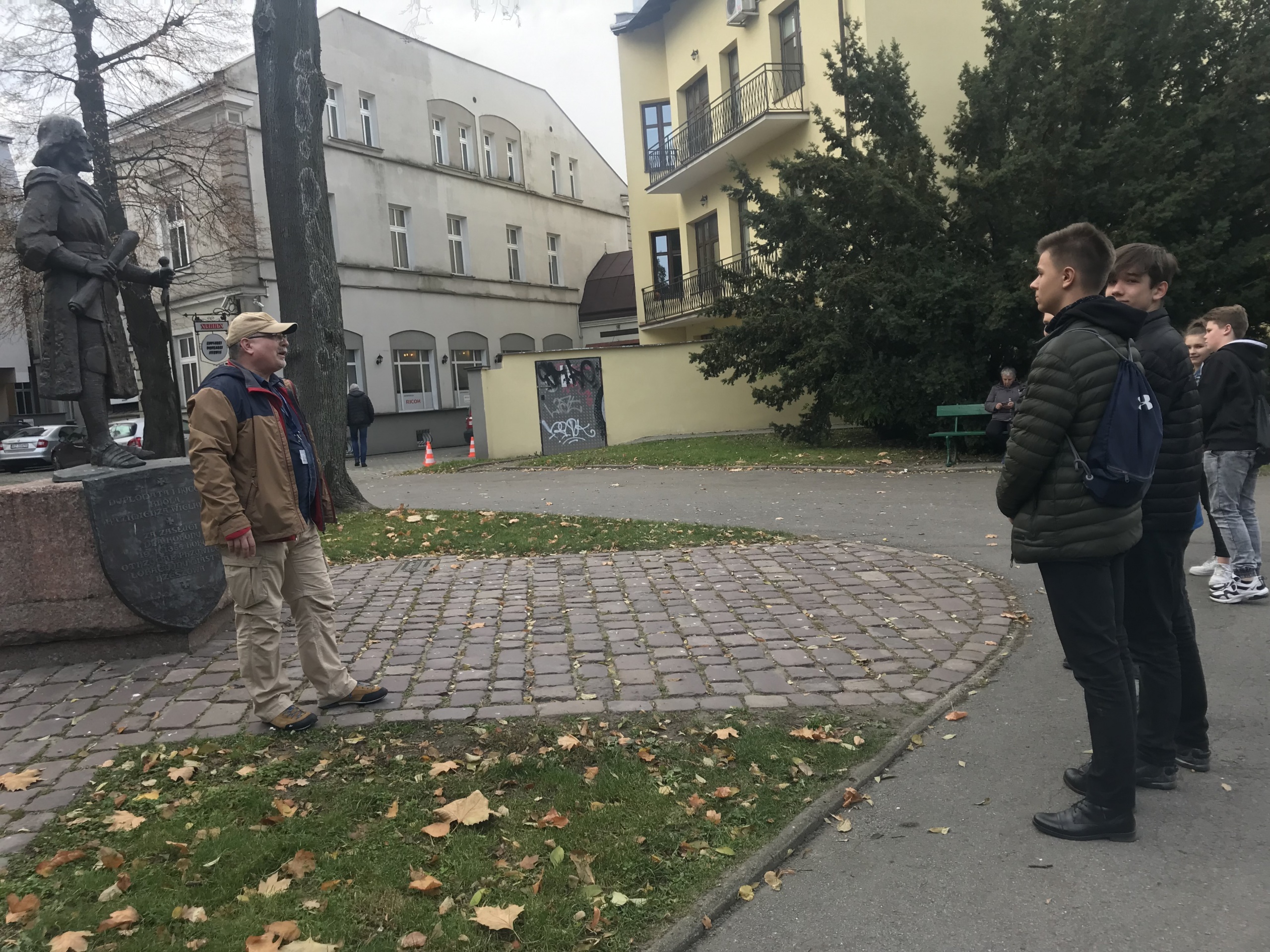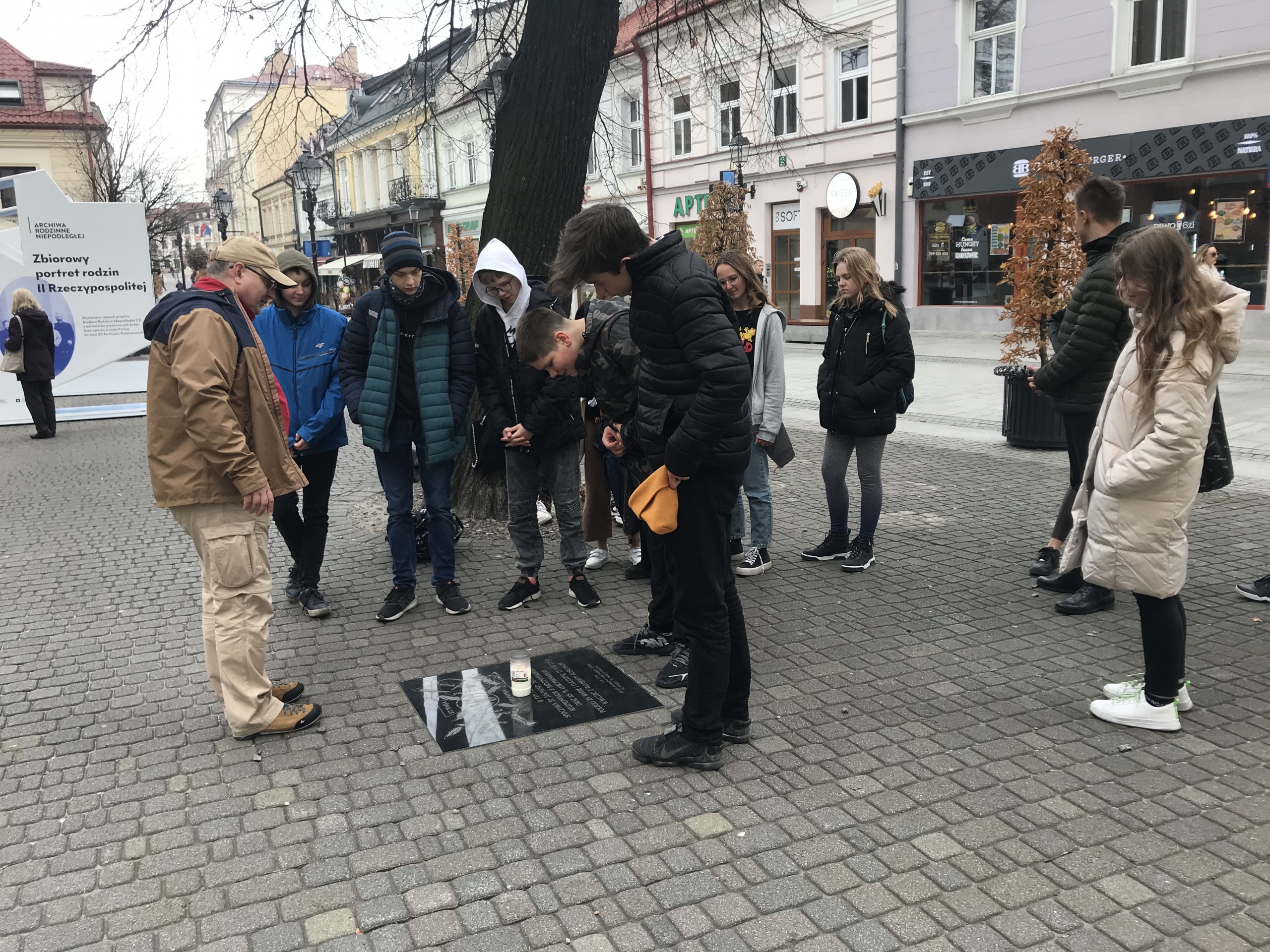 Szczególnie ważnym momentem wycieczki, będącym połączeniem różnych form poznawania historii regionu, była opowieść pana Jacka Magdonia, pracownika Instytutu Pamięci Narodowej, który w niezwykle barwny, interesujący sposób opowiedział nam o losach Polaków uwikłanych w ważne wydarzenia historyczne Polski. Uczniowski ,,Szlak Niepodległej‘’ wywołał liczne refleksje i wspomnienia. Był także wyrazistym włączeniem się w akcję “Szkoła Pamięta”.