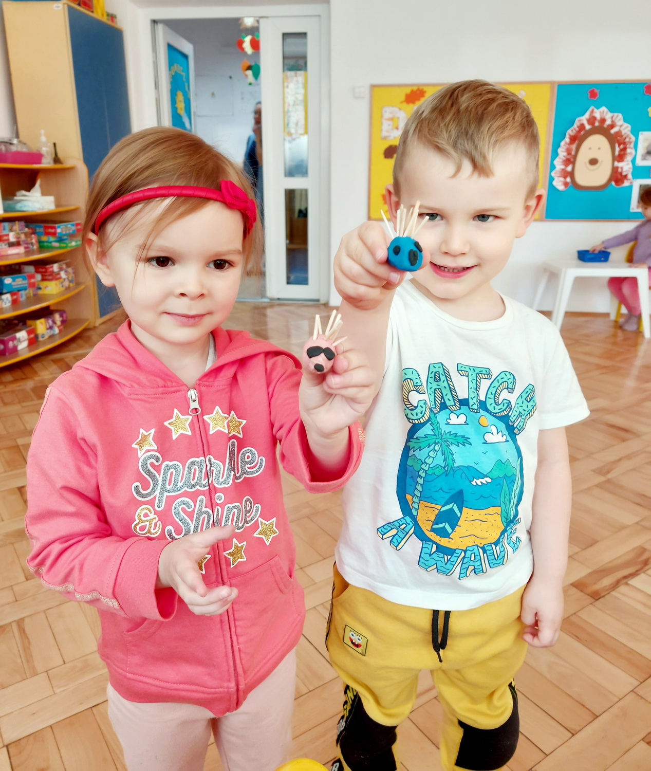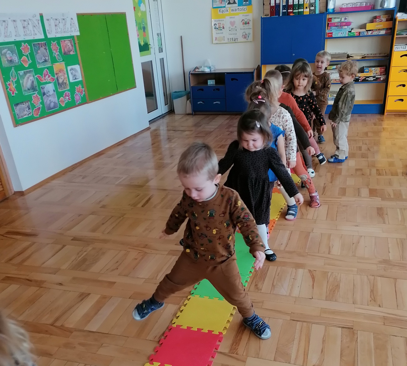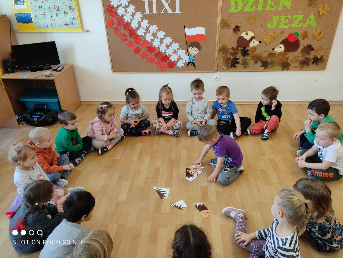 10 listopada to Międzynarodowy Dzień Jeża, święto kłujących ssaków. Towarzyszą nam one od najmłodszych lat w bajkach, wierszach, książeczkach, dlatego nasze przedszkolaki z grup: Żabki, Słoneczka, Biedronki i Tygryski włączyły się w obchody tego nietypowego święta. W tym dniu dzieci miały okazję poszerzyć oraz utrwalić swoją wiedzę dotyczącą życia jeży w ich naturalnym środowisku. Przedszkolaki oglądały obrazki przedstawiające jeże, wesoło bawiły się przy muzyce i piosenkach o jeżach, pokonały jeżowy tor przeszkód. Nie zabrakło również zabaw matematycznych. Po intensywnej zabawie przedszkolaki, z pomocą swoich pań, wykonały prace plastyczne. Dzień Jeża spędziliśmy bardzo miło i sympatycznie.