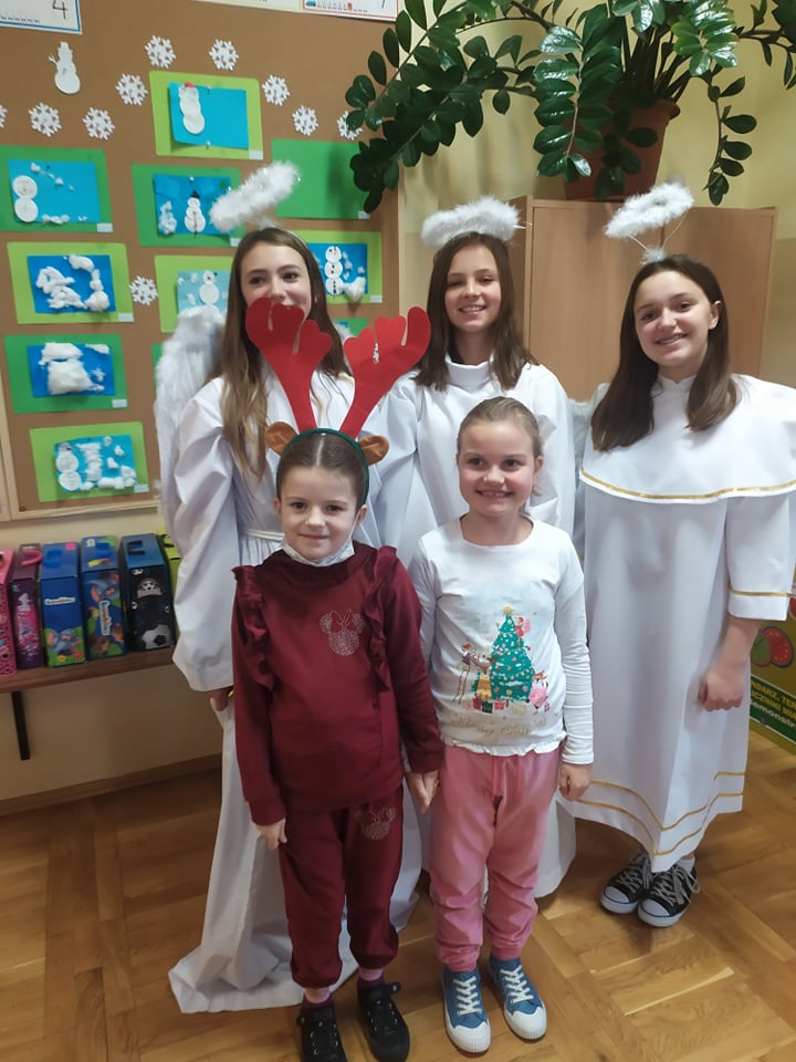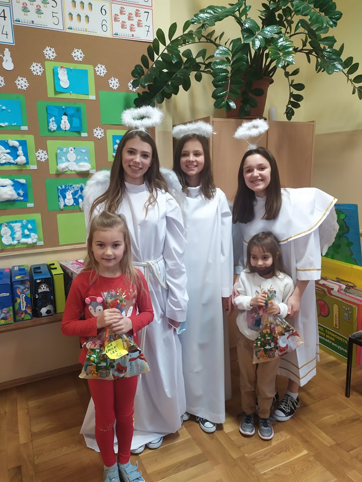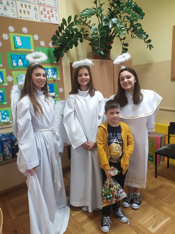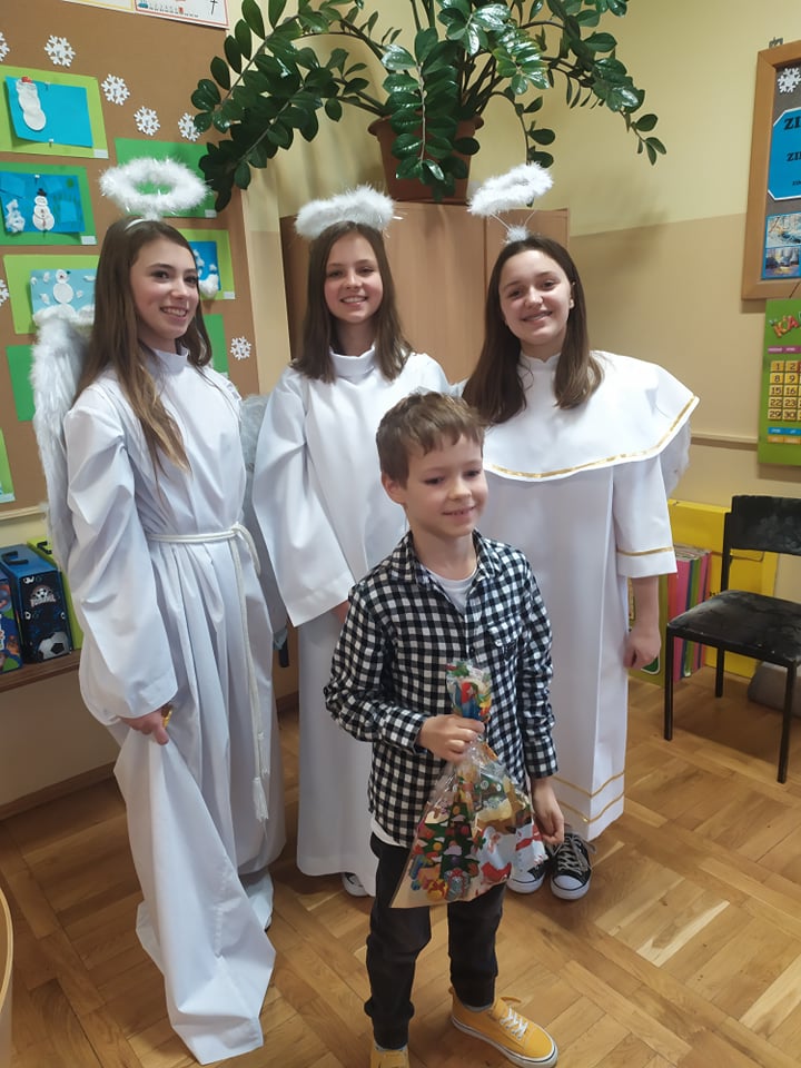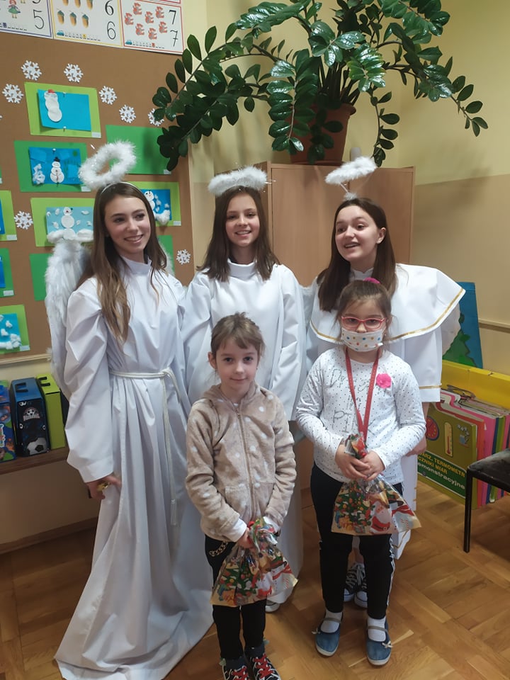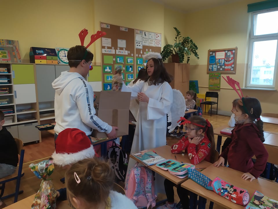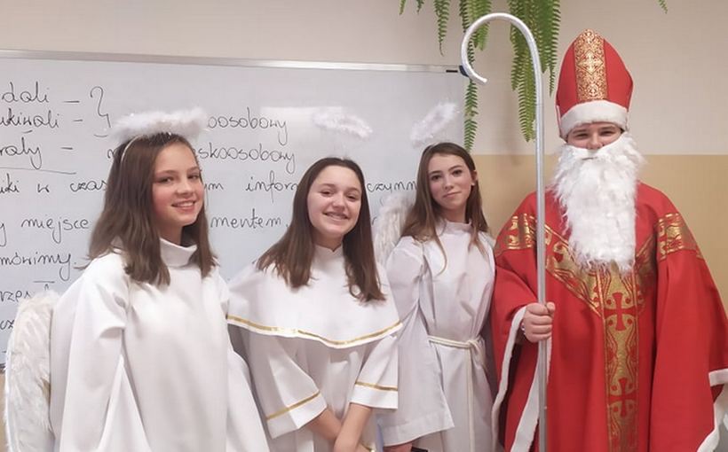 6 grudnia jest dniem wyjątkowym, to wtedy przychodzi ktoś, na kogo wszyscy z niecierpliwością czekają – św. Mikołaj! Ponieważ w naszej szkole są tylko grzeczne dzieci, wszystkie od samego rana z wielkim entuzjazmem nasłuchiwały, czy na korytarzu nie słychać anielskich śpiewów i dzwonków reniferów. Św. Mikołaj wraz z całym orszakiem odwiedził każdą klasę, a w swoim wielkim worze przyniósł najróżniejsze prezenty i słodkości. Uciechom nie było końca! Tym bardziej, że na każdego ucznia w mikołajowej czapce czekał jeszcze jeden prezent – dzień bez pytania. Dzieci solennie obiecały, że będą w nadchodzącym roku bardzo grzeczne, by zasłużyć na ponowną wizytę niezapomnianych gości.