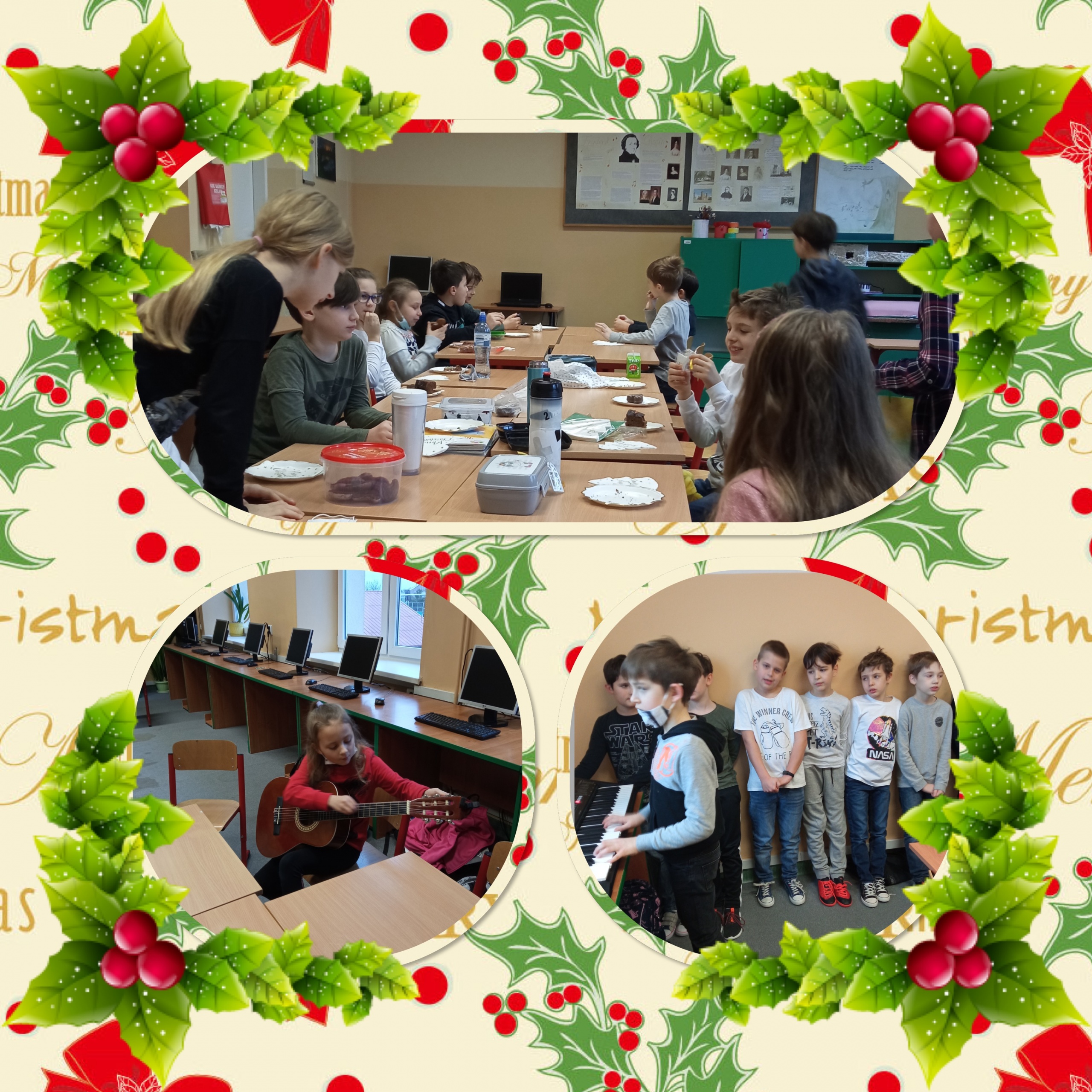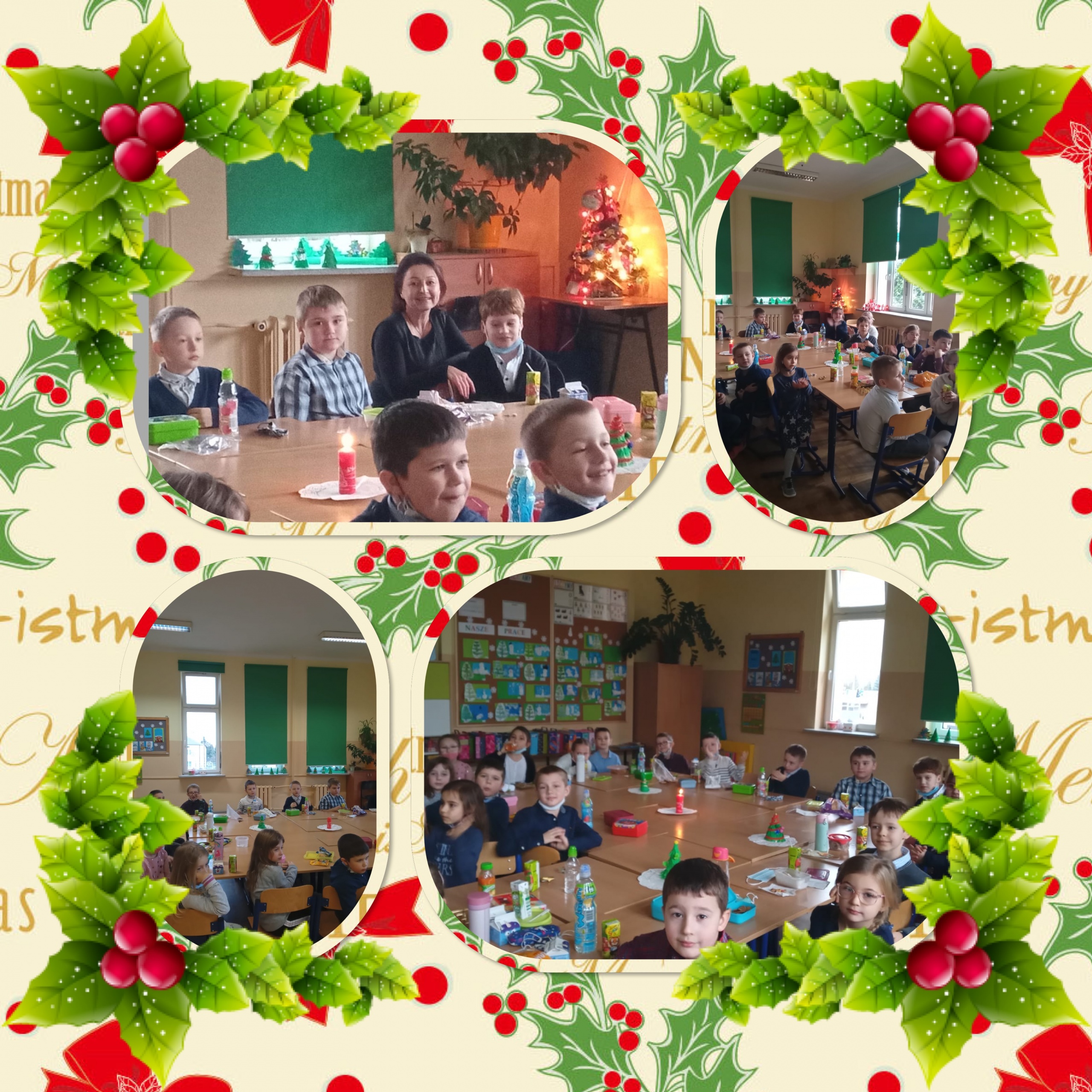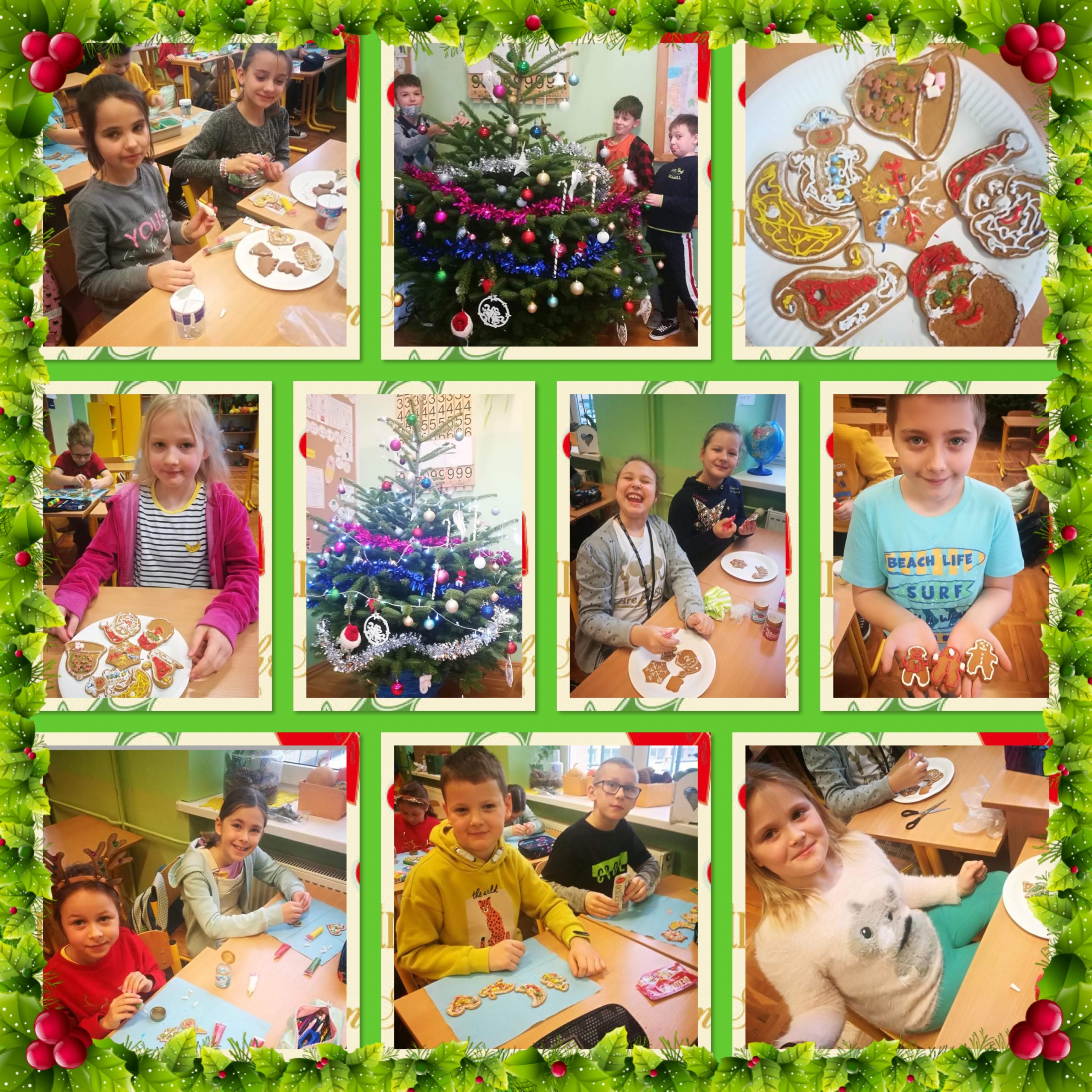 Świąteczny nastrój wkradł się w progi uczniów klas 1-3 już w pierwszych tygodniach grudnia. Przygotowania do tego magicznego czasu sprawiały dzieciom wiele radości. Ważne było zwłaszcza wspólne ubieranie choinki, wykonanie papierowych ozdób czy ozdabianie pierników. Wigilie klasowe, podczas których kultywowane były tradycje bożonarodzeniowe, odbyły się 17 grudnia. Odświętne stroje, życzenia na Boże Narodzenie, wspólne śpiewanie kolęd i pastorałek sprawiły, że panowała iście domowa atmosfera. Serdecznie dziękujemy za możliwość wysłuchania audycji świątecznej przygotowanej przez Samorząd Uczniowski oraz Szkolne Koło Caritas.
