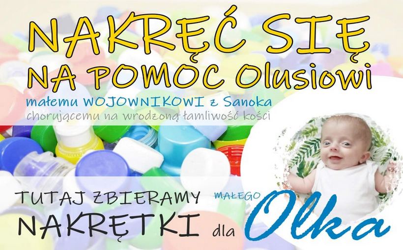 Aby pomóc małemu Olkowi z Sanoka, Rada Wolontariatu Samorządu Uczniowskiego organizuje zbiórkę plastikowych nakrętek pod hasłem „Nakręć się na pomoc Olusiowi”. Zachęcamy wszystkich uczniów szkoły podstawowej, dzieci z przedszkola oraz ich rodziców do włączenia się w tę akcję. Nakrętki (tylko plastikowe) można przynosić do 31 maja opiekunom Samorządu Uczniowskiego (p. Marzenie Grzebyk, p. Radosławowi Sztabie) lub wychowawcom grup przedszkolnych. Najlepiej zapakować je do mocnych worków (np. na śmieci) oraz podpisać imieniem i nazwiskiem ucznia/dziecka, a także nazwą klasy/grupy.
