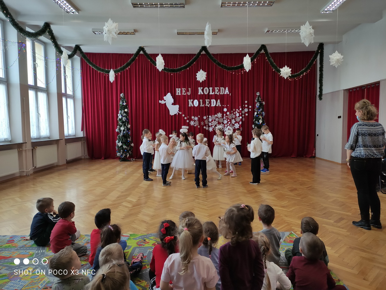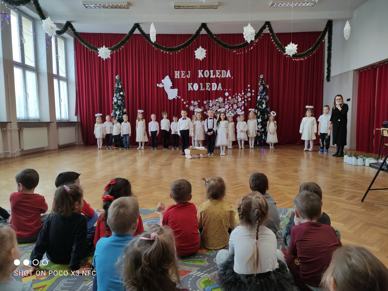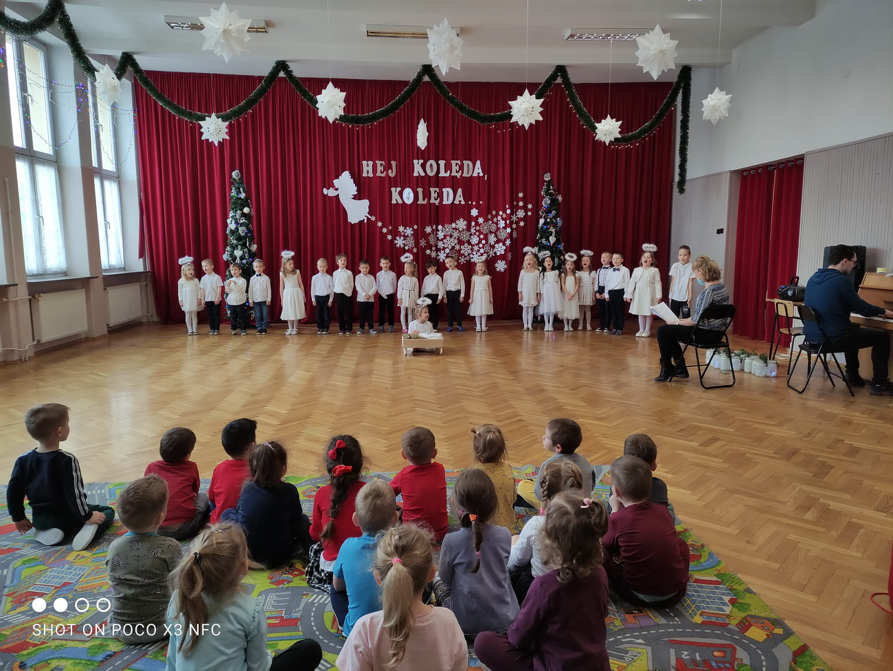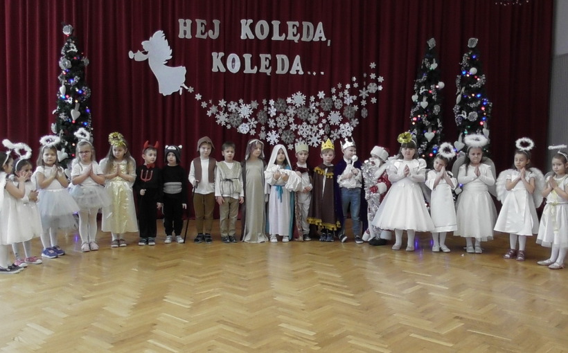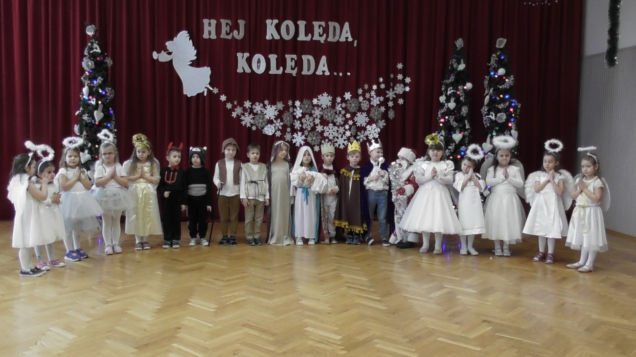 Choć połowa stycznia już za nami, to czas kolędowania jeszcze nie minął. Przedszkolaki z grup V (Smerfy) i VI (Pszczółki) przygotowały piękne programy artystyczne, w których zaprezentowały kolędy i pastorałki oraz wiersze związane z Bożym Narodzeniem. W świątecznej, magicznej scenerii pięknie prezentowały się dzieci, które wystąpiły dla swoich młodszych kolegów i koleżanek. Pełne miłości wiersze, cudowne kolędy i tańce przeniosły nas w magiczny czas świąt.