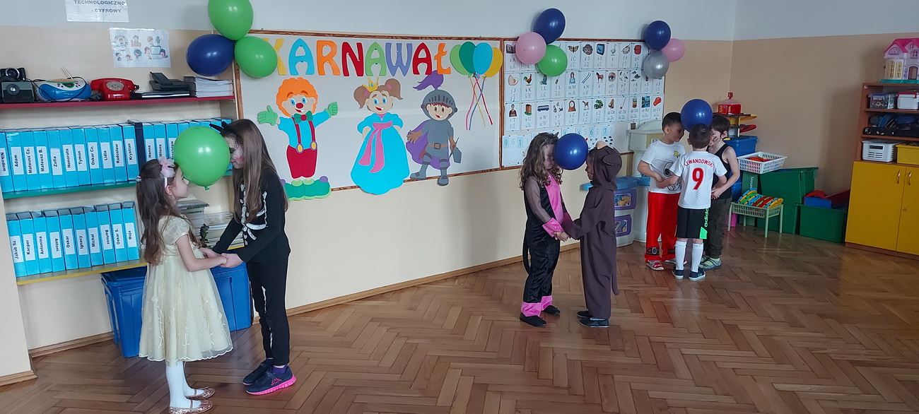Karnawał to miła tradycja przepełniona muzyką i zabawą, ważnym elementem tego okresu są bale. Bal karnawałowy dla przedszkolaków to dzień niezwykły, często wyczekiwany przez wiele tygodni. Ta impreza jest atrakcją bardzo lubianą przez dzieci, dostarczającą im wielu przeżyć i radości. Nasze przedszkolaki dołączyły do karnawałowego szaleństwa, uczestnicząc w przygotowaniu dekoracji, wykonując maski karnawałowe oraz ucząc się kroków tańców tradycyjnych, jak i nowoczesnych.