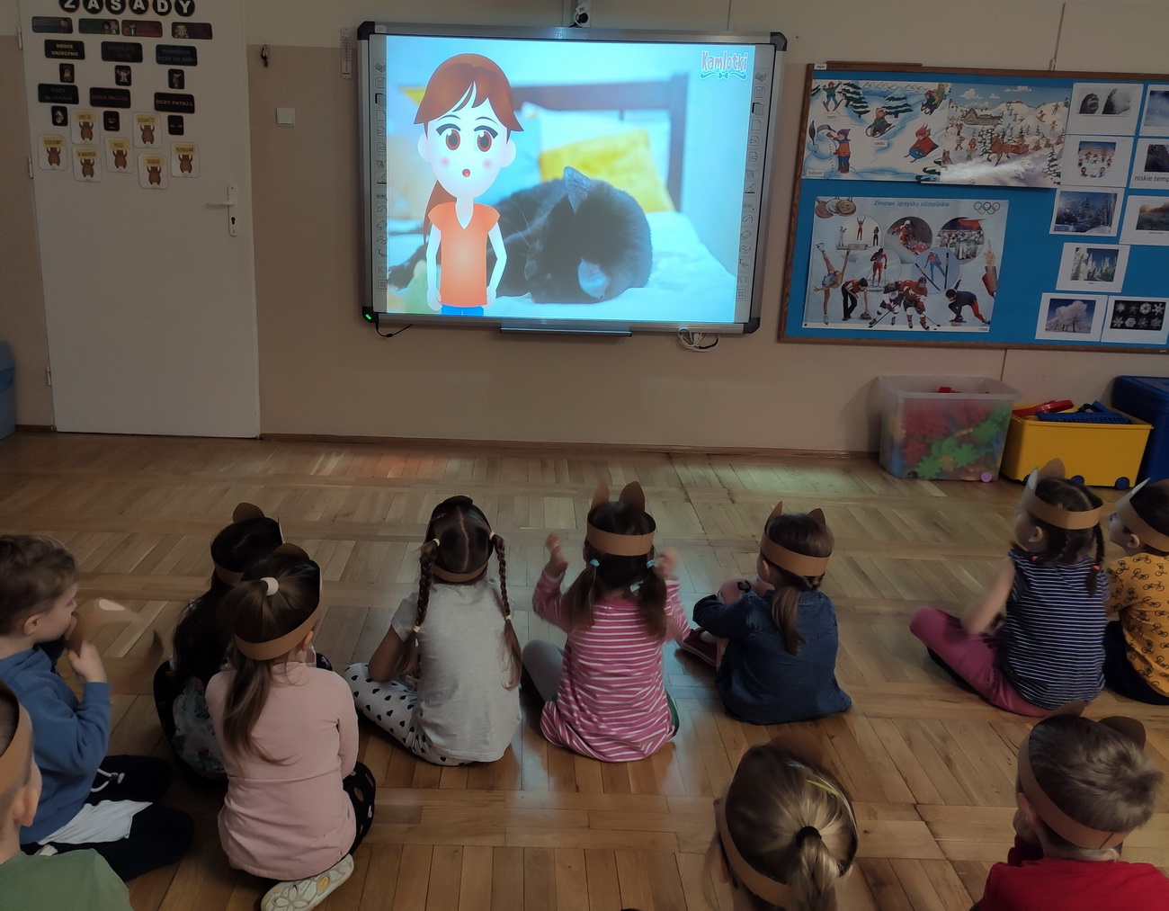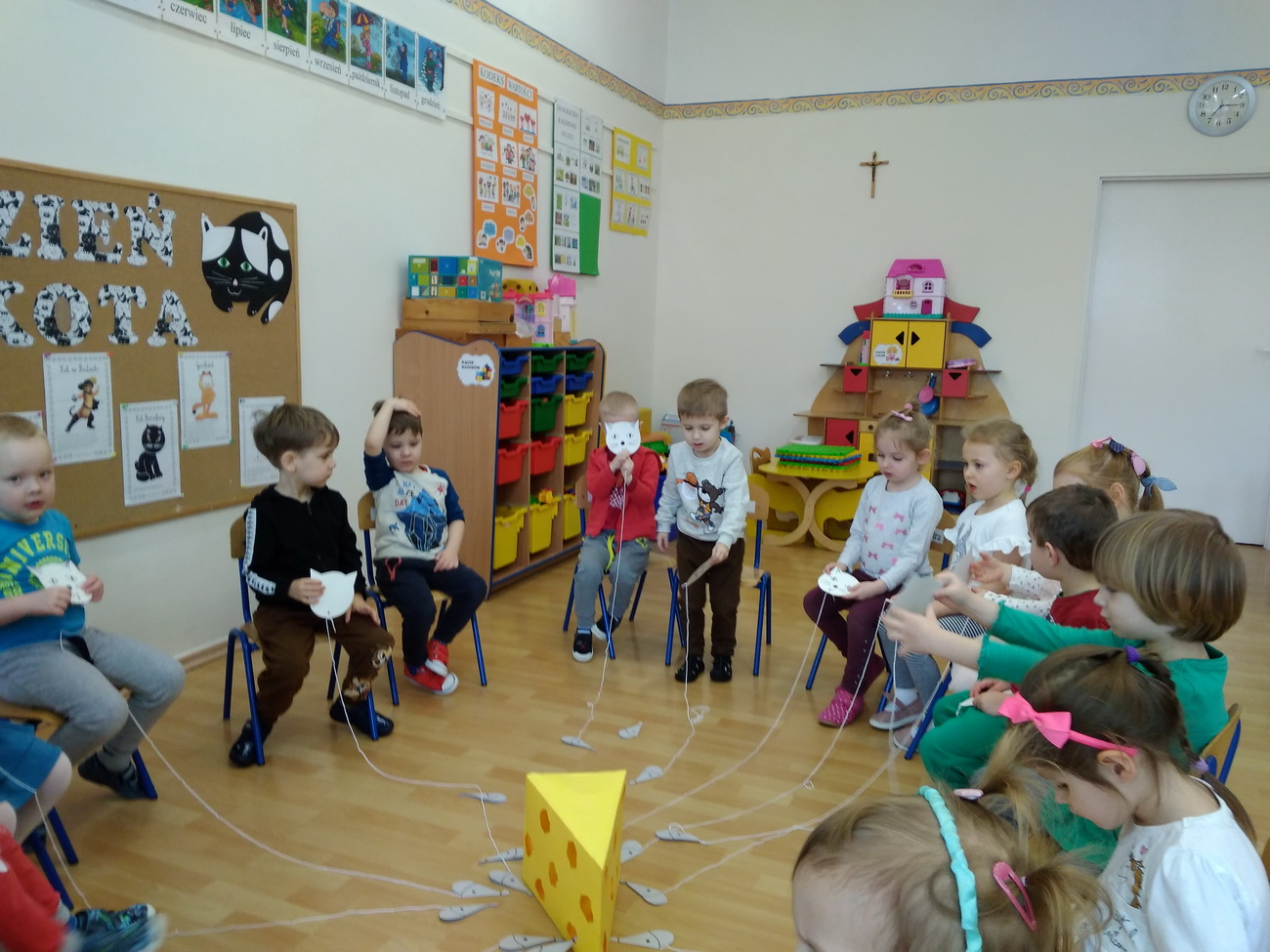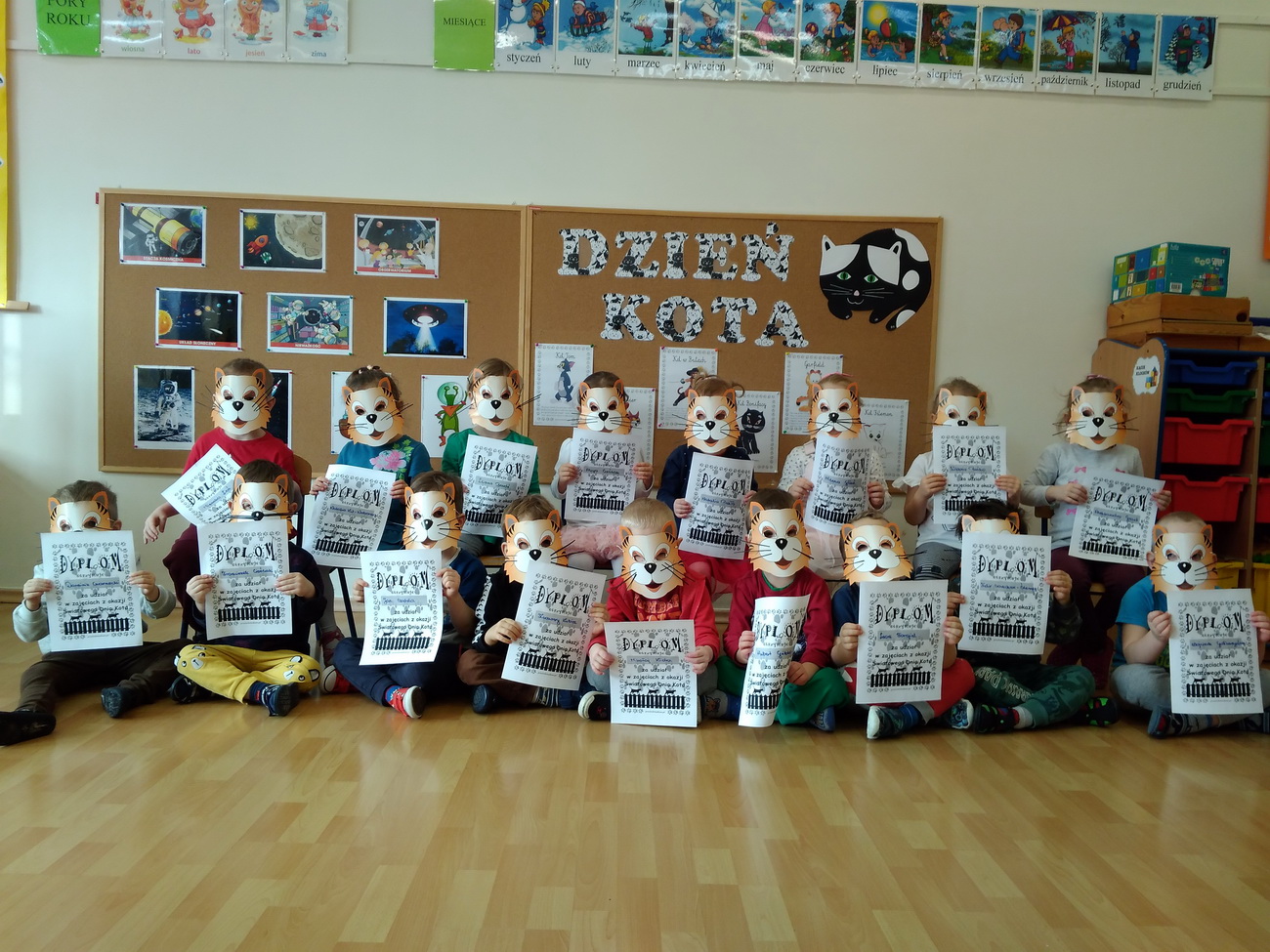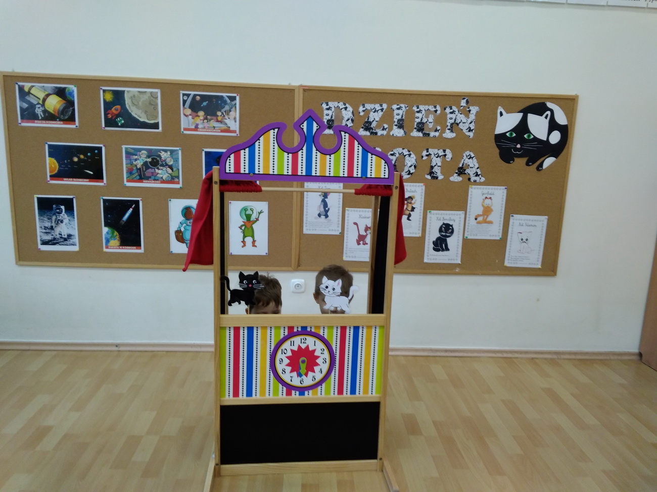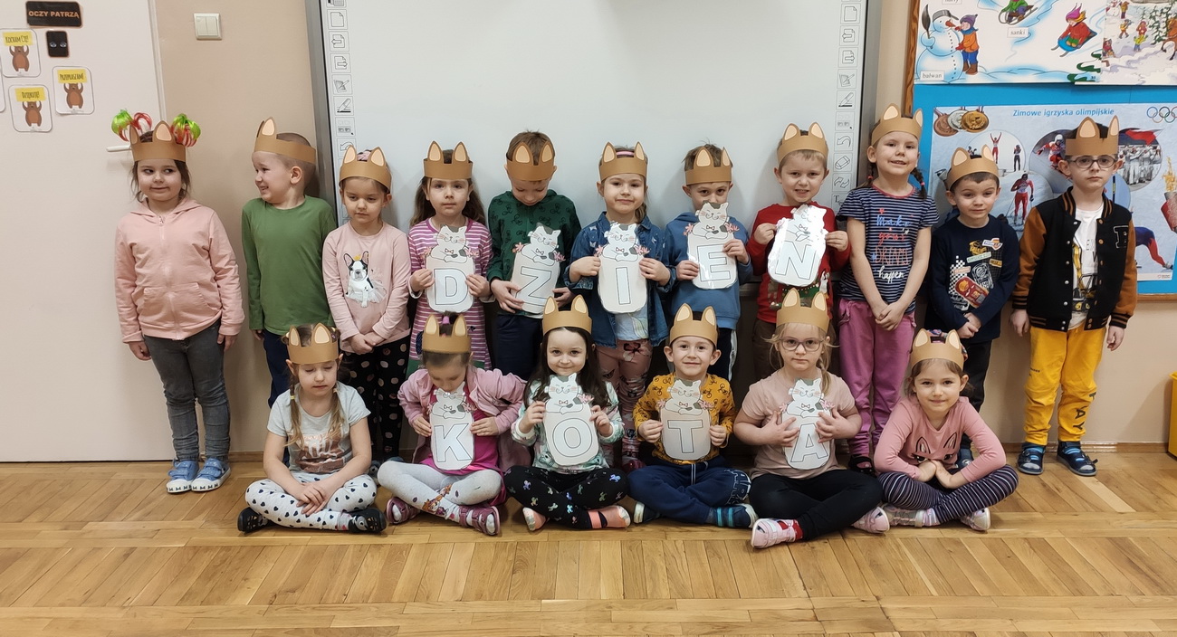 W lutym w naszym przedszkolu obchodziliśmy niezwykłe święto – Dzień Kota. Tego dnia przedszkolaki z grup Biedronki, Tygryski i Smerfy zamieniły się w wesołe koty, których nie sposób było nie zauważyć: piękne, długie wąsy, opaski z uszami, a nawet maski zdobiły dzieci. Były też wesołe „kocie zabawy”, takie jak: koci spacerek, zabawy ruchowe przy piosenkach o kotach, „kocie masażyki”, rozwiązywanie zagadek o kotach. Przedszkolaki z grupy Biedronki obejrzały przedstawienie na podstawie utworu H. Behlerowej “O kotku, który szukał czarnego mleka”, a Tygryski i Smerfy prezentację multimedialną, dzięki której poznały wiele ciekawostek dotyczących kotów. Dzień ten był również okazją do podkreślenia roli kotów w życiu człowieka – Biedronki, Tygryski i Smerfy dobrze przecież wiedzą, że o koty trzeba dbać, zresztą tak jak o inne zwierzęta.