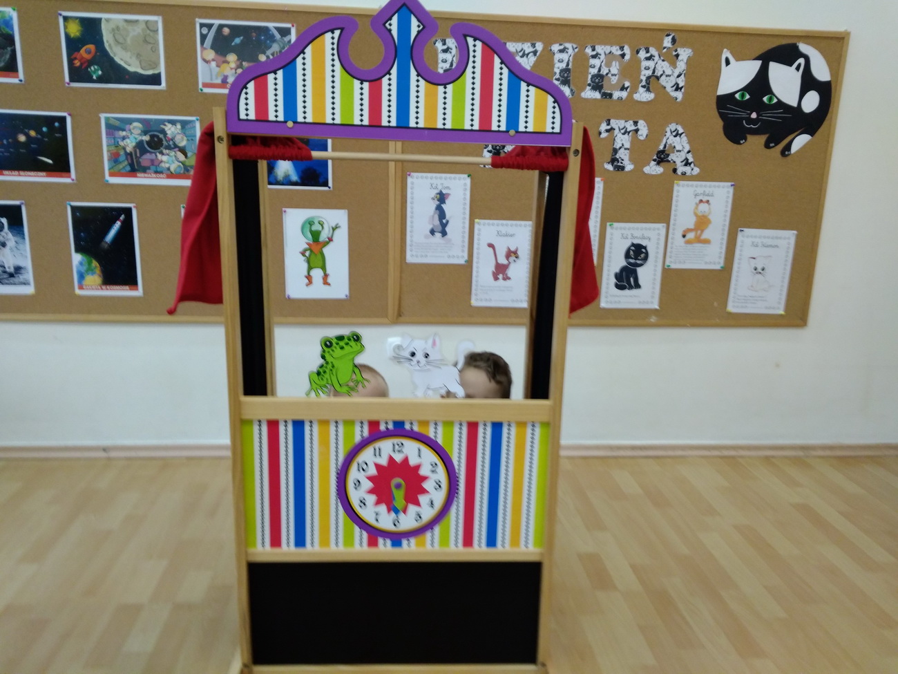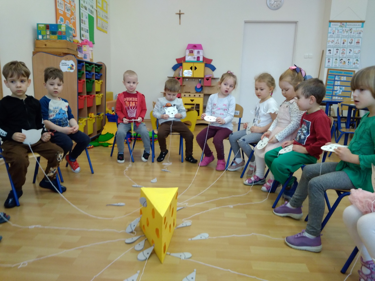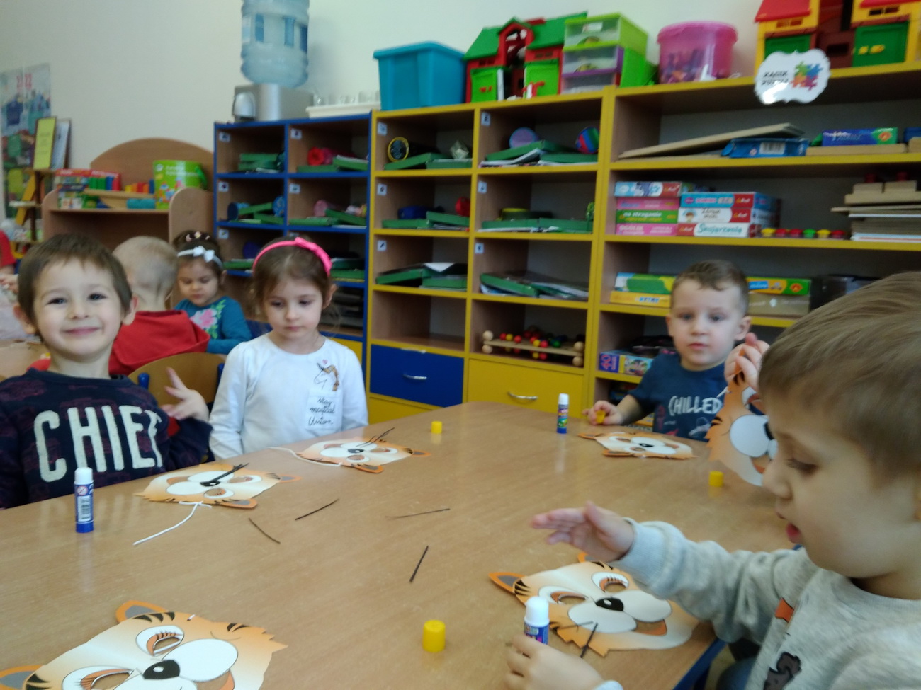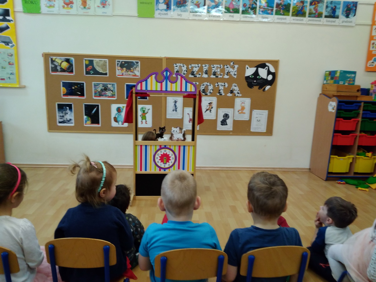 W lutym w naszym przedszkolu obchodziliśmy niezwykłe święto – Dzień Kota. Tego dnia przedszkolaki z grup Biedronki, Tygryski i Smerfy zamieniły się w wesołe koty, których nie sposób było nie zauważyć: piękne, długie wąsy, opaski z uszami, a nawet maski zdobiły dzieci. Były też wesołe „kocie zabawy”, takie jak: koci spacerek, zabawy ruchowe przy piosenkach o kotach, „kocie masażyki”, rozwiązywanie zagadek o kotach. Przedszkolaki z grupy Biedronki obejrzały przedstawienie na podstawie utworu H. Behlerowej “O kotku, który szukał czarnego mleka”, a Tygryski i Smerfy prezentację multimedialną, dzięki której poznały wiele ciekawostek dotyczących kotów. Dzień ten był również okazją do podkreślenia roli kotów w życiu człowieka – Biedronki, Tygryski i Smerfy dobrze przecież wiedzą, że o koty trzeba dbać, zresztą tak jak o inne zwierzęta.